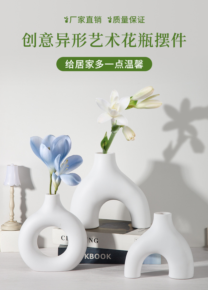 厂家批发创意花瓶仿陶瓷塑料花瓶喜庆摆件家居装饰小花瓶两半组合