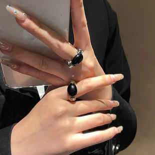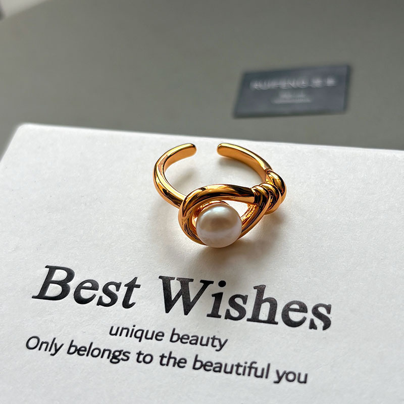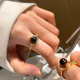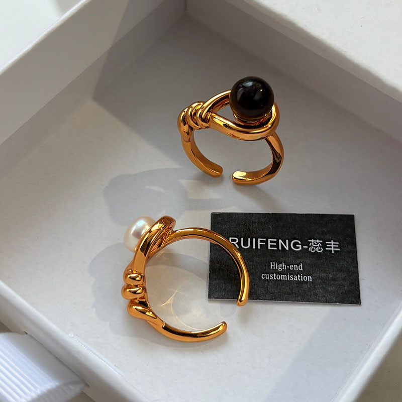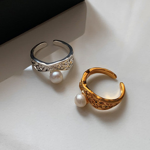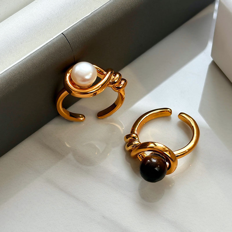 法式复古美拉德天然虎眼石指环女天然淡水珍珠开口戒时尚轻奢手饰