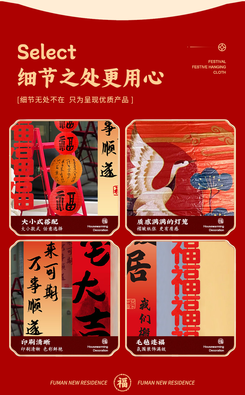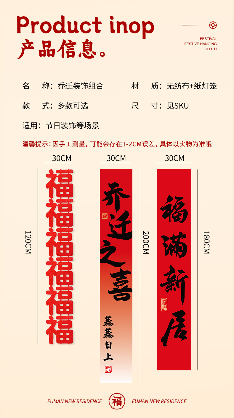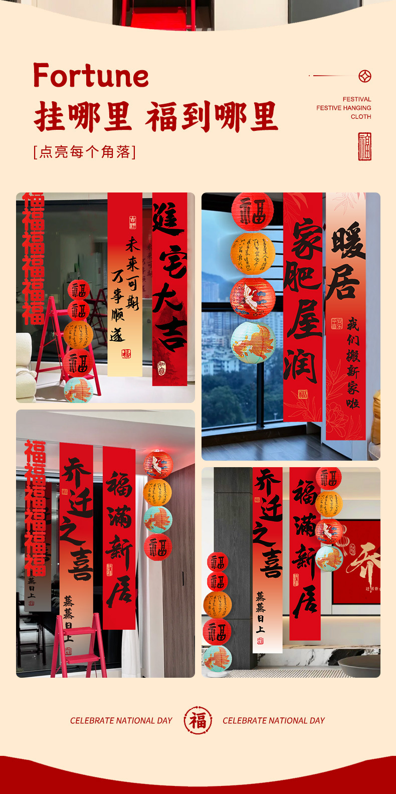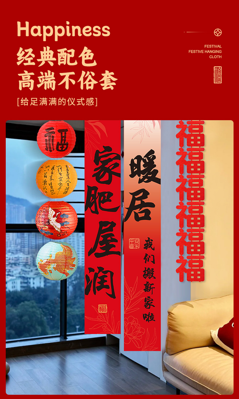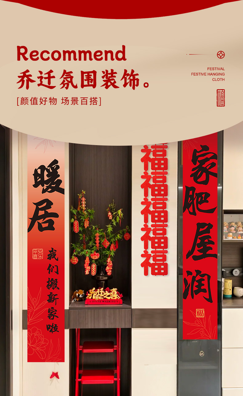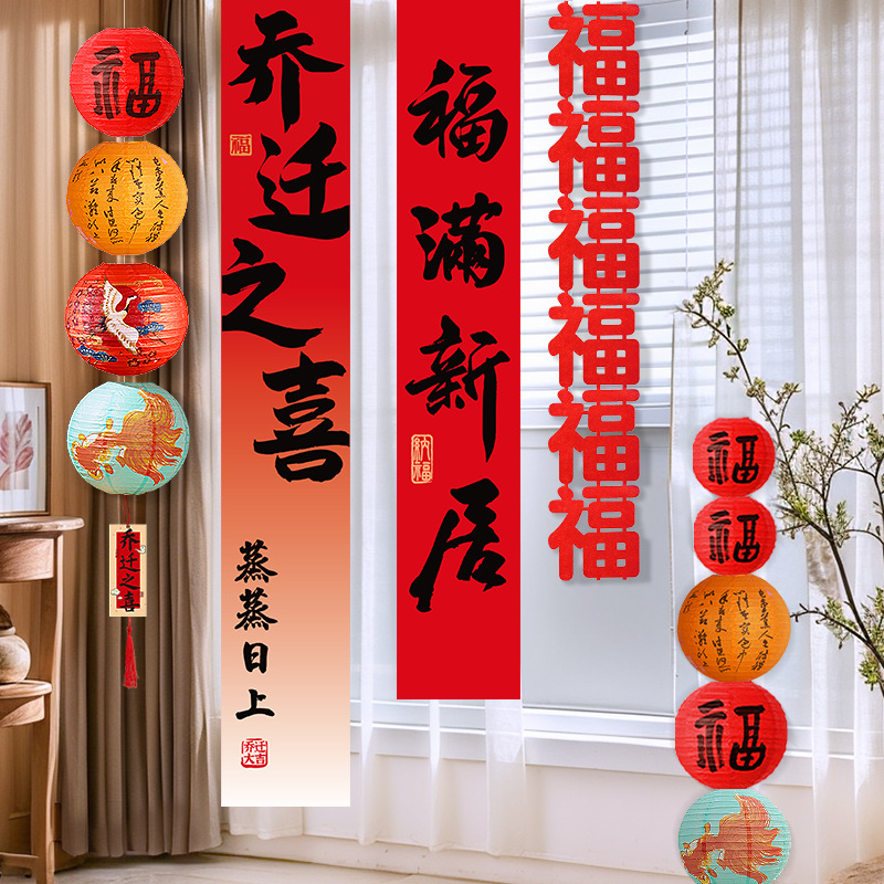 乔迁之喜装饰条幅挂布灯笼新居氛围场景布置客厅新房入宅仪式用品