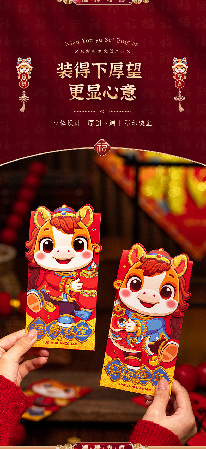 新年红包袋马年封面利是封创意书法压岁钱包2026新款春节过年通用