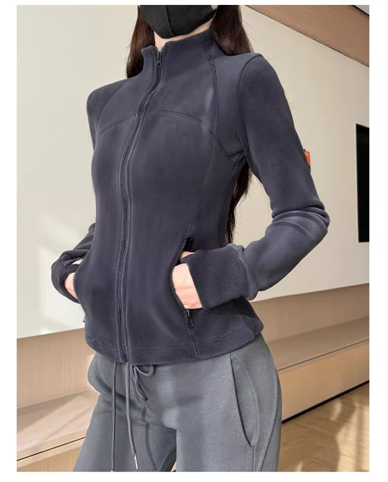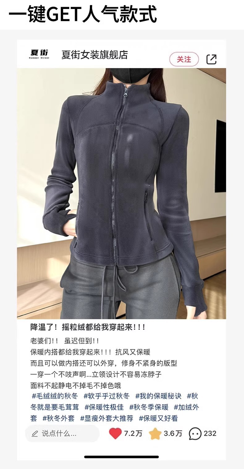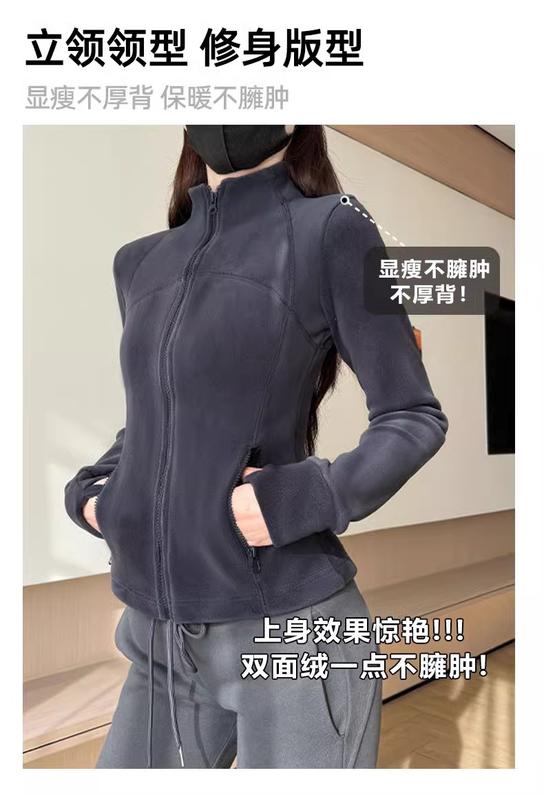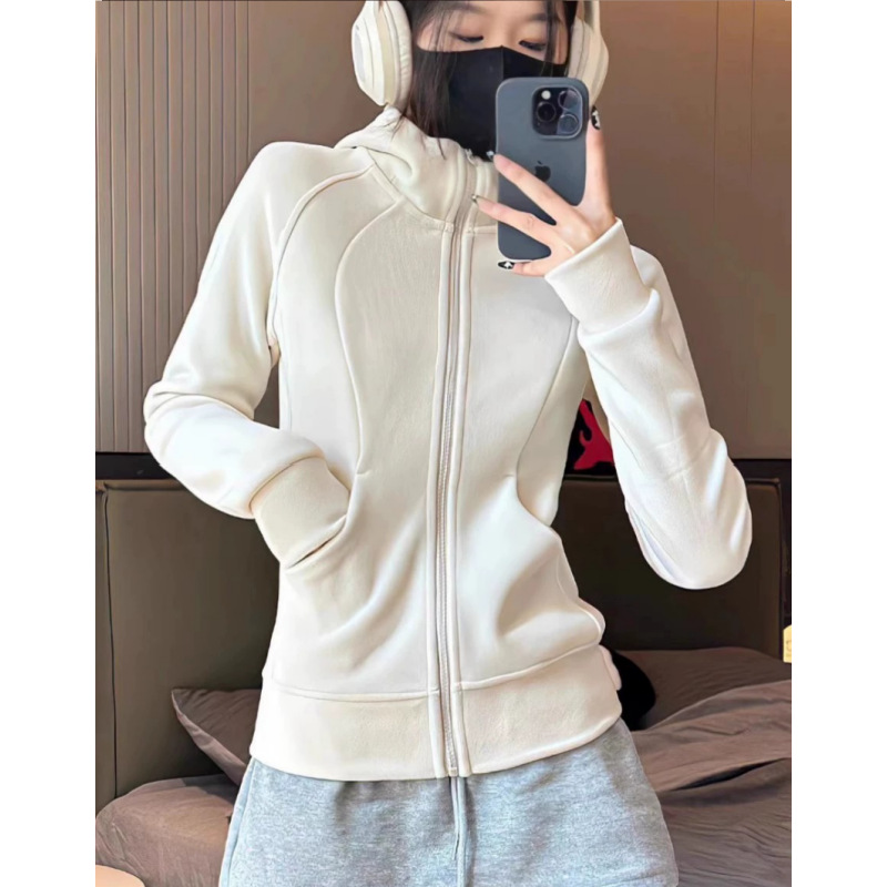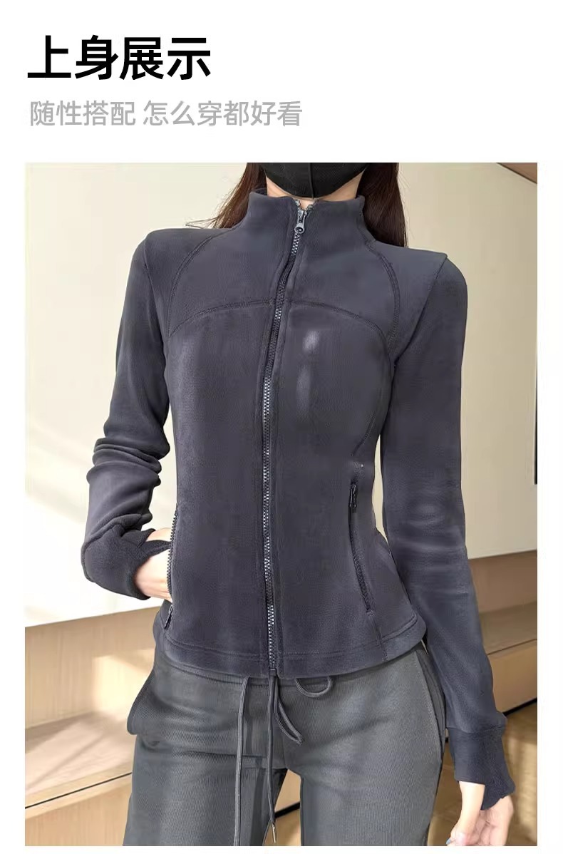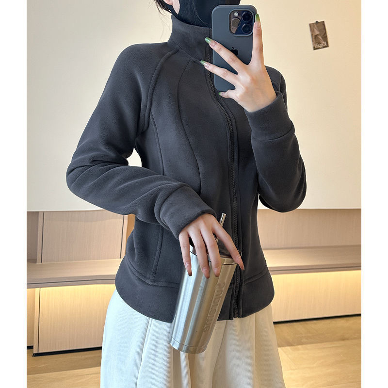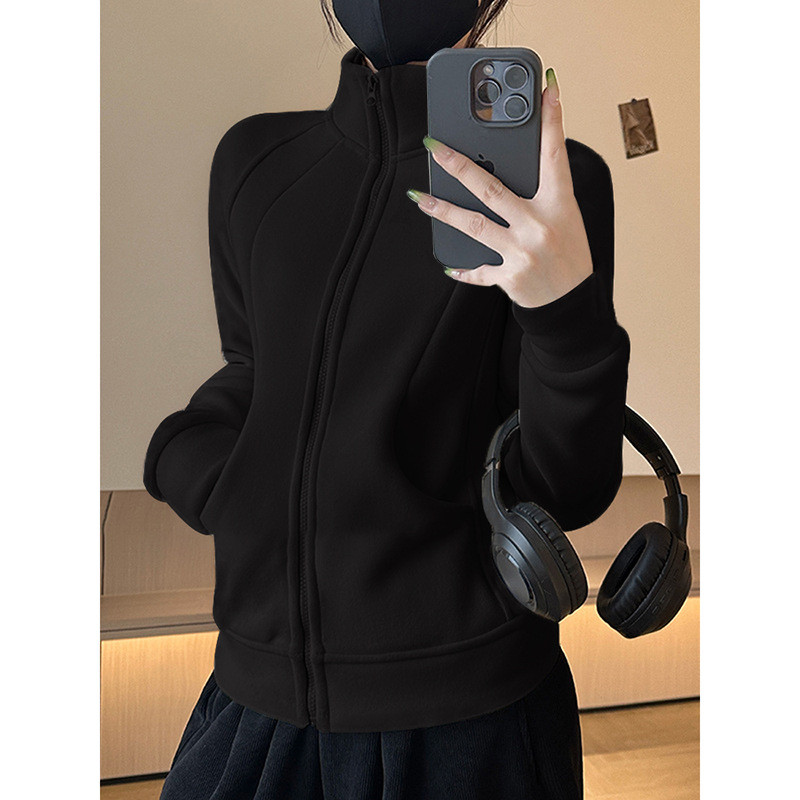 奥粒绒卫衣外套女秋冬加绒加厚立领内搭打底开衫修身抓绒上衣厚