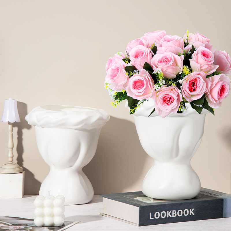 法式奶油风仿陶瓷塑料花瓶轻奢北欧高级个性插花水培装饰摆件批发
