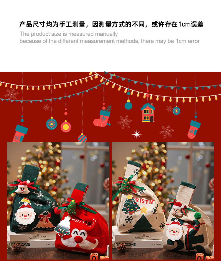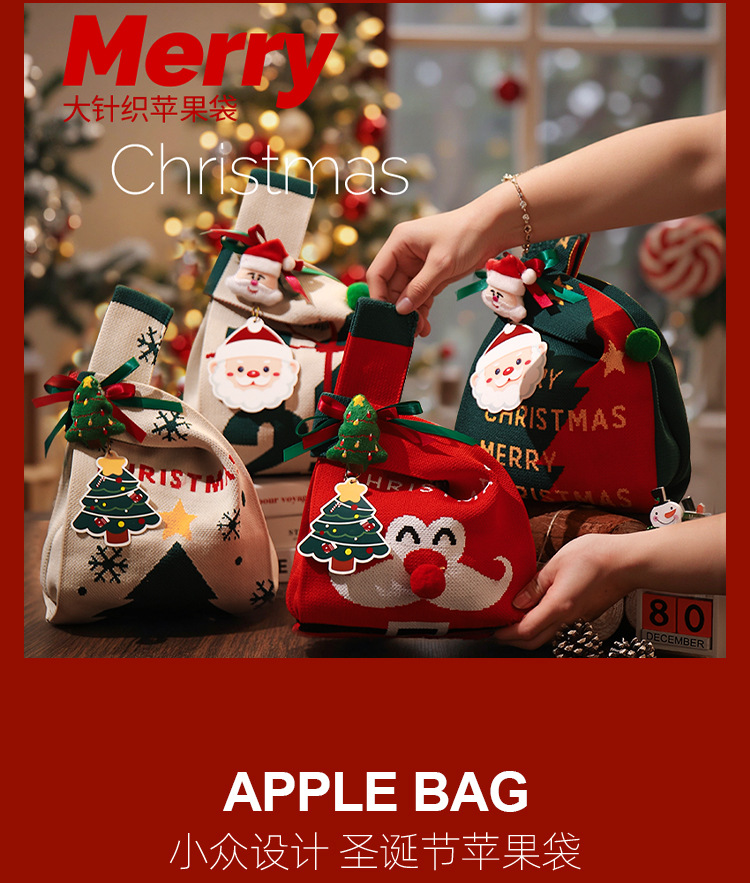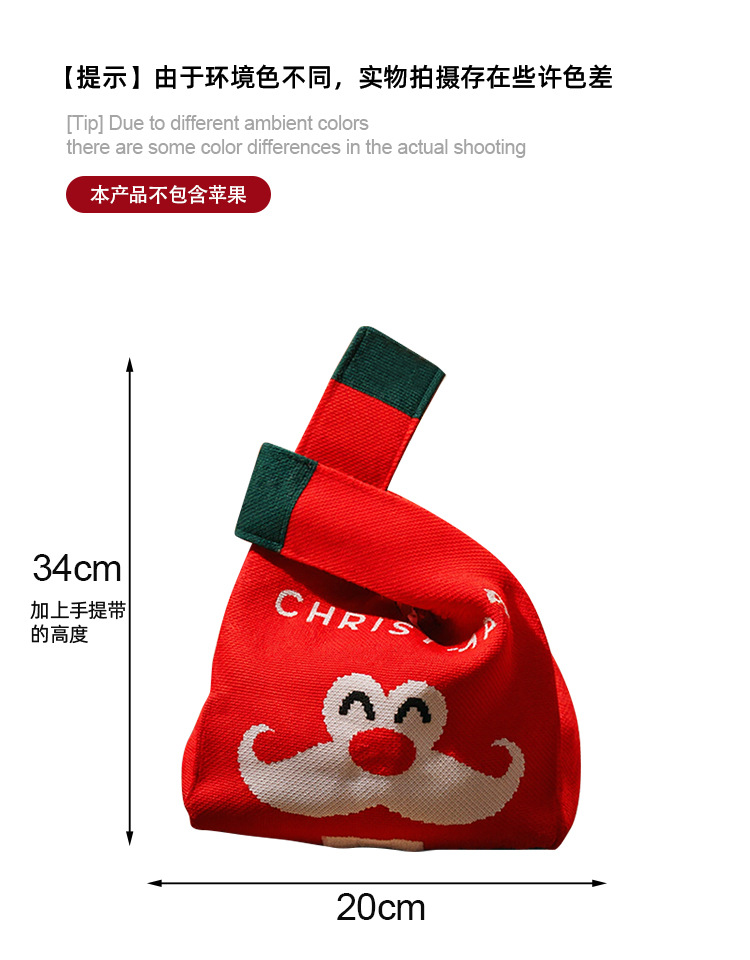 圣诞节装饰礼物儿童手提小礼袋礼品袋平安夜苹果袋糖果布袋幼儿园