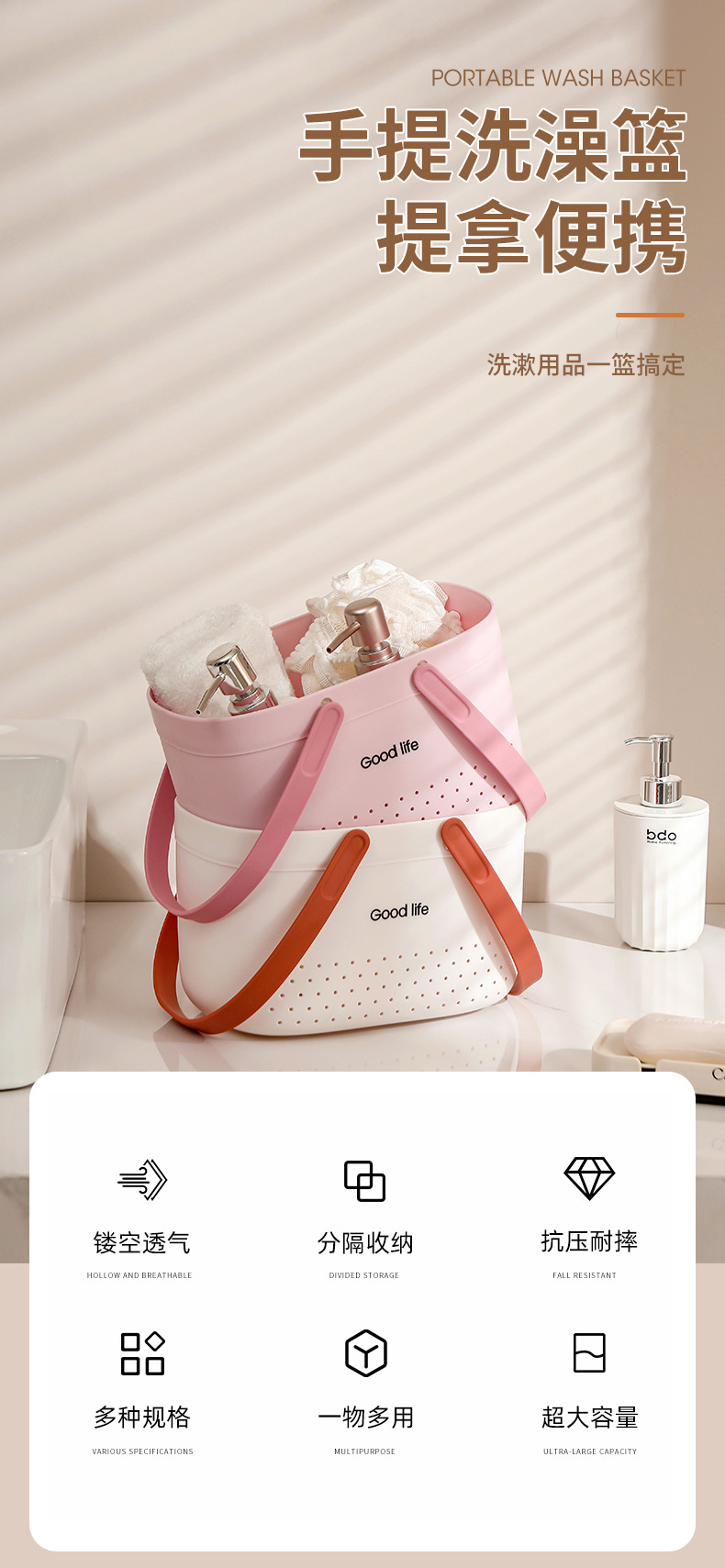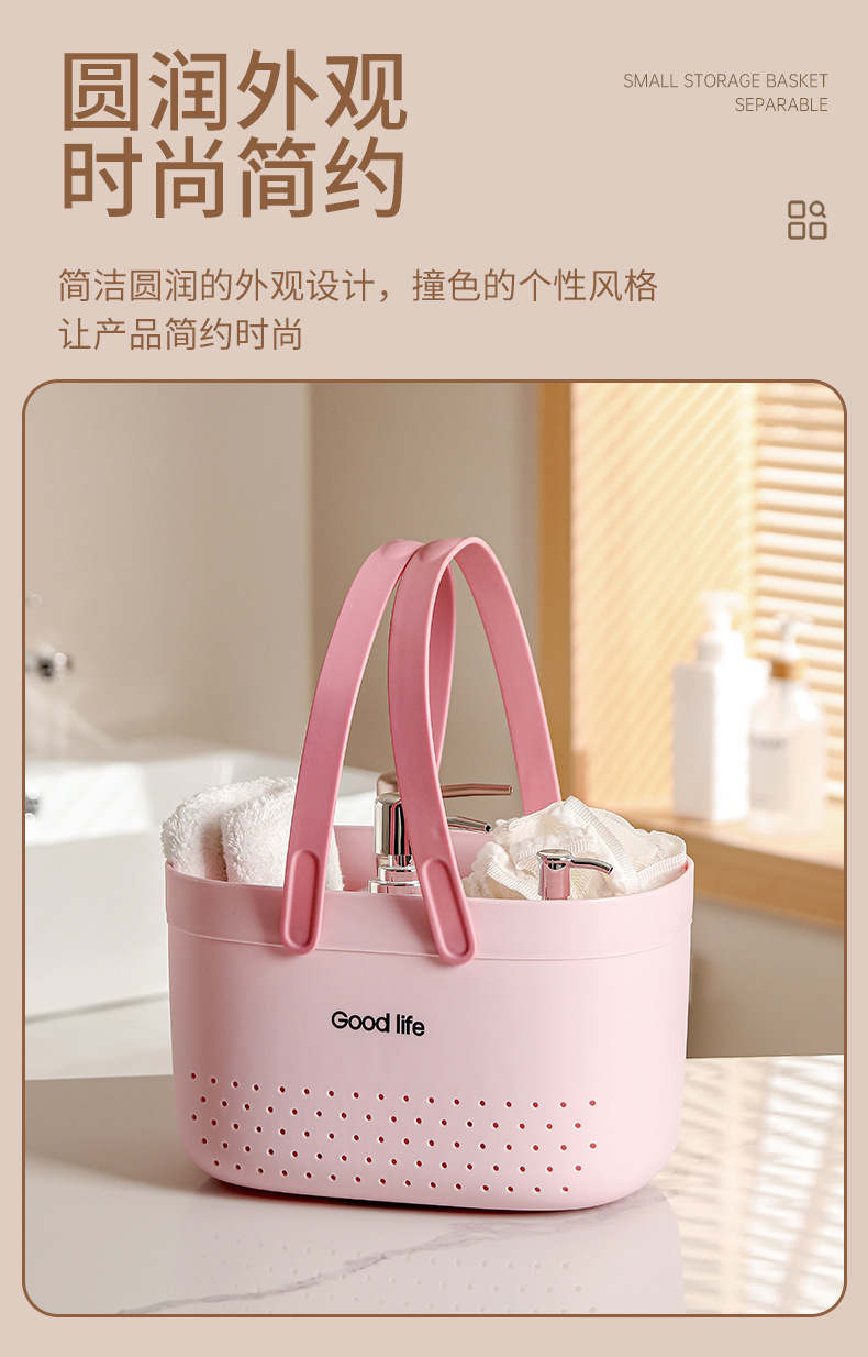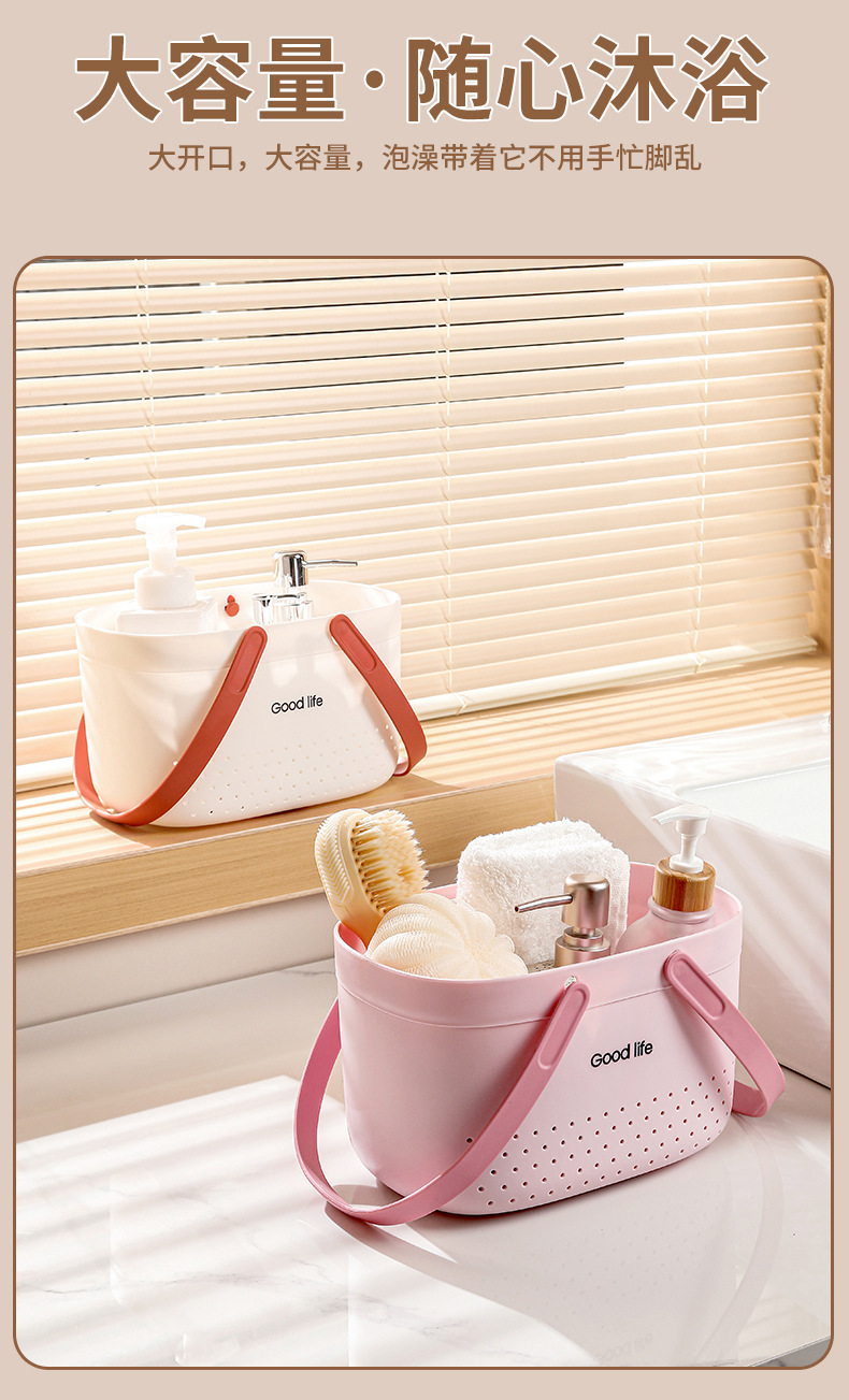 洗澡篮硅胶手提式洗漱筐浴室塑料洗漱收纳筐沥水浴筐洗浴置物篮