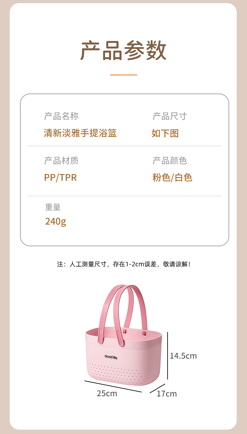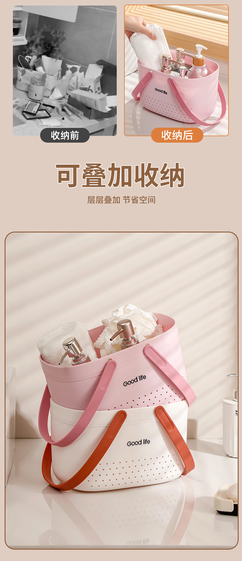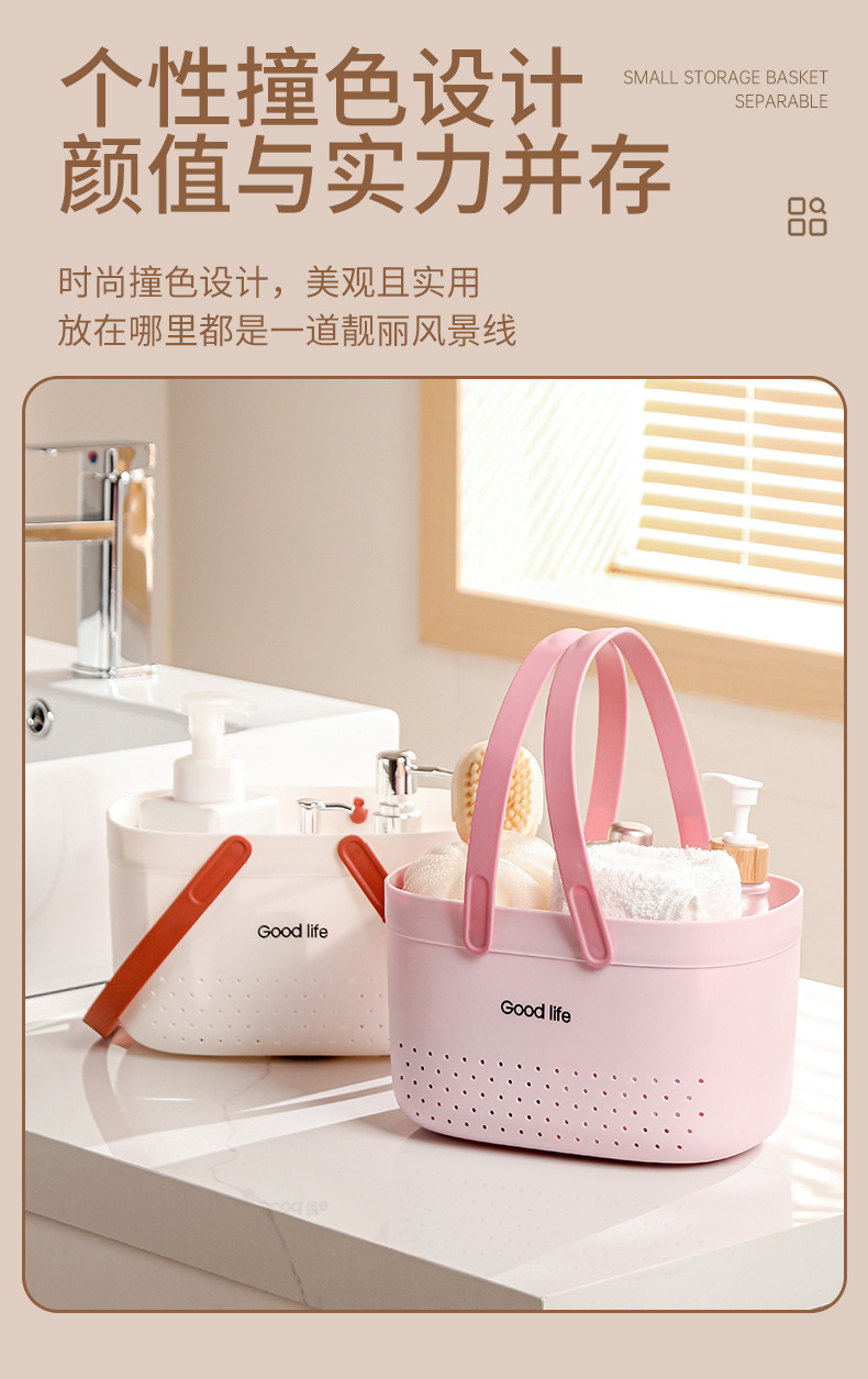 洗澡篮硅胶手提式洗漱筐浴室塑料洗漱收纳筐沥水浴筐洗浴置物篮
