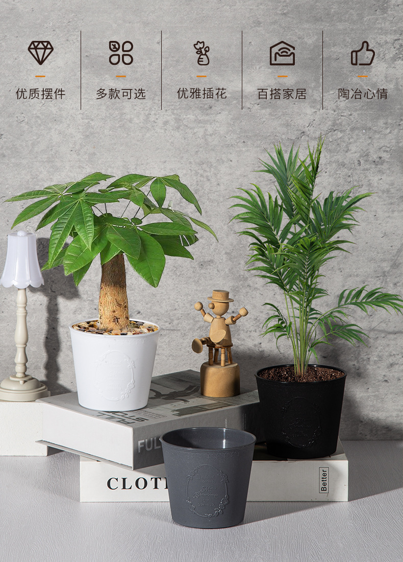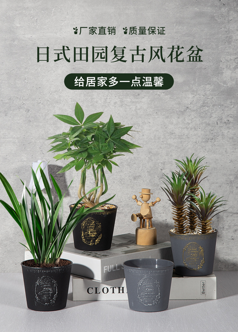 厂家批发创意塑料花盆圆形小尺寸多肉盆仿真花装饰花瓶仿古做旧