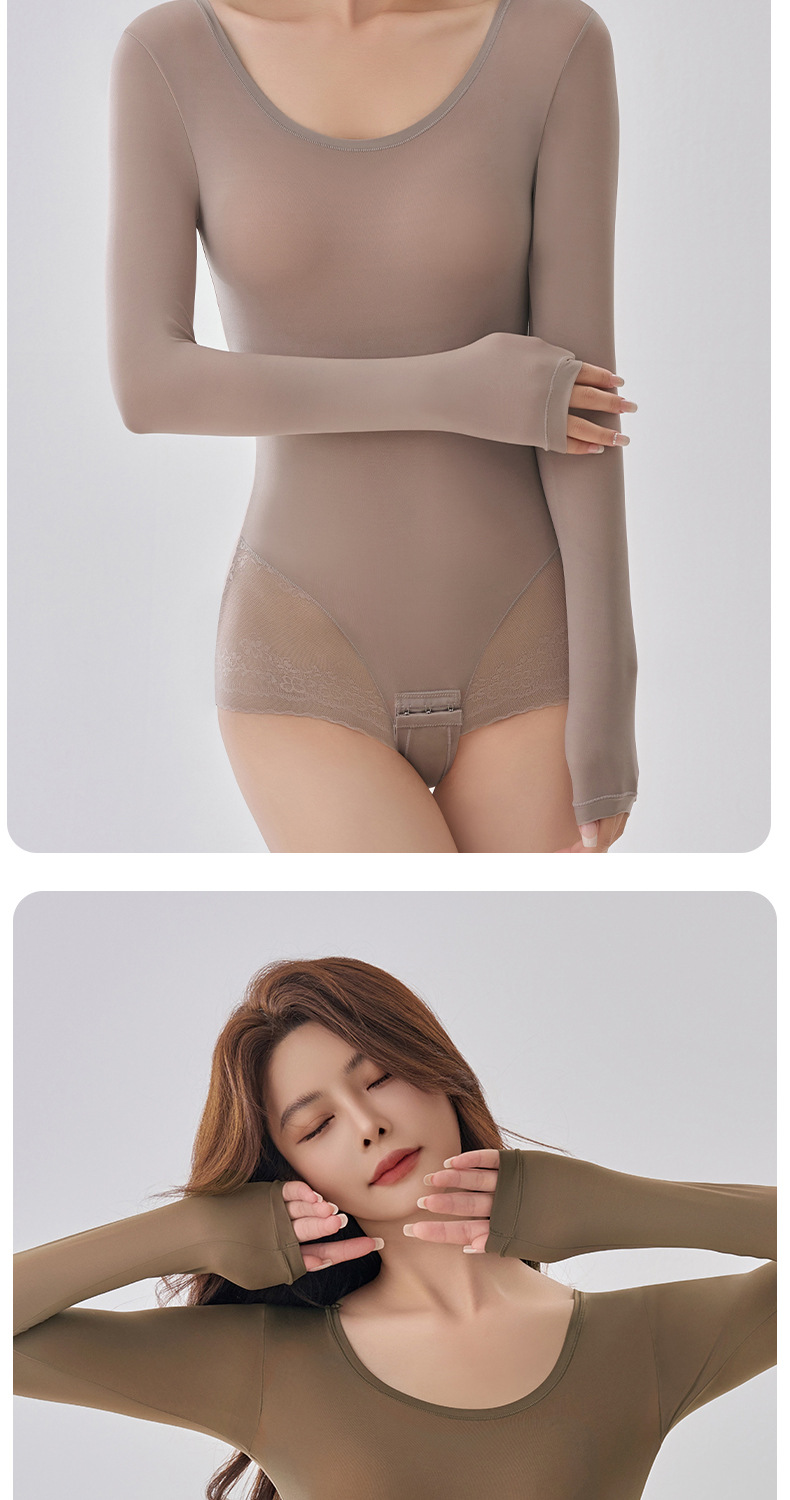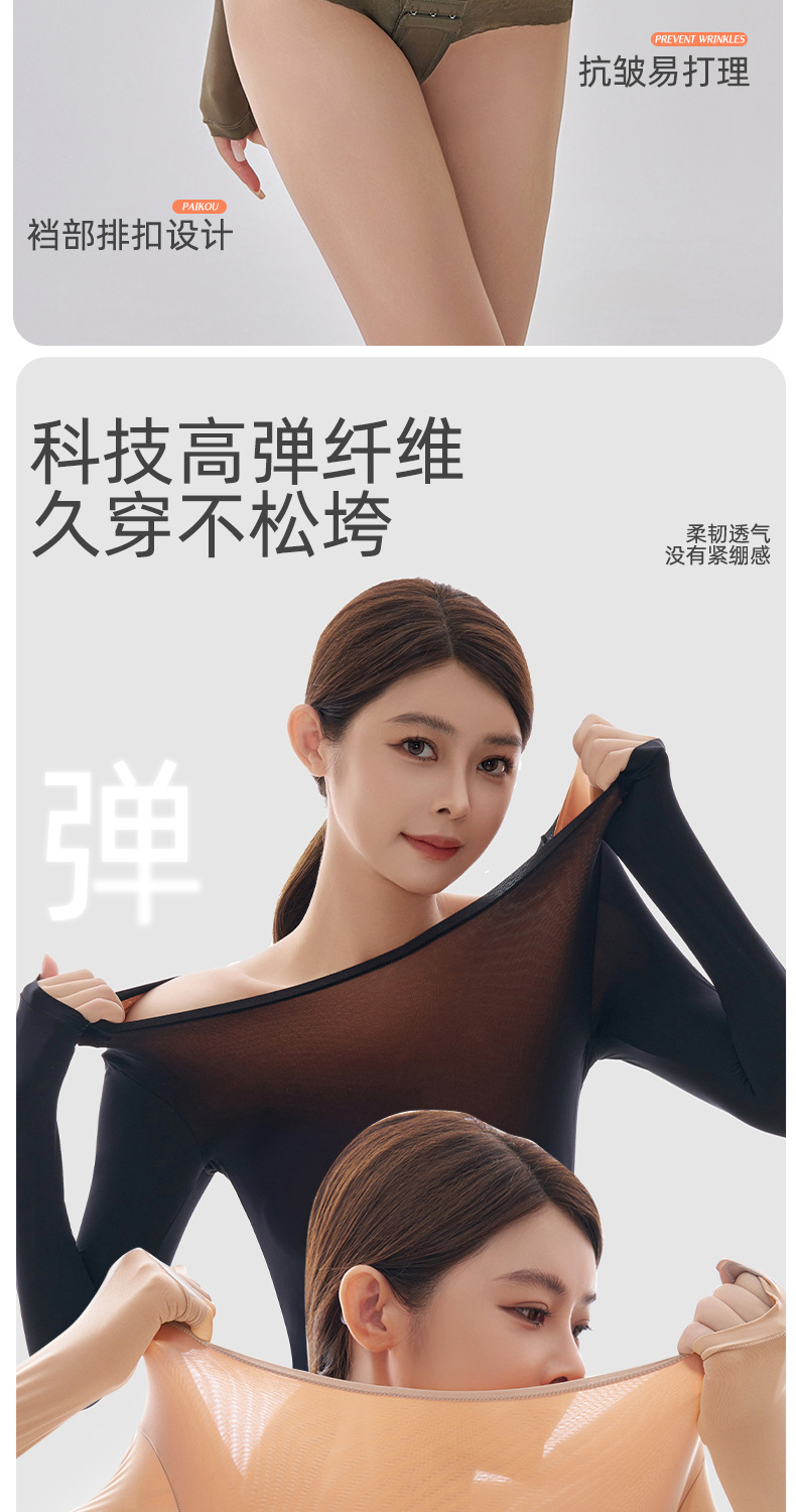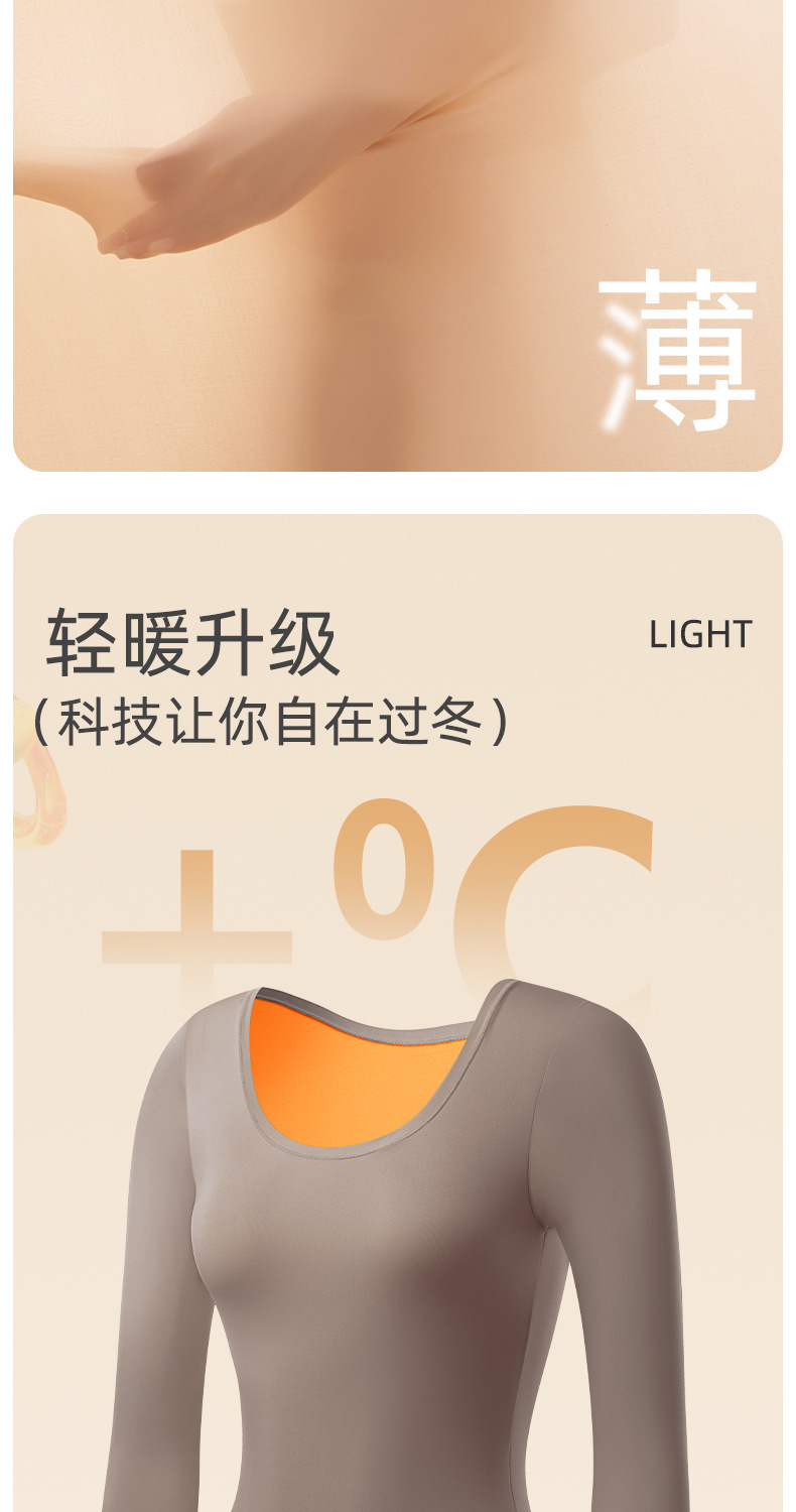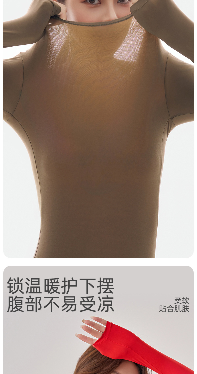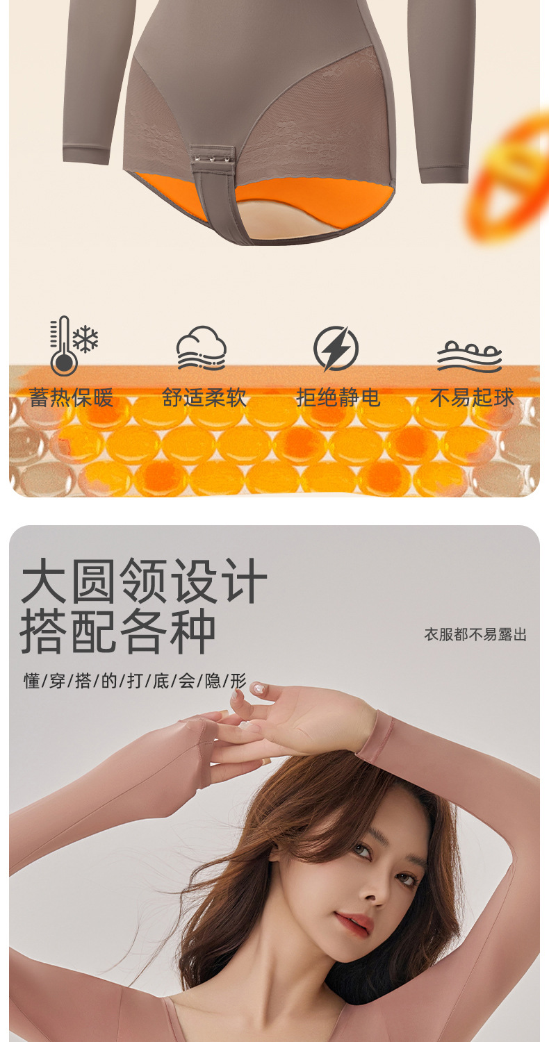 新款姜黄素蕾丝轻暖美肤衣无痕打底修身肌底衣内衣保暖连体上衣女
