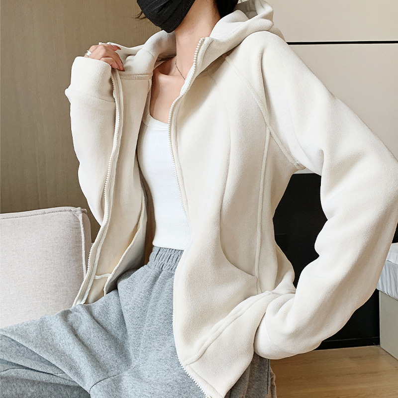 H268连帽拉链运动开衫外套女秋冬季新款加绒加厚休闲外穿长袖卫衣