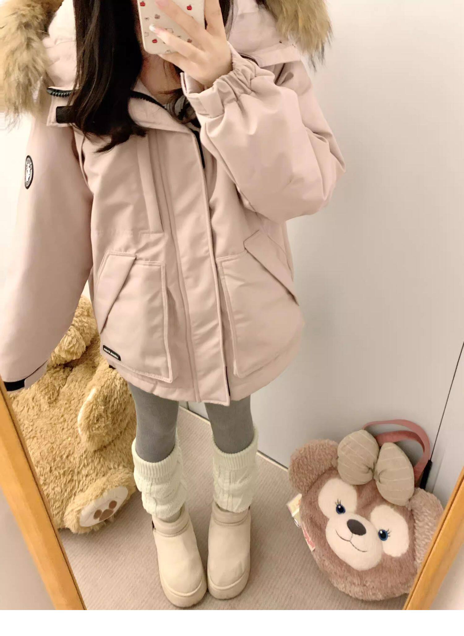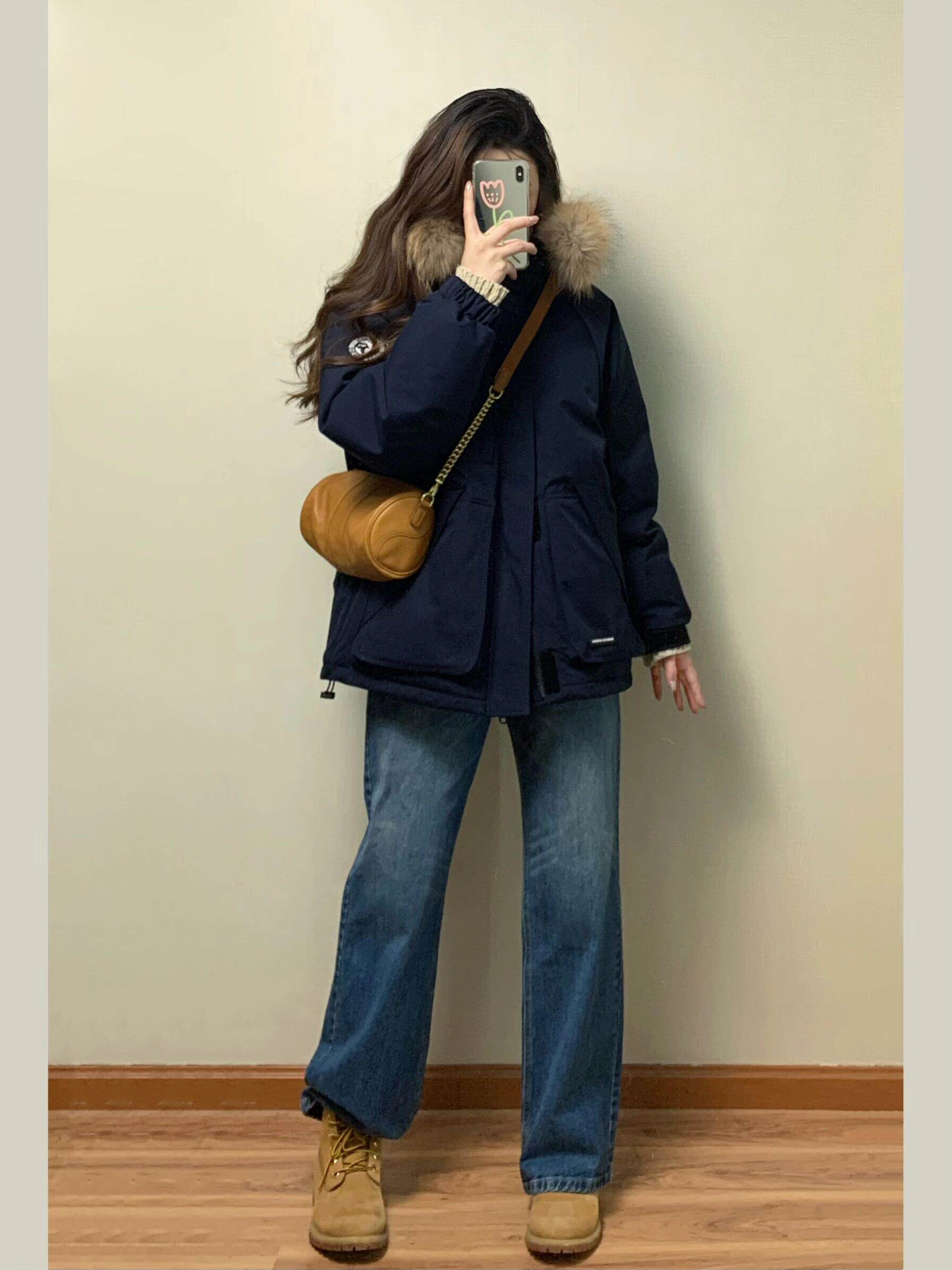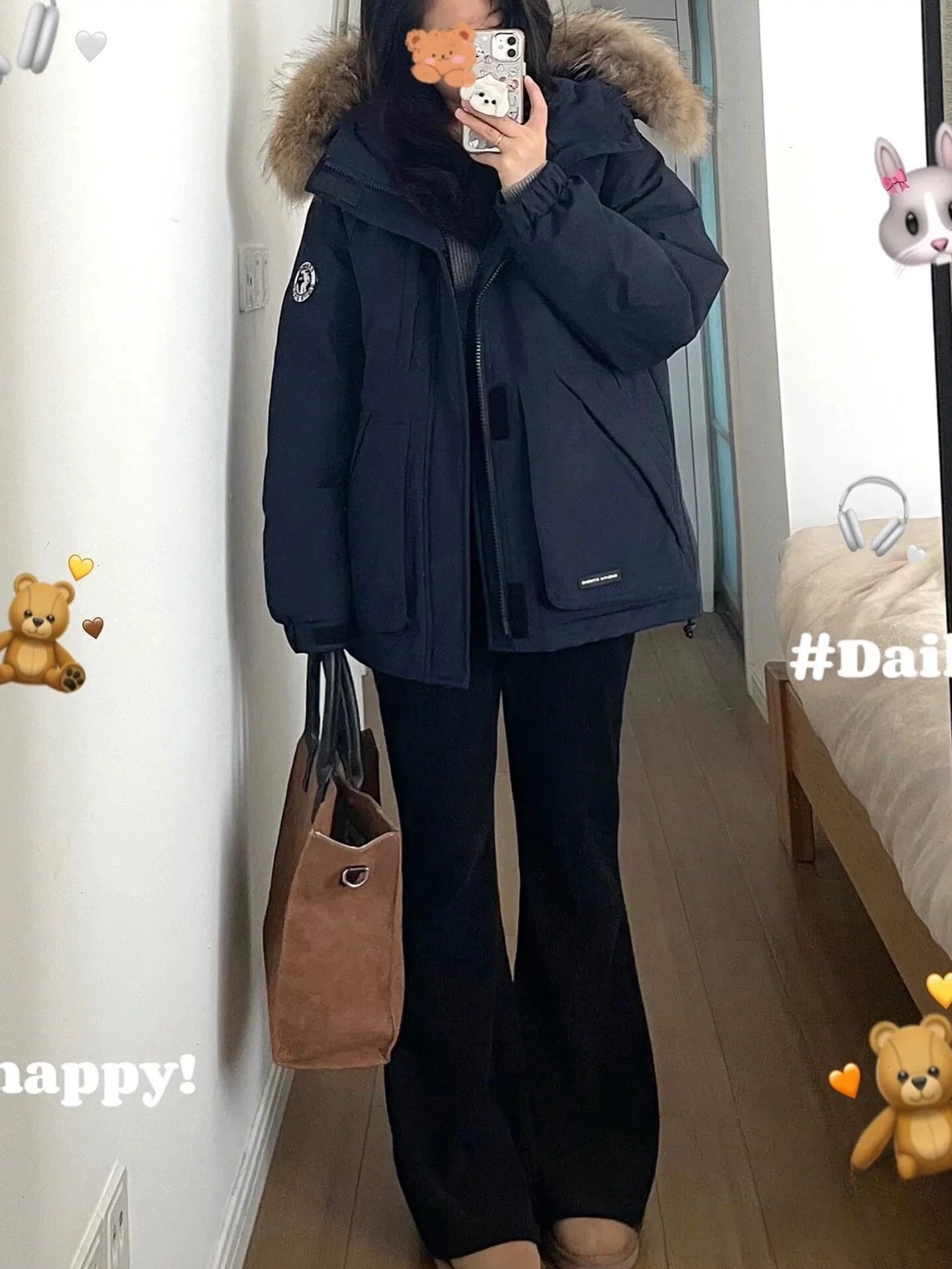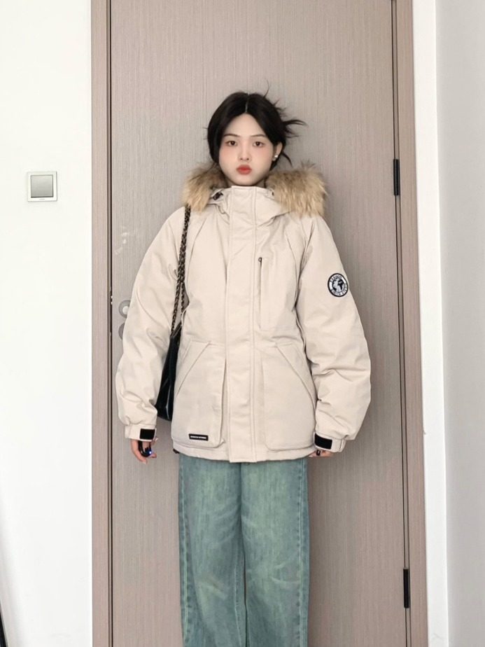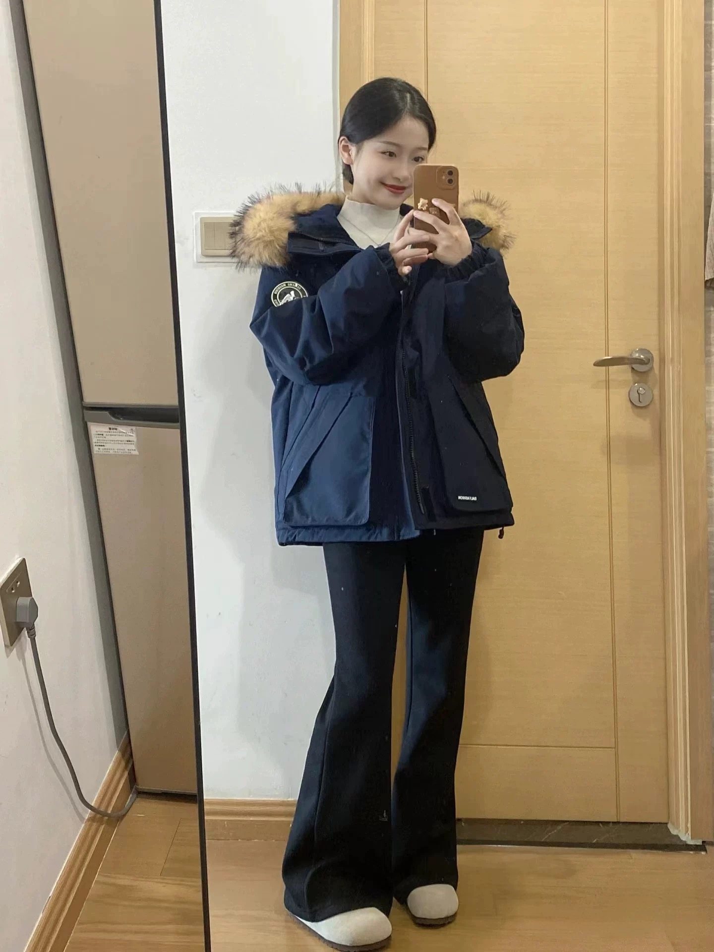 短款工装羽绒服女2025新款冬季小个子大毛领情侣加厚派客服外套爆