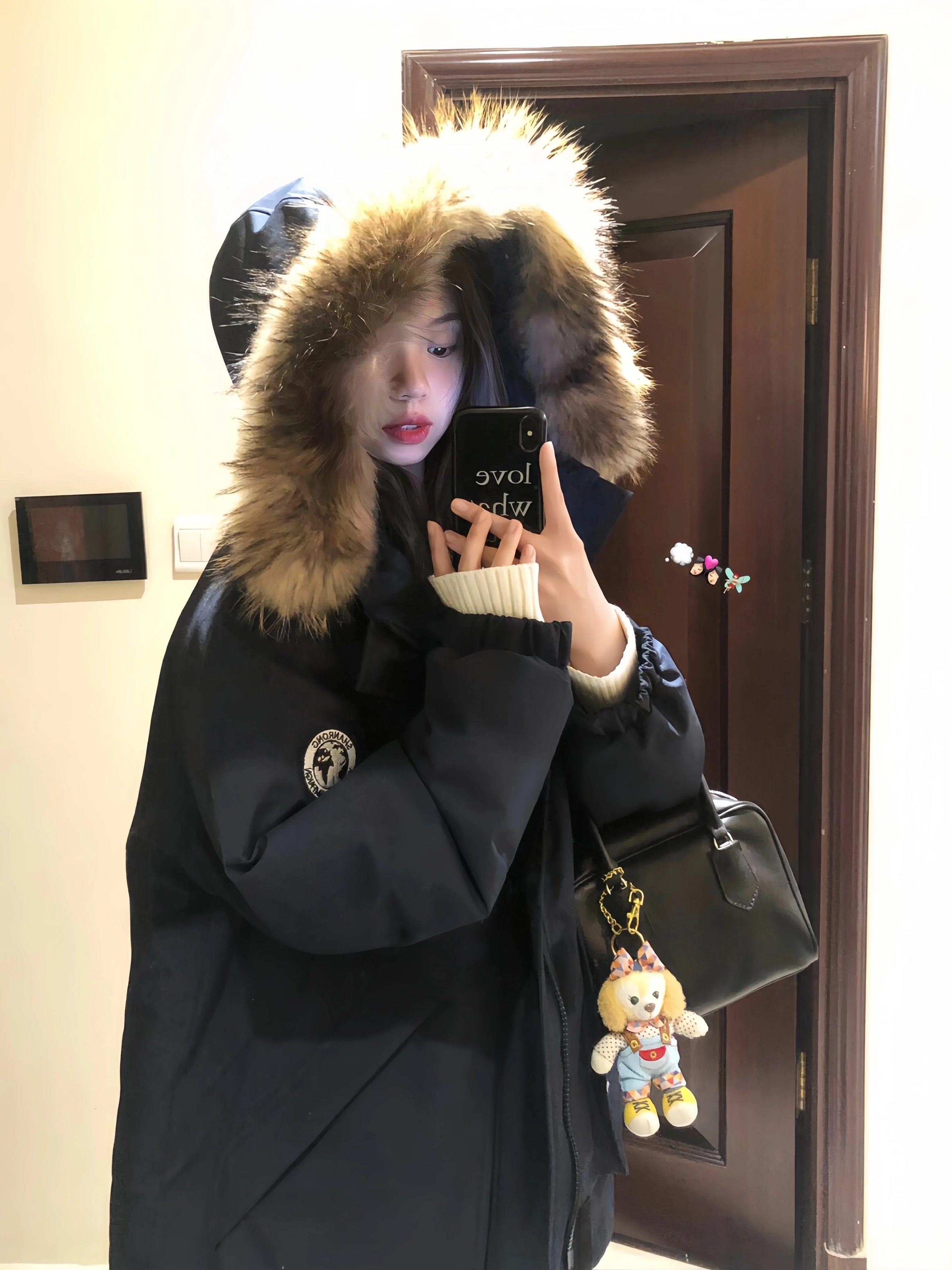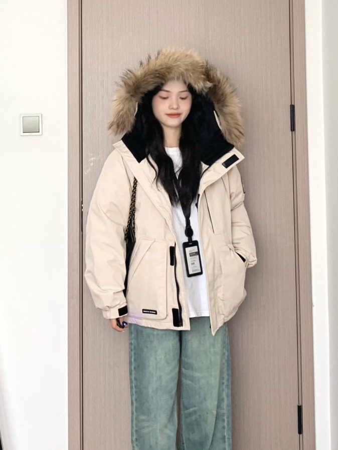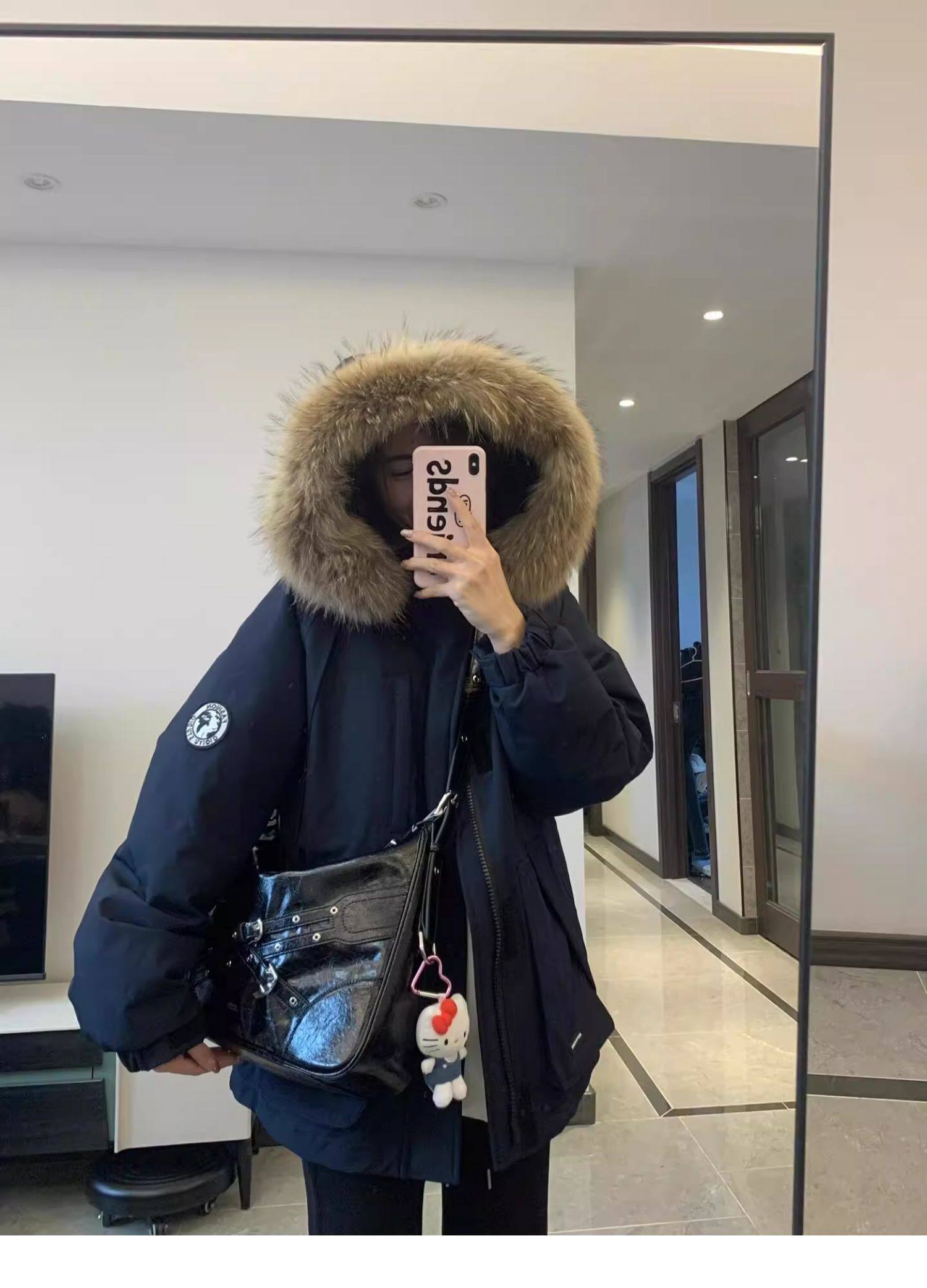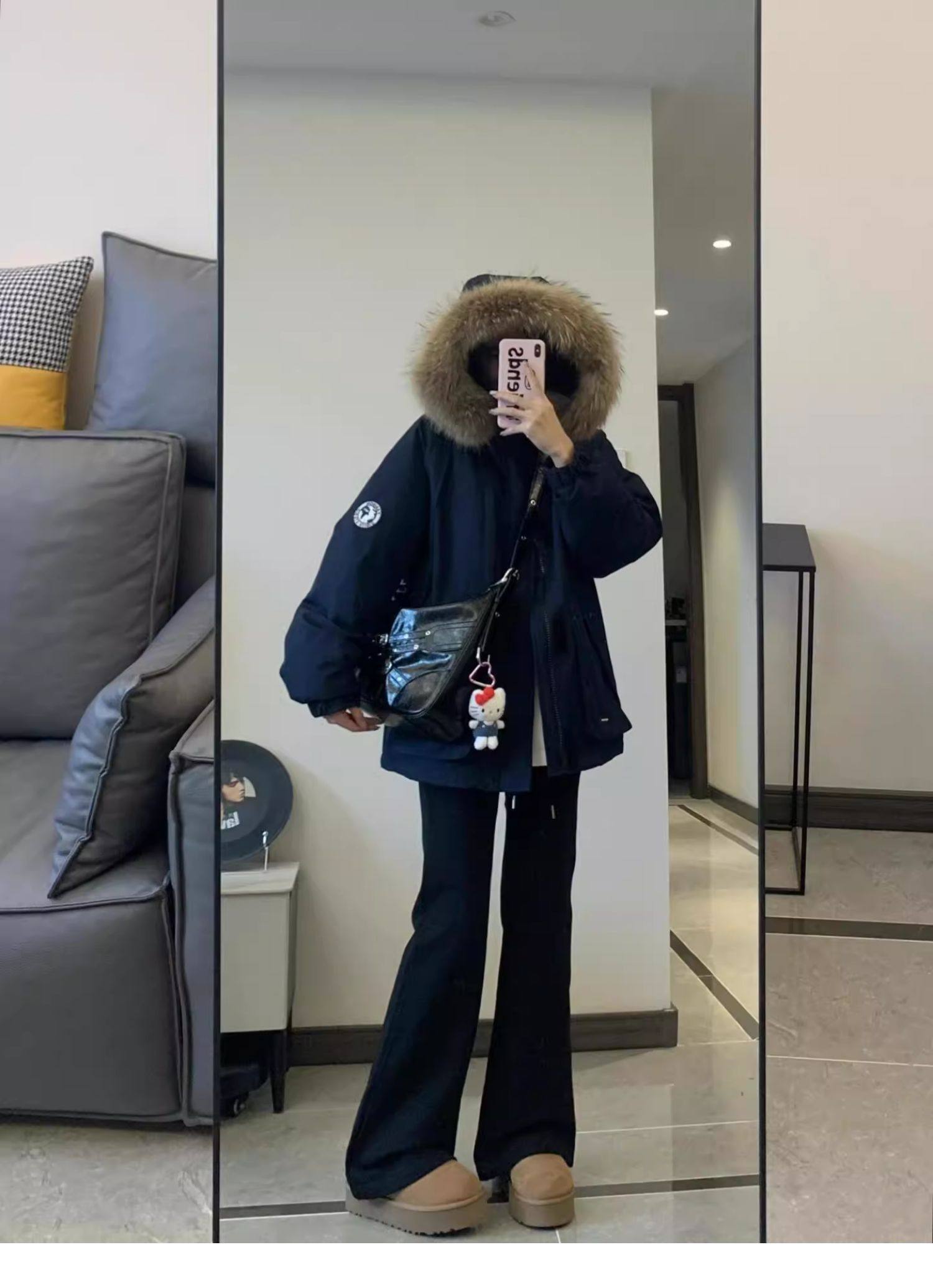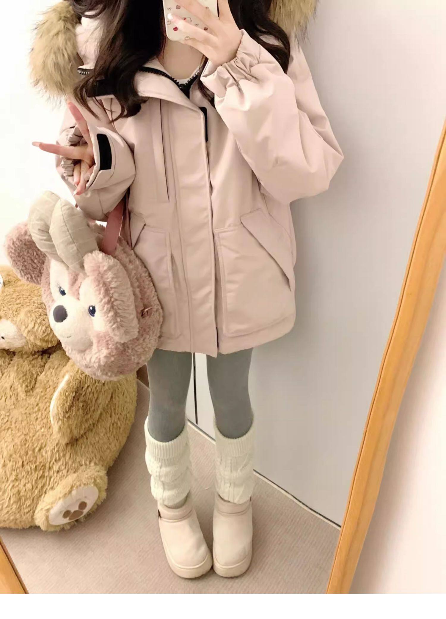 短款工装羽绒服女2025新款冬季小个子大毛领情侣加厚派客服外套爆