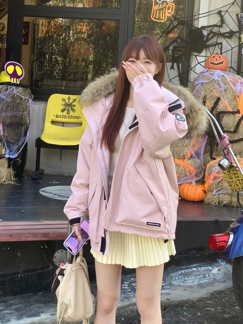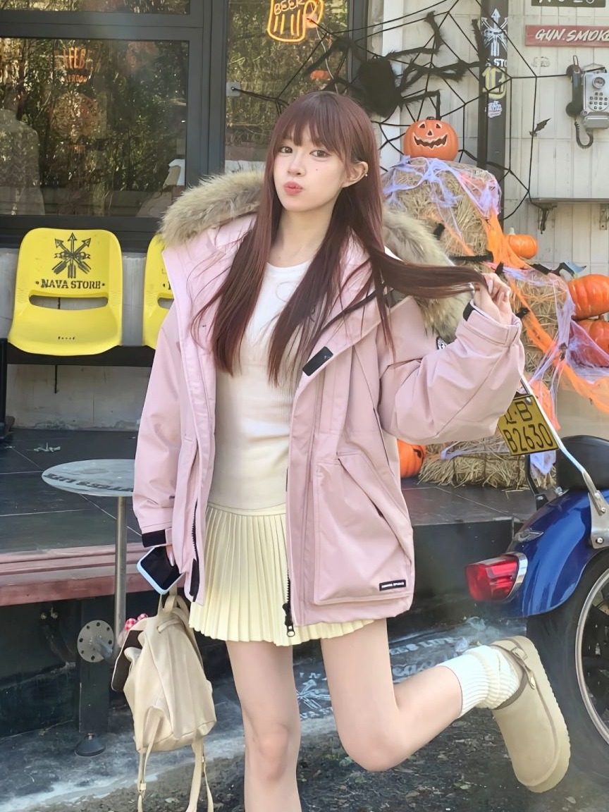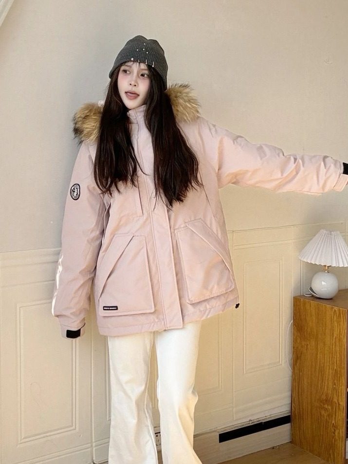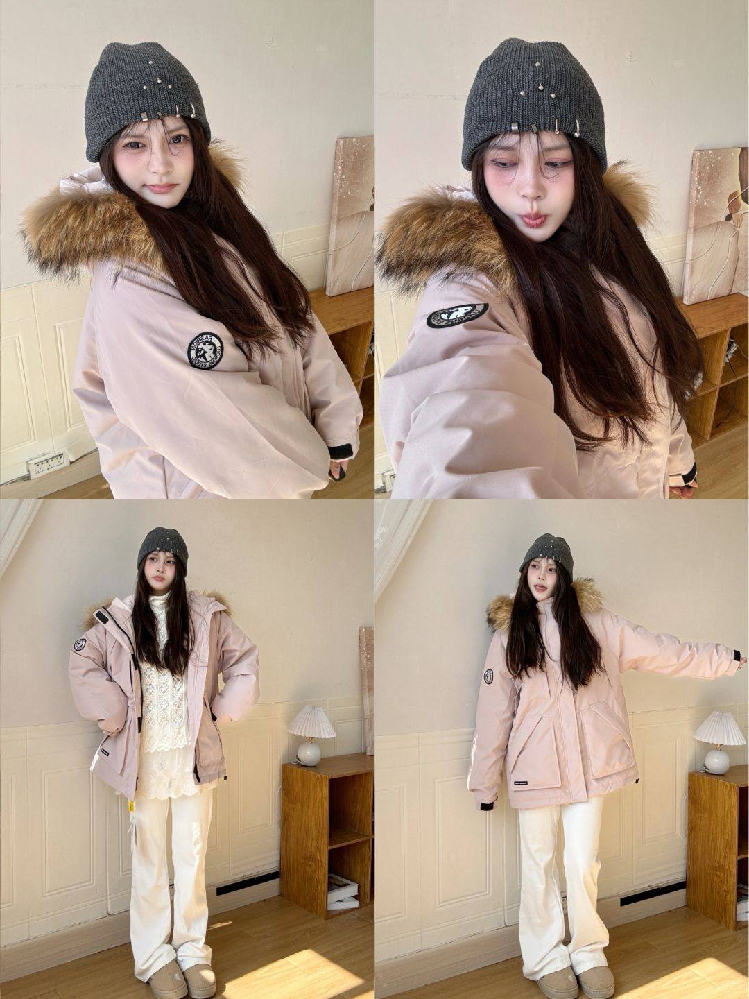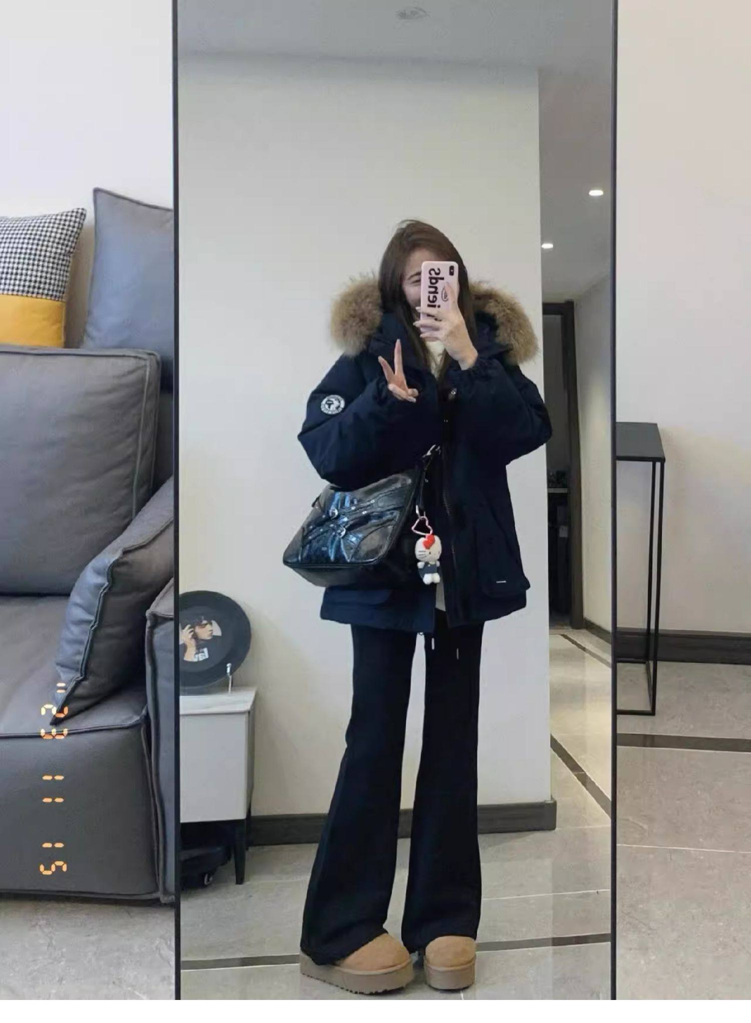 短款工装羽绒服女2025新款冬季小个子大毛领情侣加厚派客服外套爆