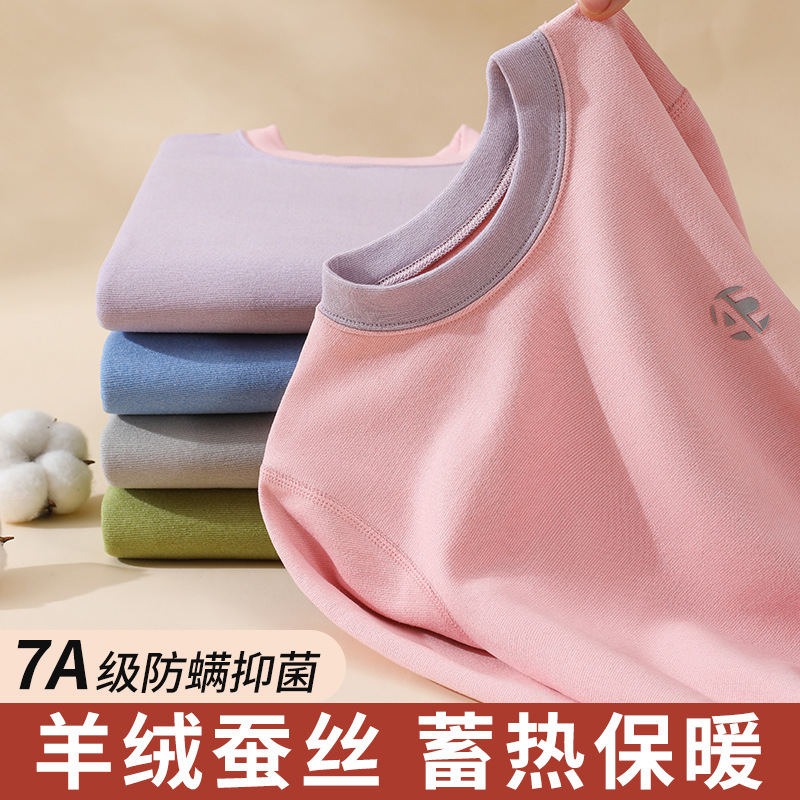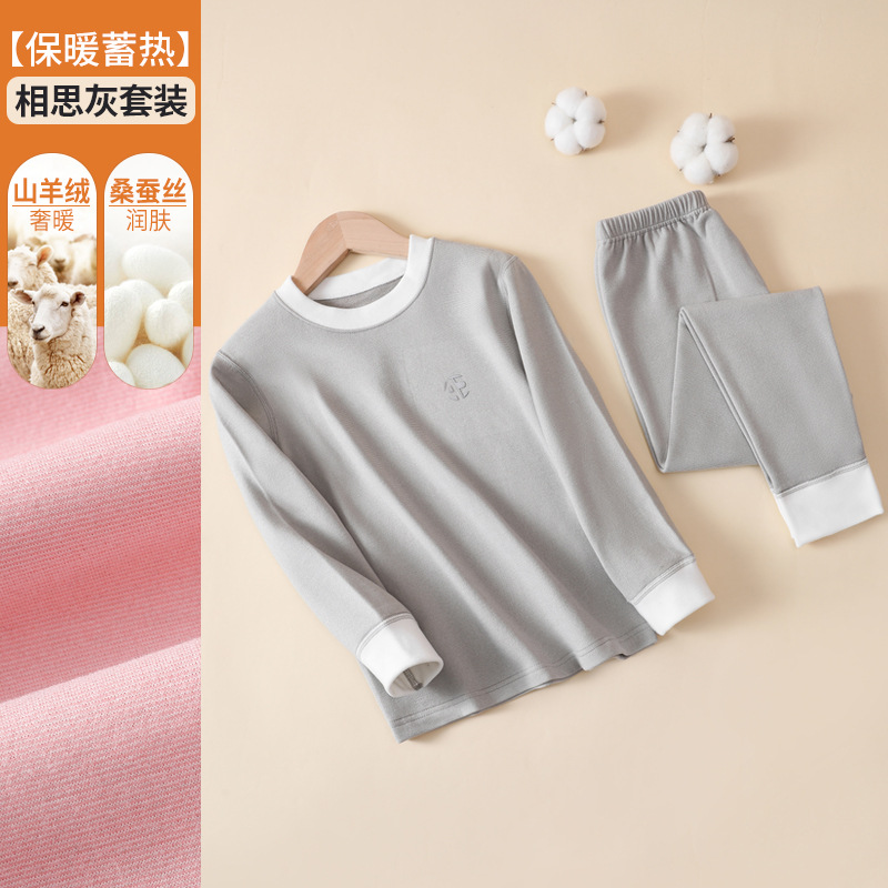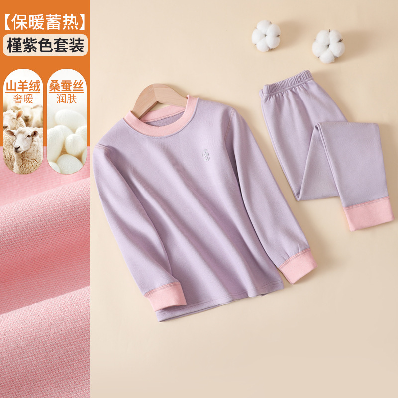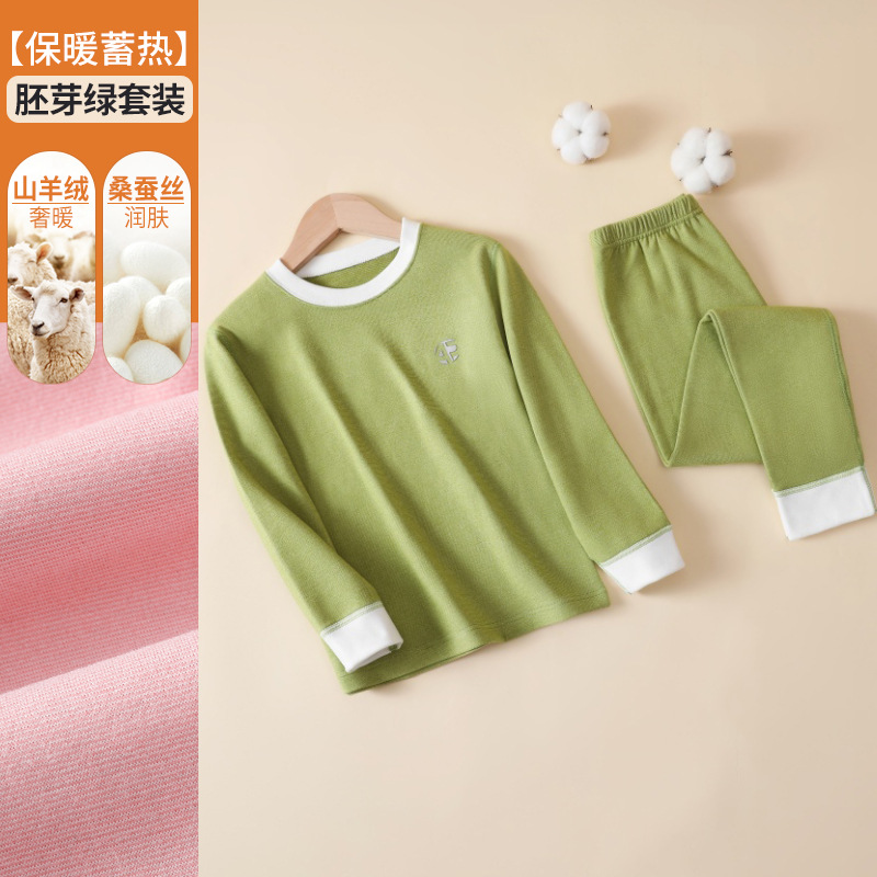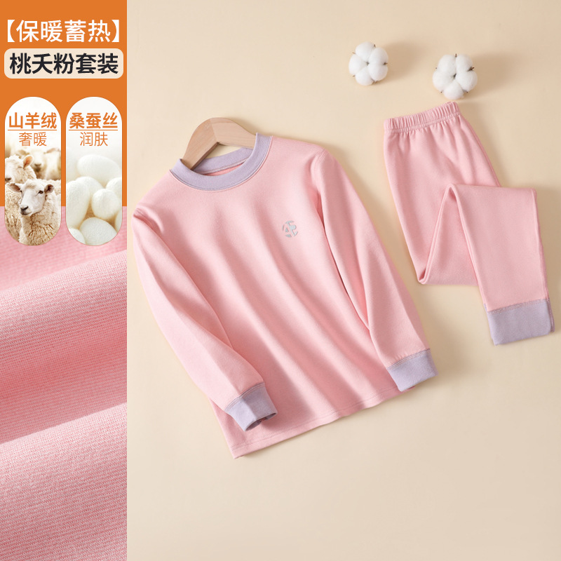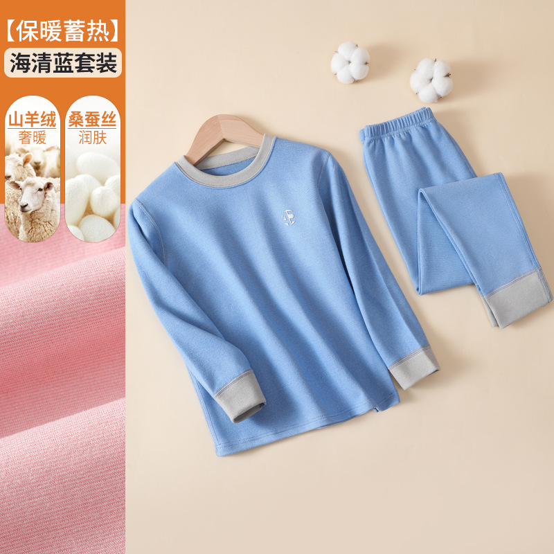 羊绒蚕丝儿童保暖内衣套装加厚磨毛宝宝睡衣打底衫男女童秋衣秋裤