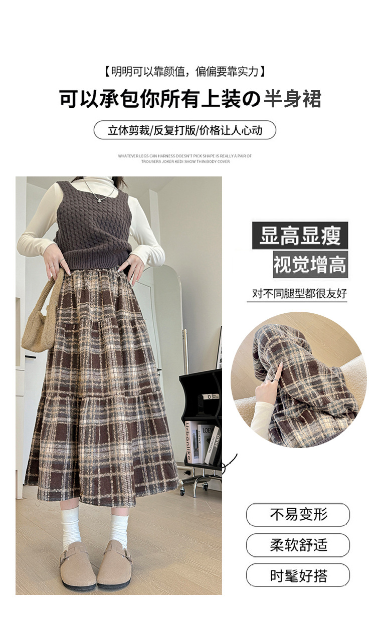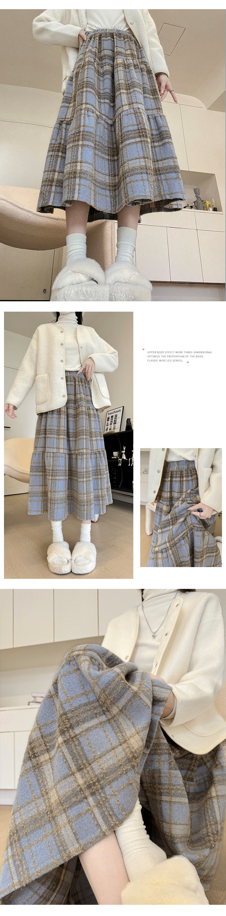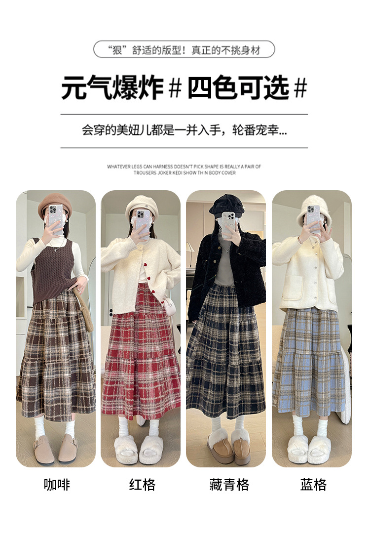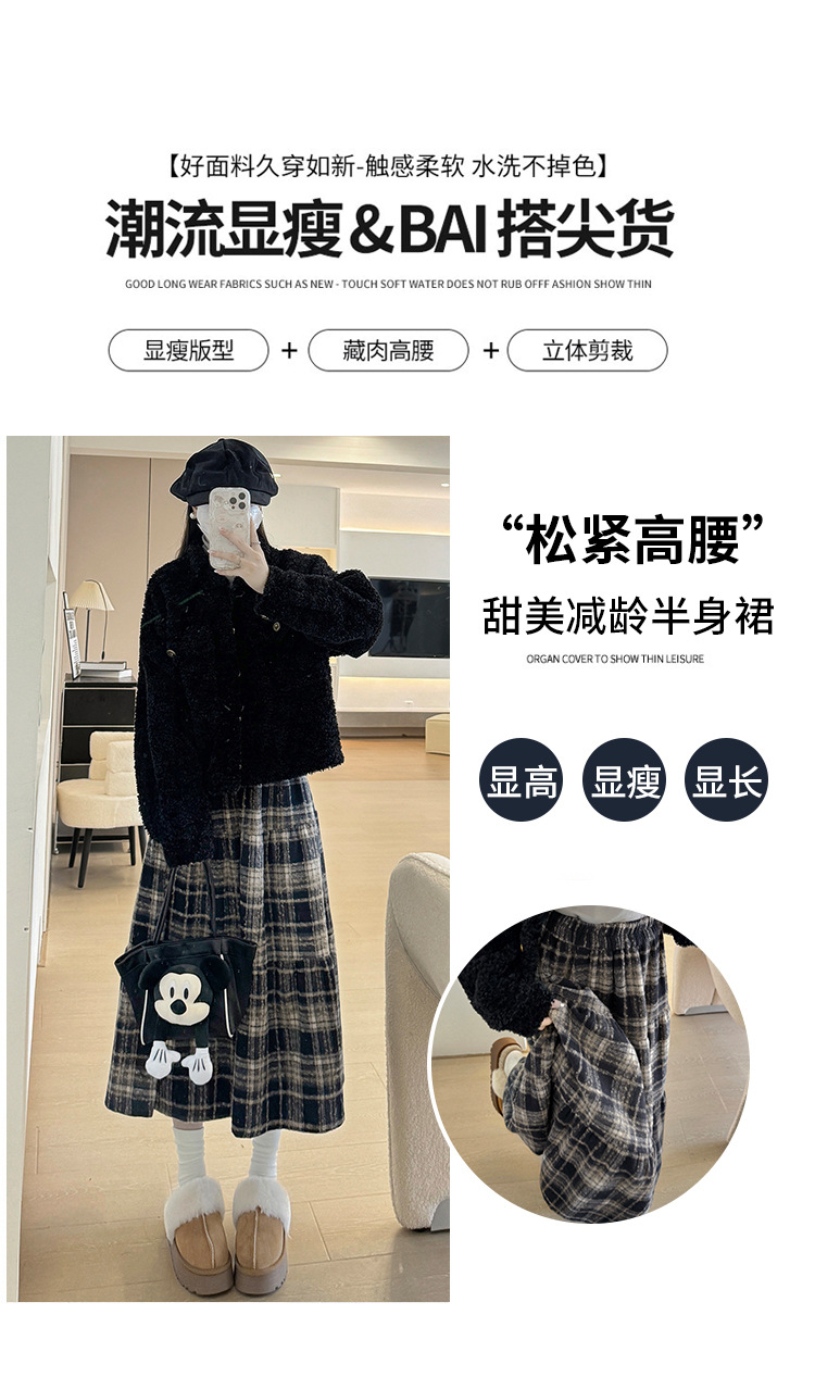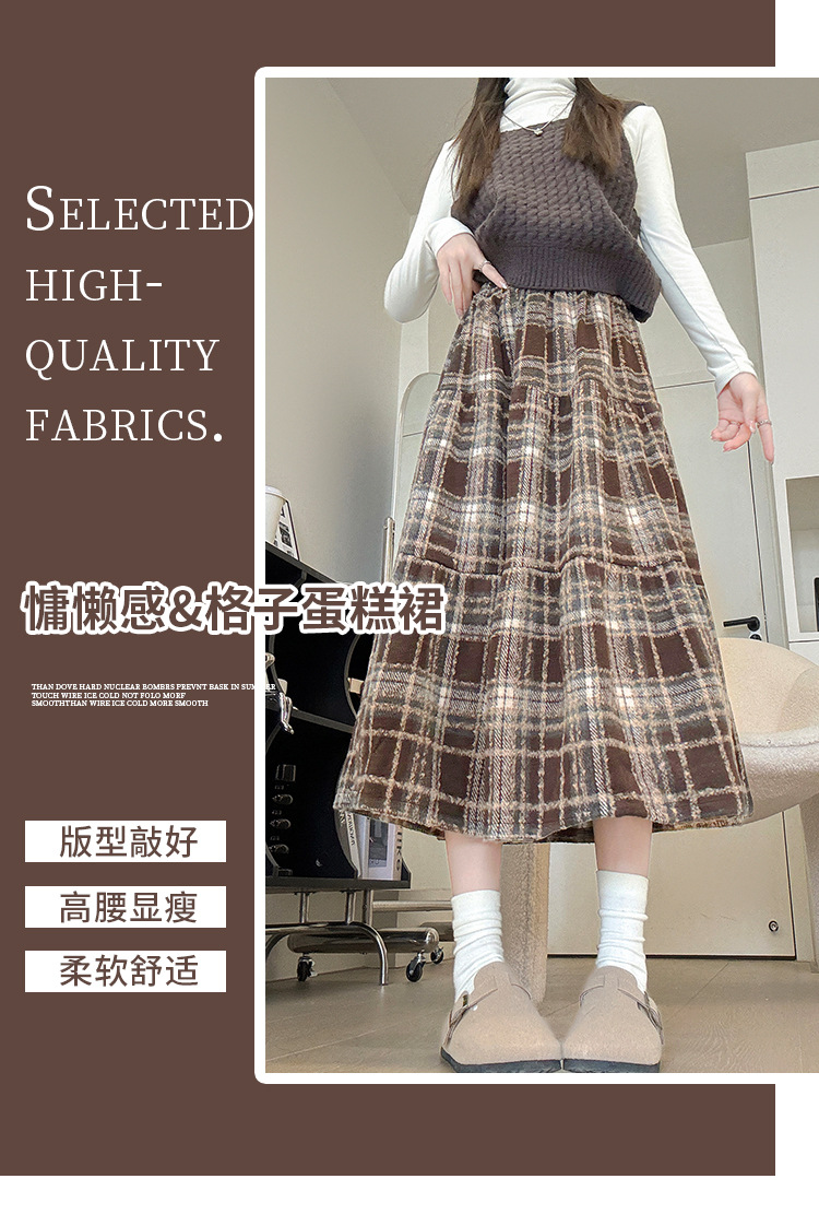 黑色格子裙女春秋2025新款慵懒风显瘦a字蛋糕裙中长款毛呢半身裙