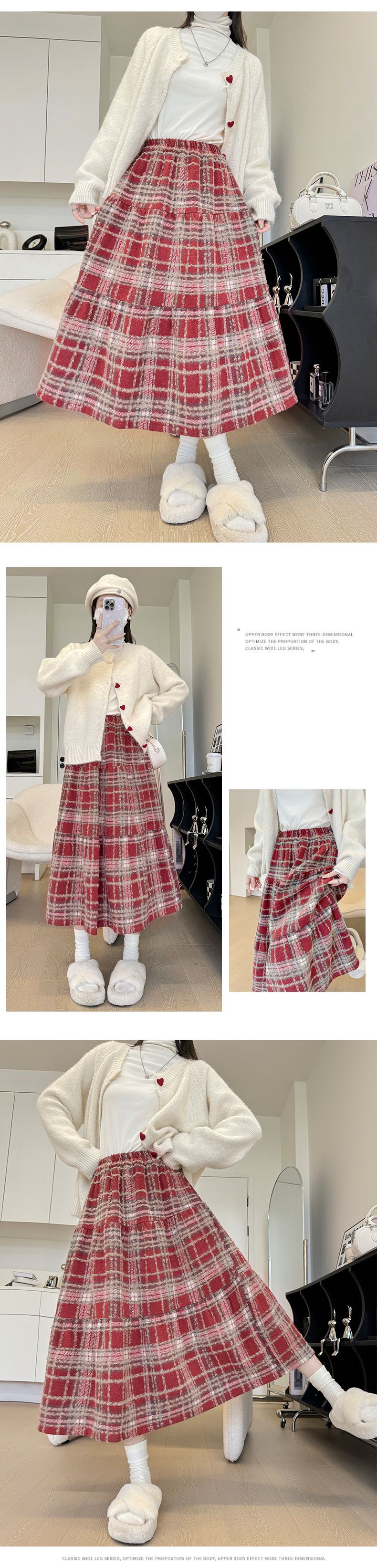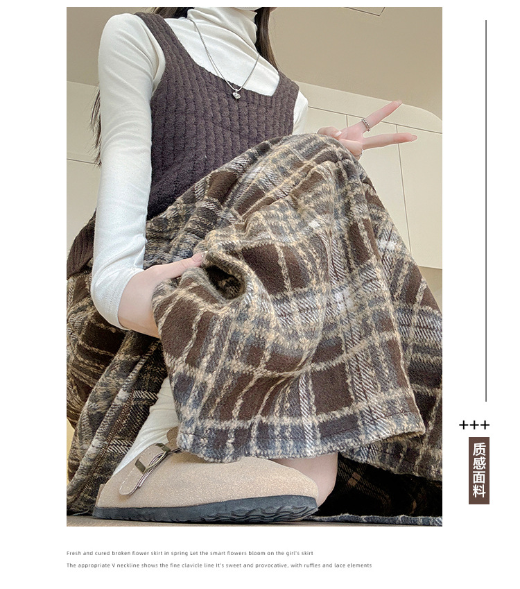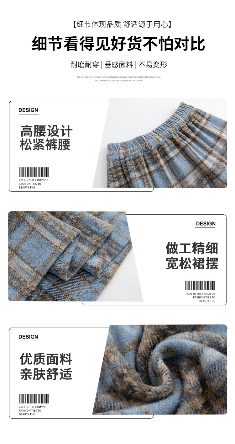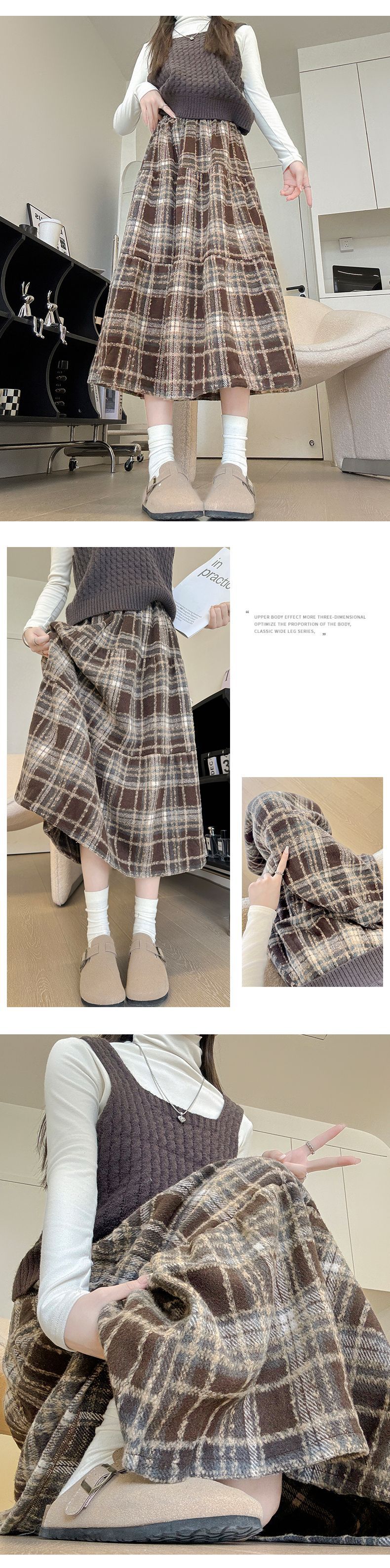 黑色格子裙女春秋2025新款慵懒风显瘦a字蛋糕裙中长款毛呢半身裙