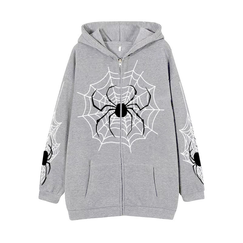 2023跨境蜘蛛网拉链外贸卫衣街潮春秋连帽衫美式复古休闲外套女