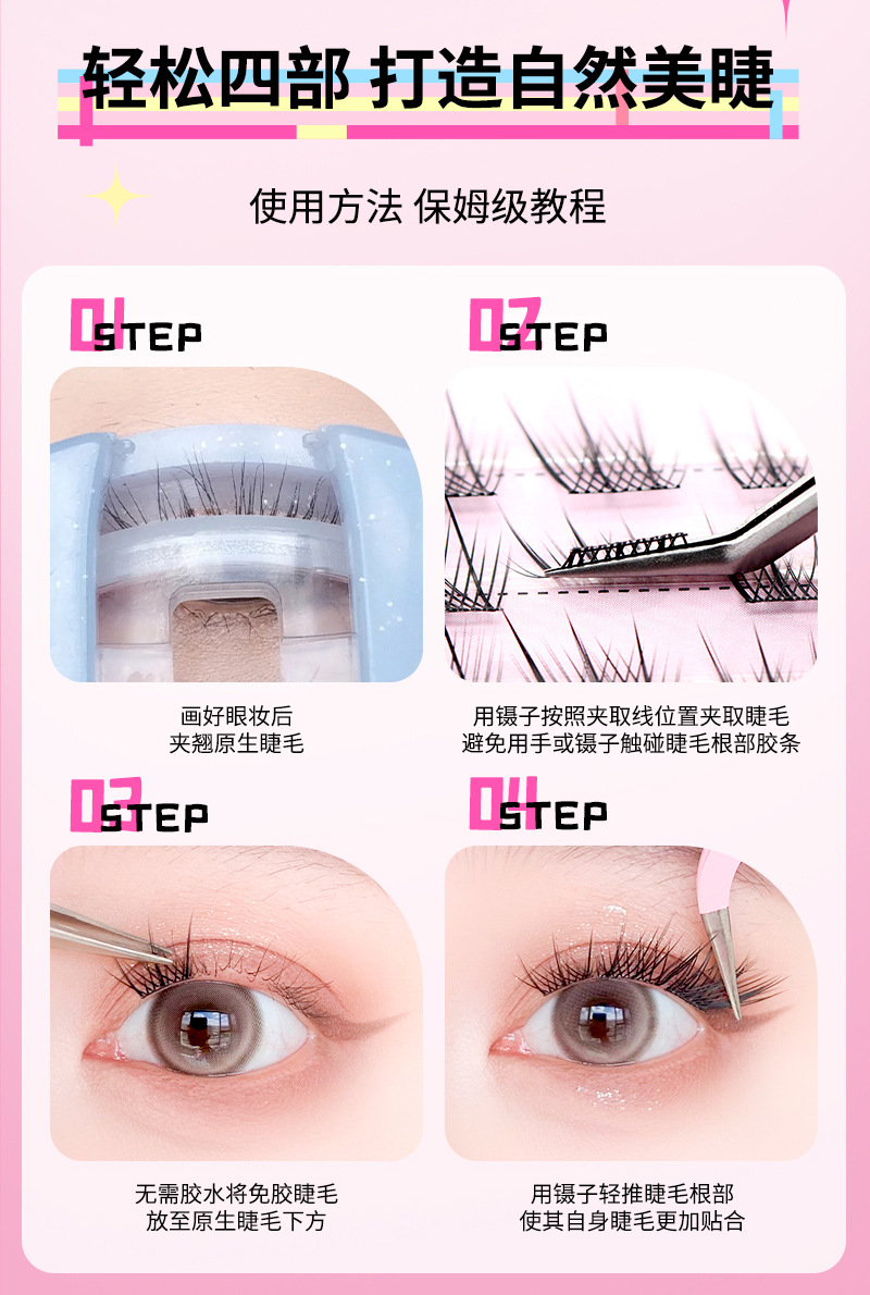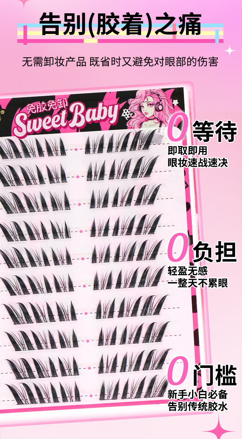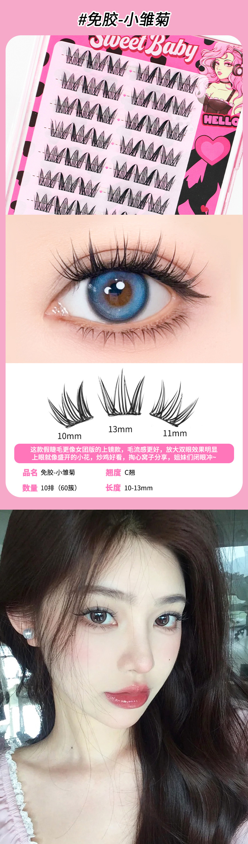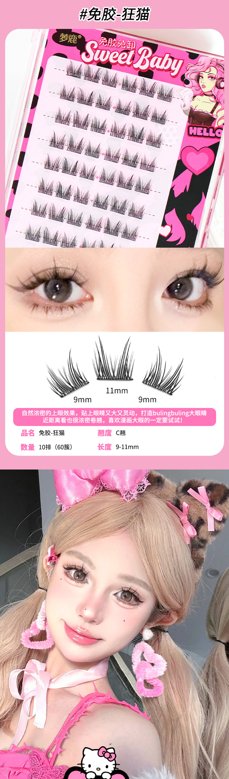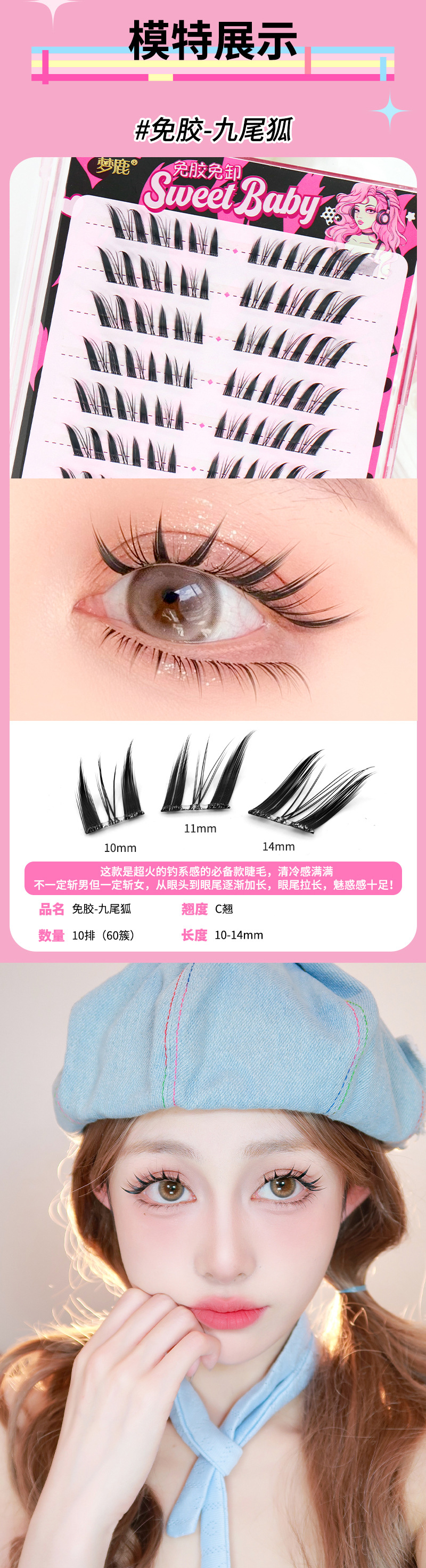 梦鹿免胶自粘九尾狐系狂猫苏妲己小雏菊单簇斜飞懒人女团假睫毛
