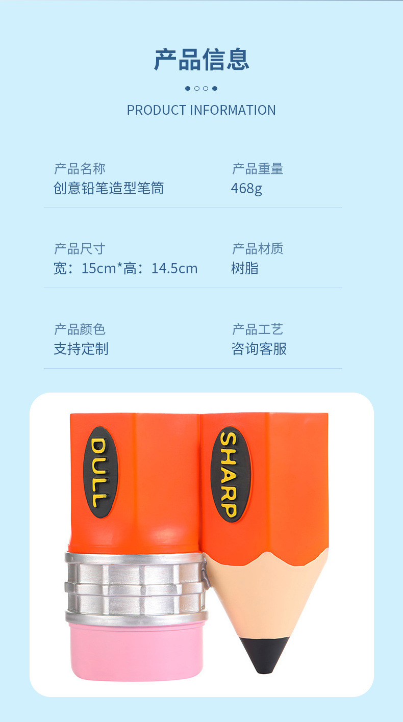 树脂工艺品 创意铅笔笔筒 图书馆书房摆件办公室收纳笔筒立体