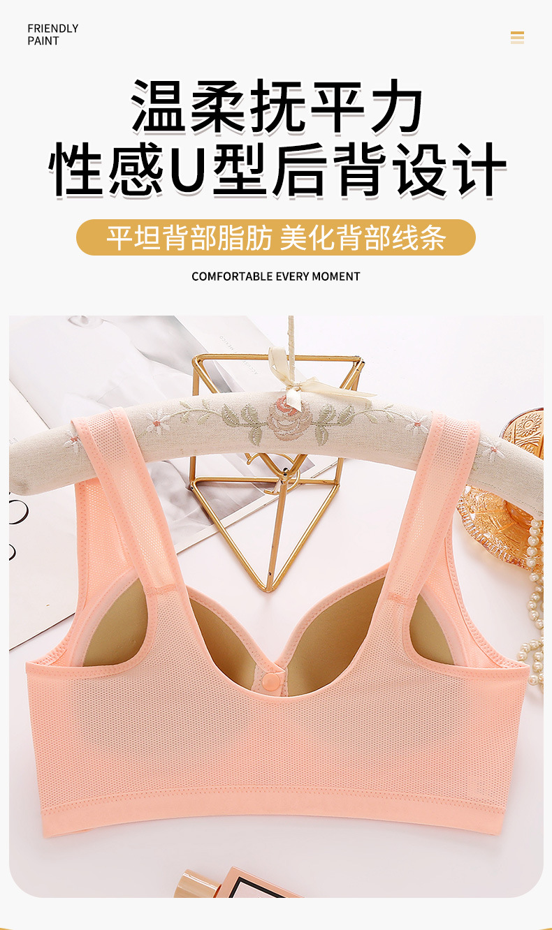 新款大码无钢圈哺乳妈妈美背内衣薄款舒适透气聚拢调整型妈妈文胸
