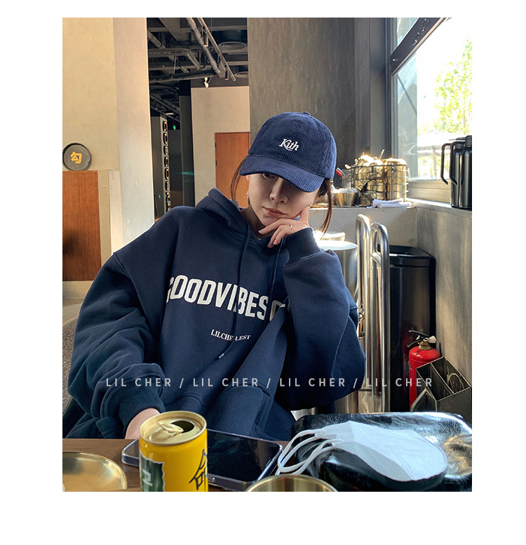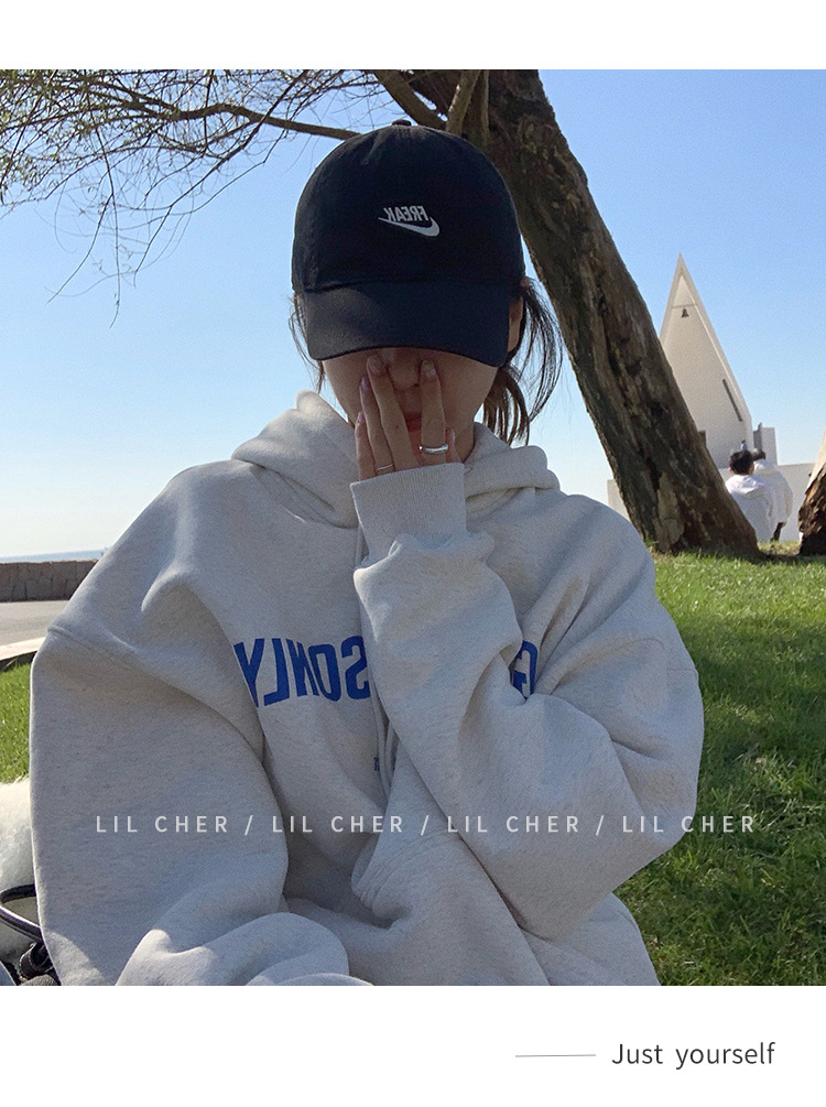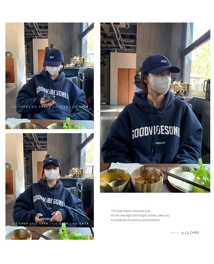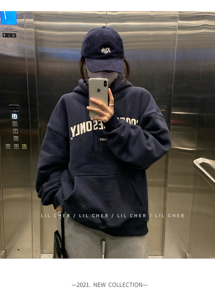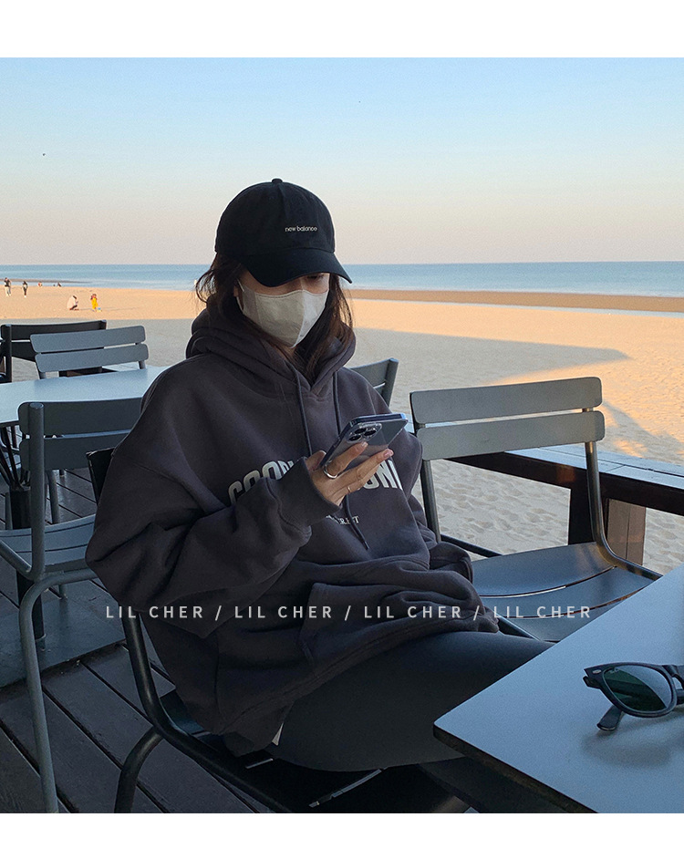 加绒连帽卫衣女秋冬新款宽松字母印花韩版时尚学生外套长袖上衣潮