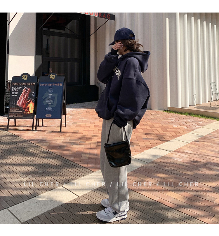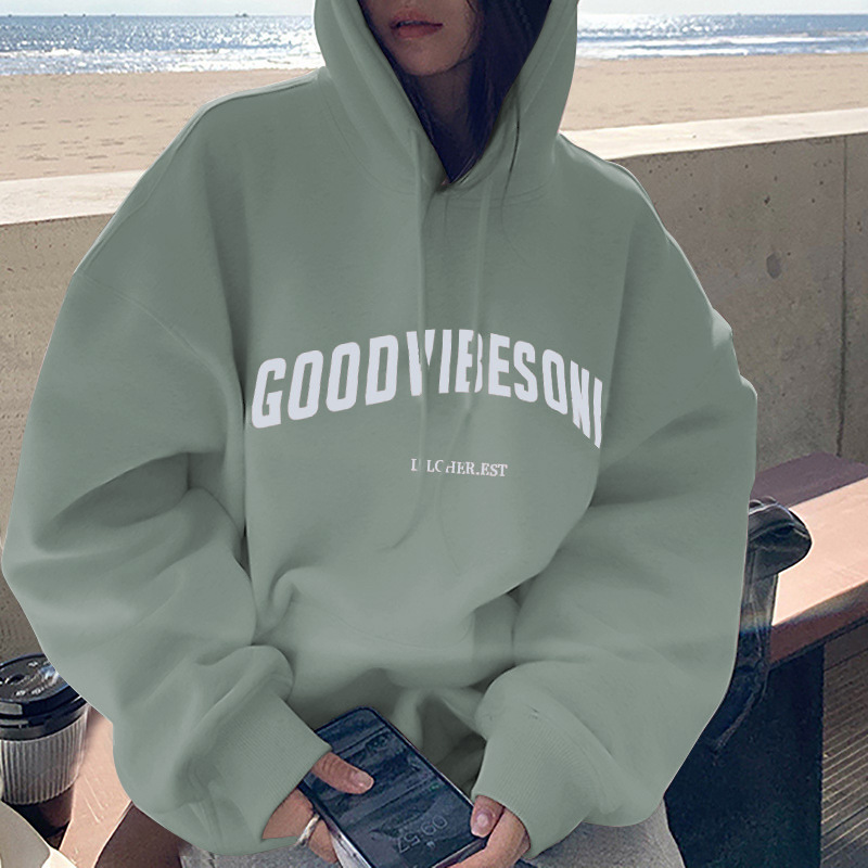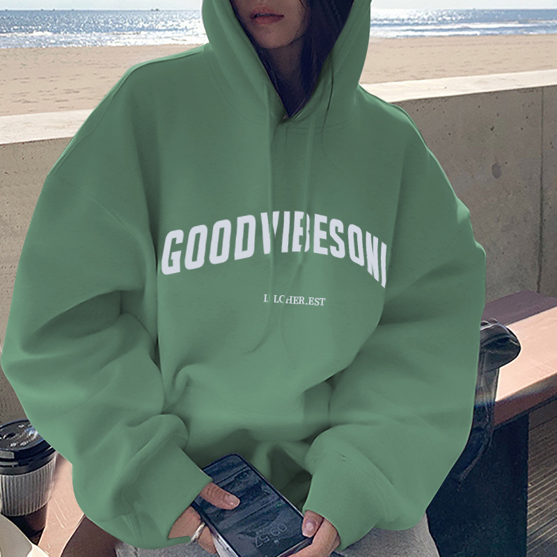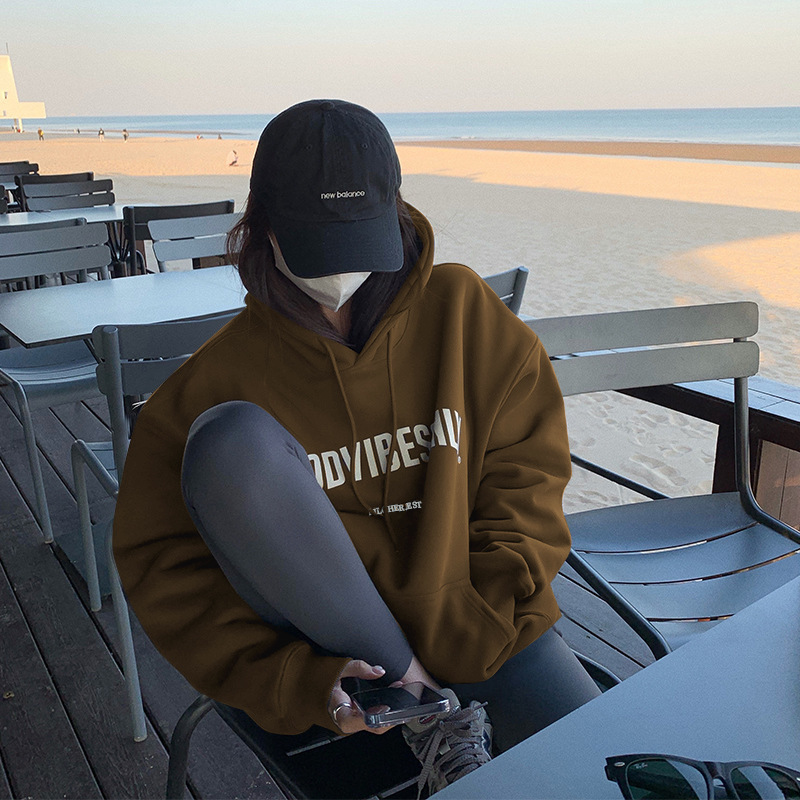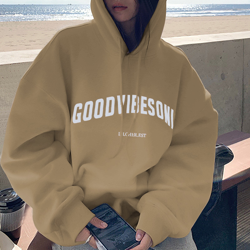 加绒连帽卫衣女秋冬新款宽松字母印花韩版时尚学生外套长袖上衣潮