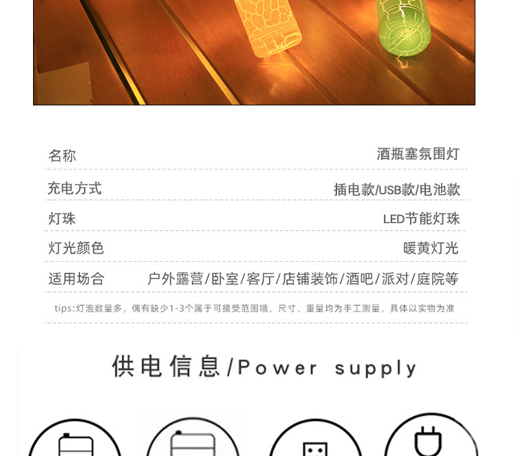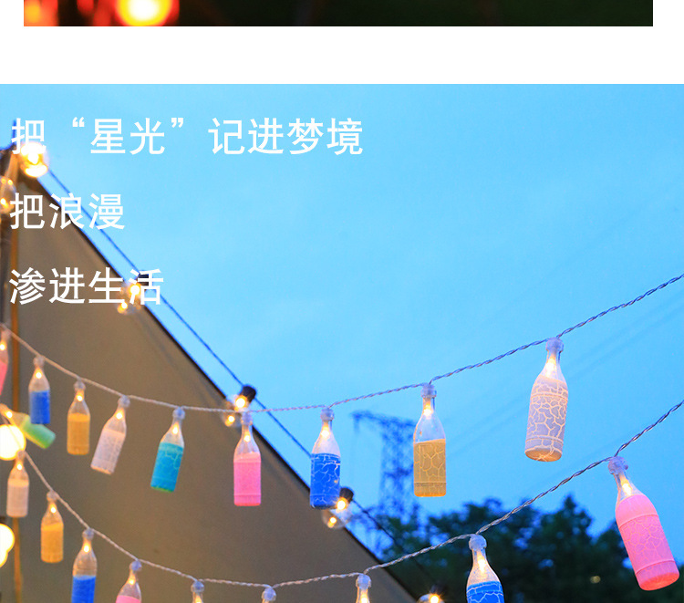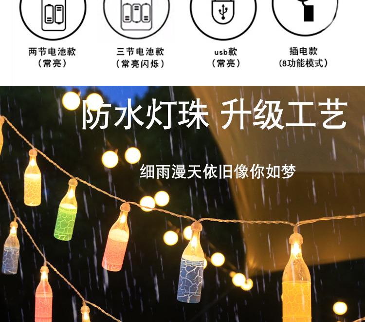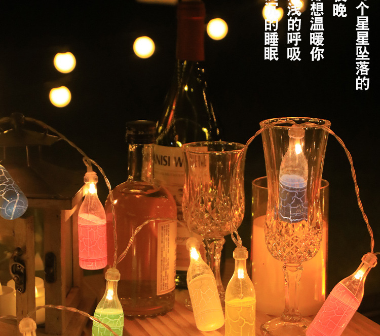 酒瓶小彩灯酒吧装饰氛围节日摆滩彩色马卡龙地摊电池usb奶茶店