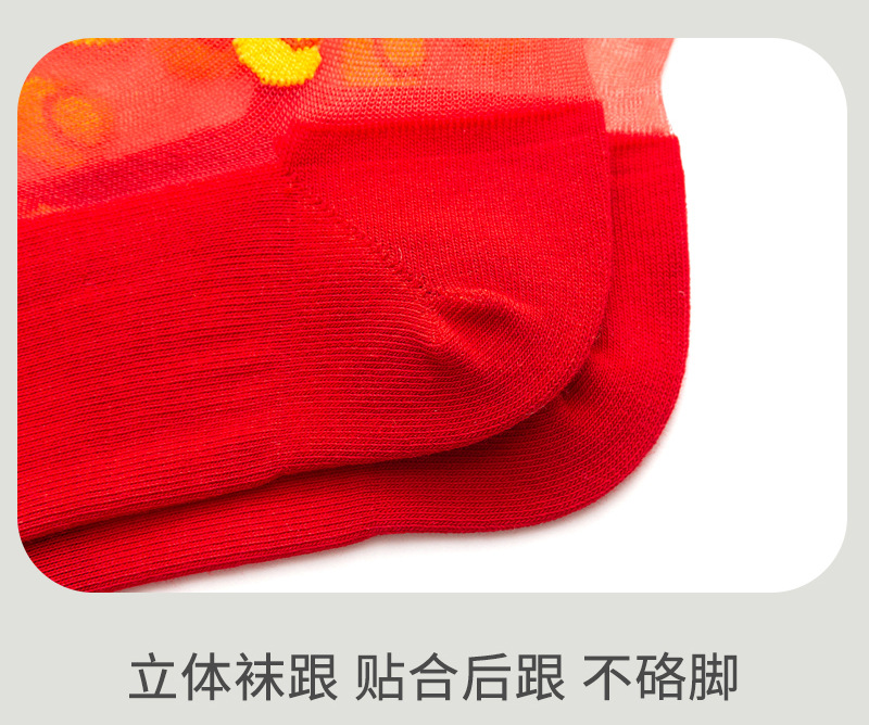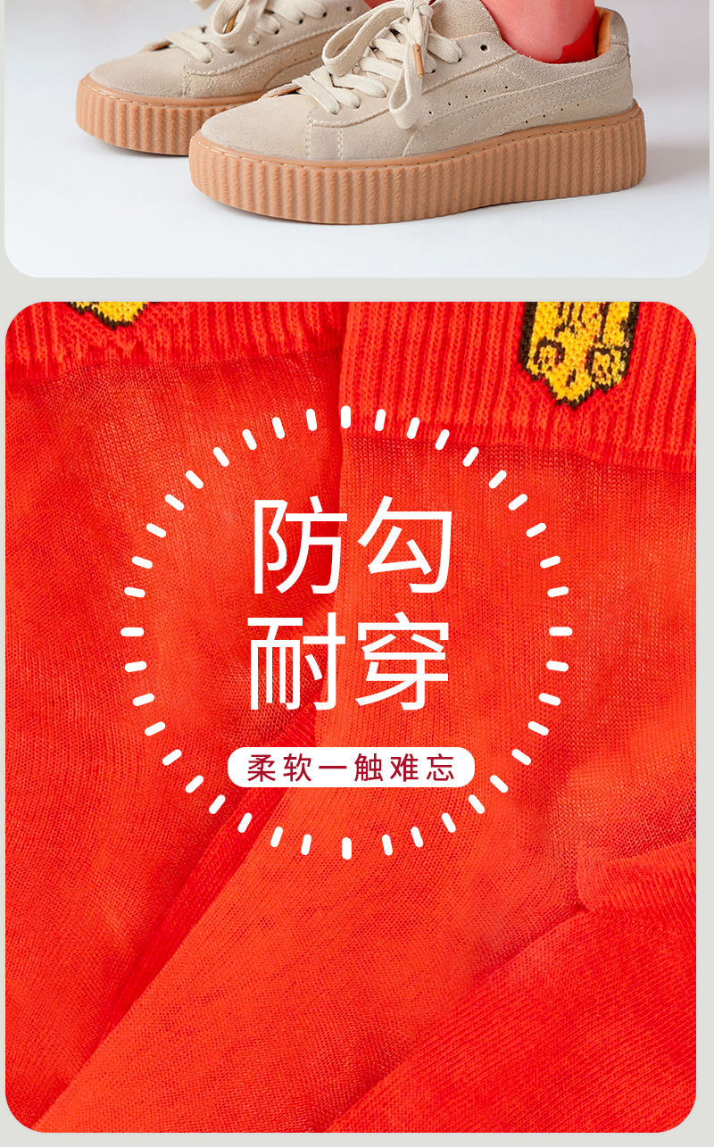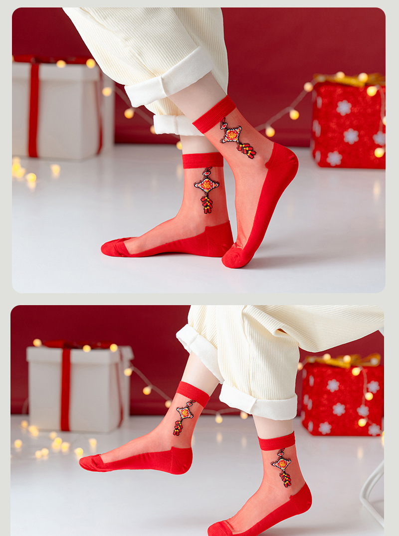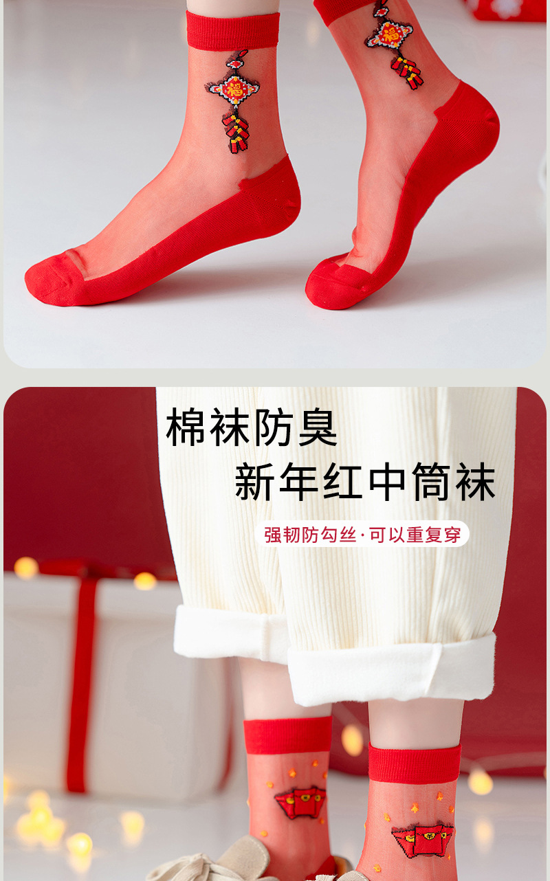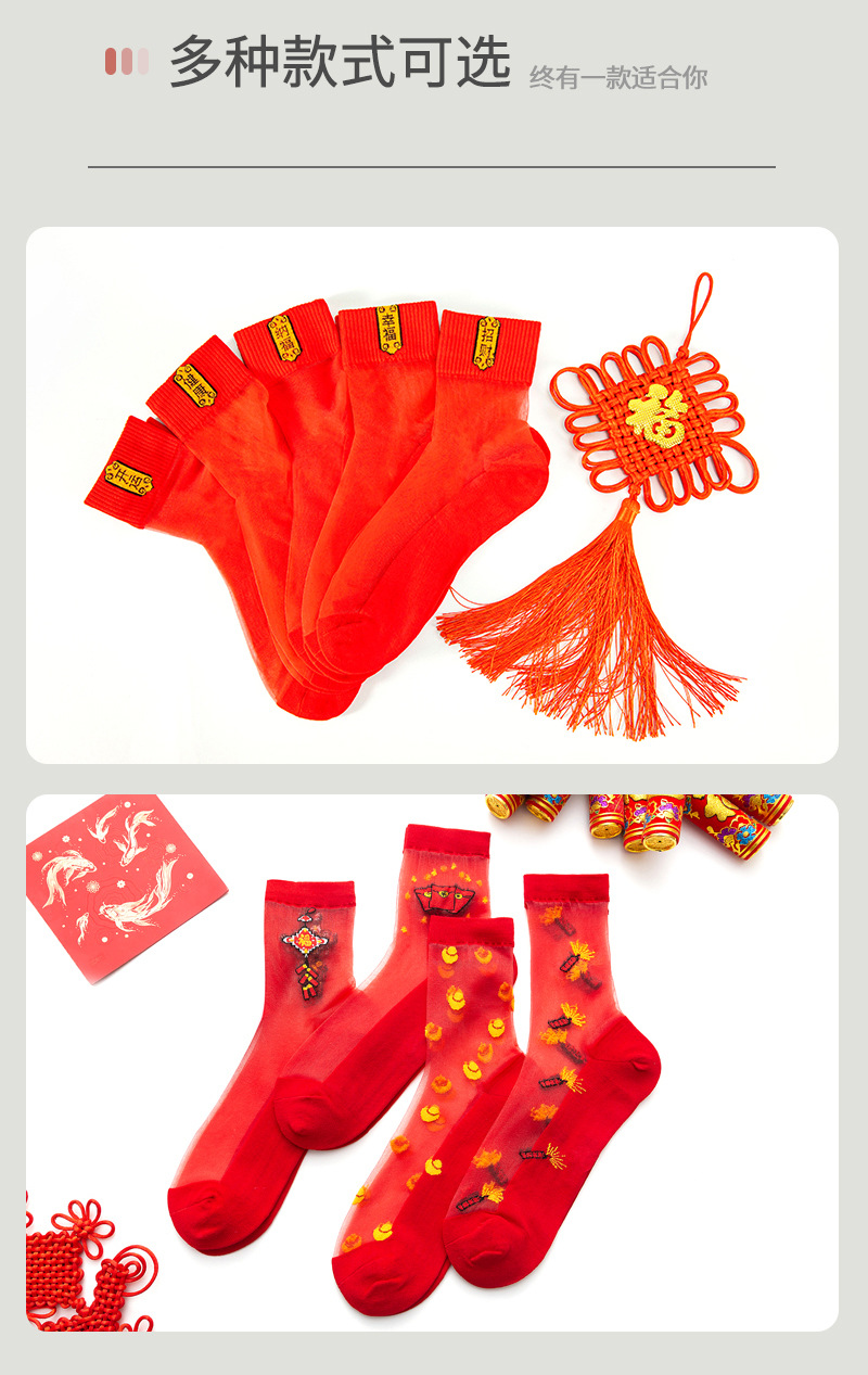 一件代发 新年福字大红色棉底水晶丝中筒女袜 防勾丝本命年卡丝袜