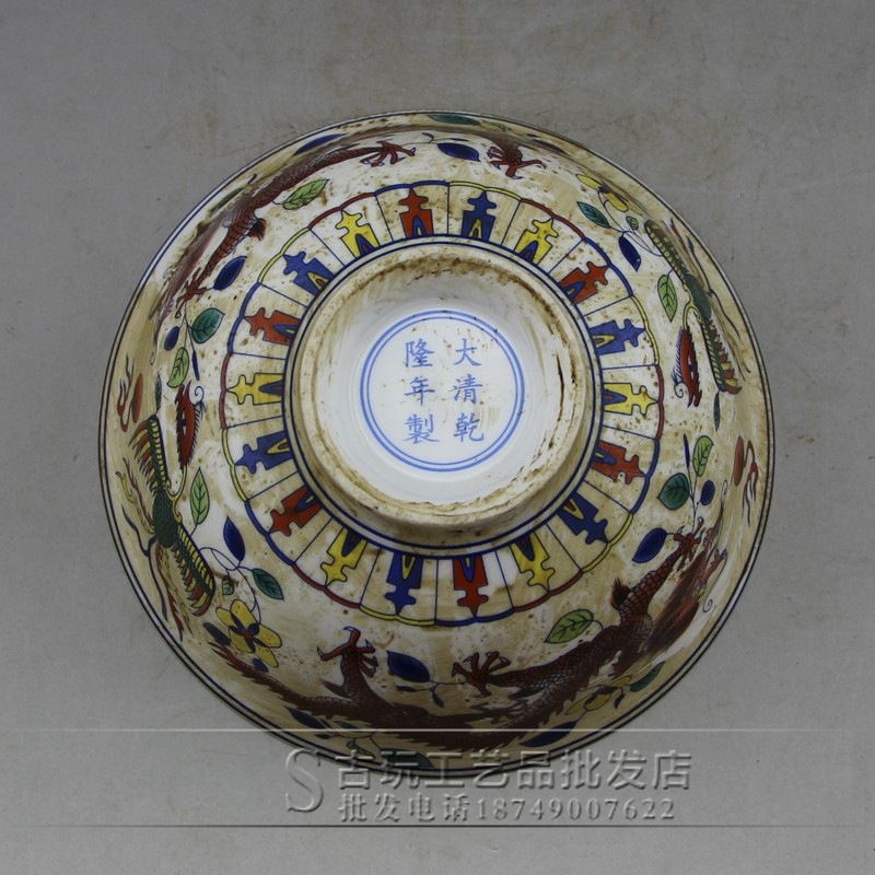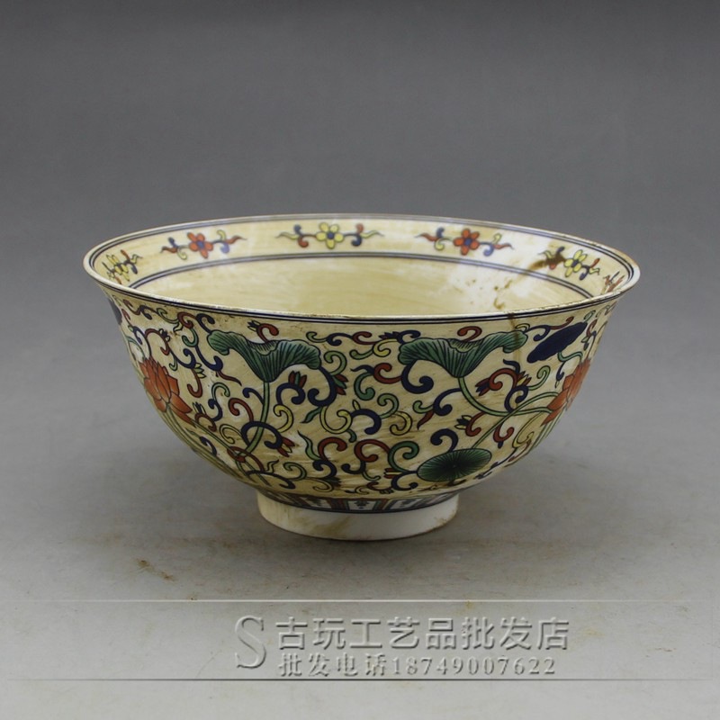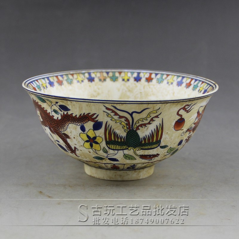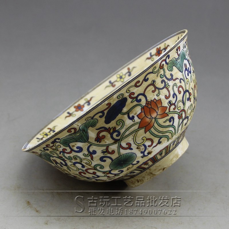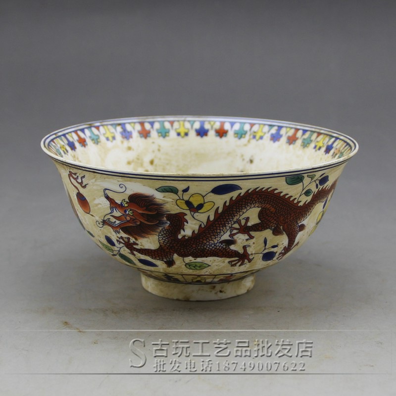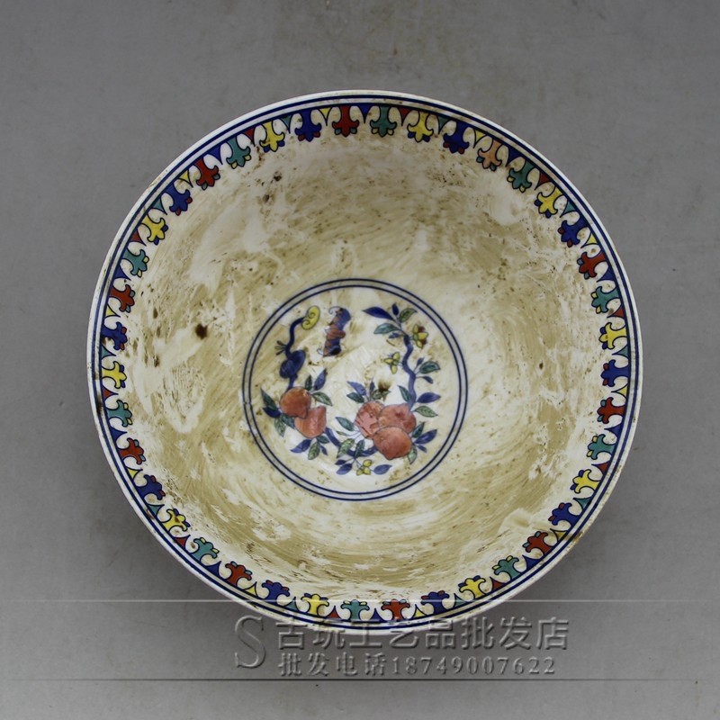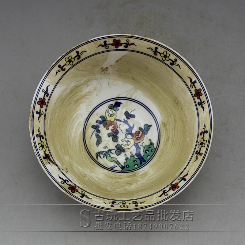 复古做旧明清瓷器工艺品批发13cm口径彩绘瓷碗古玩家居摆件