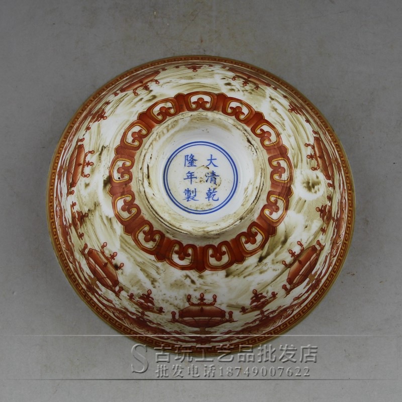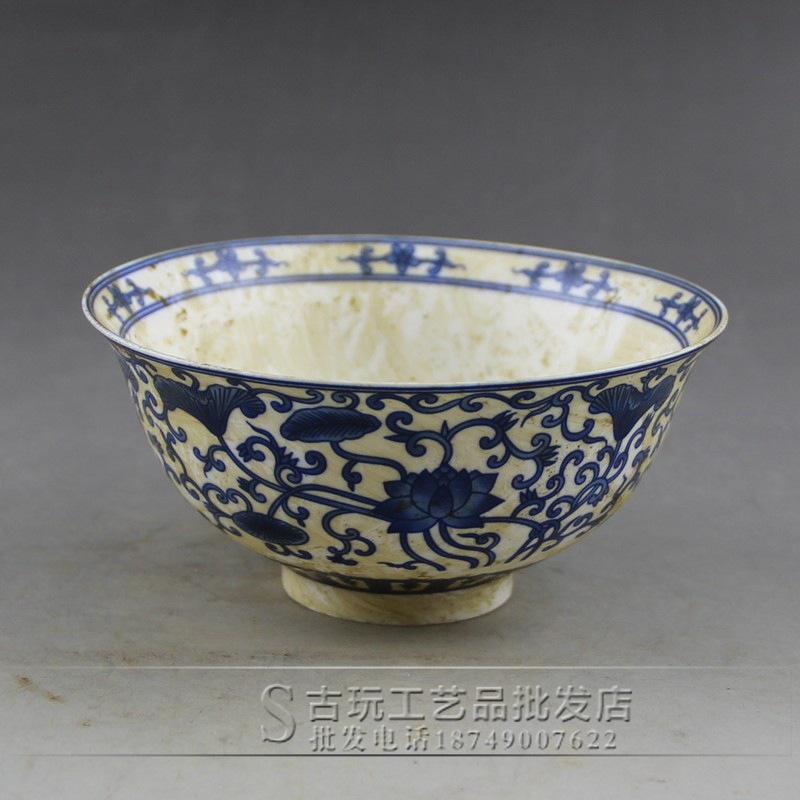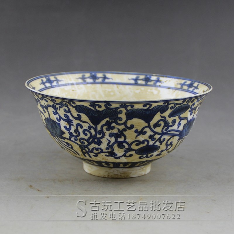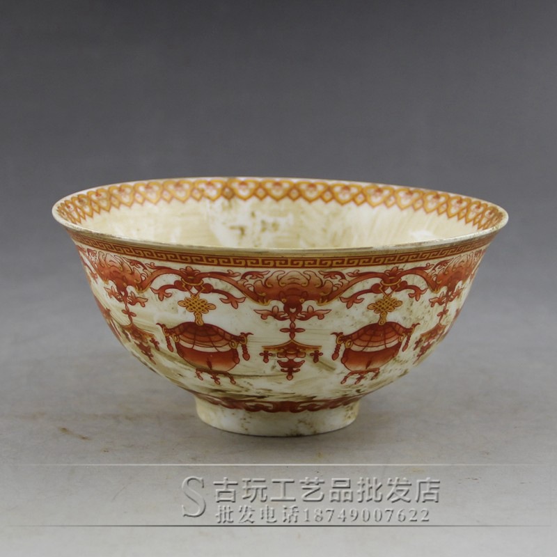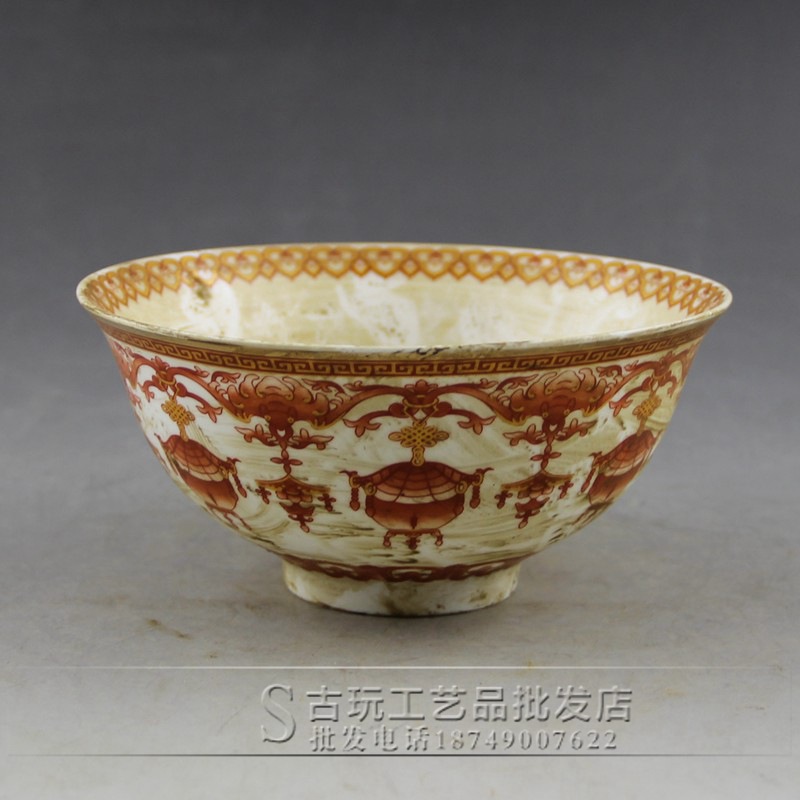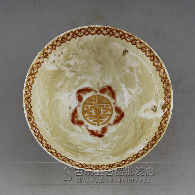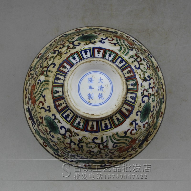 复古做旧明清瓷器工艺品批发13cm口径彩绘瓷碗古玩家居摆件