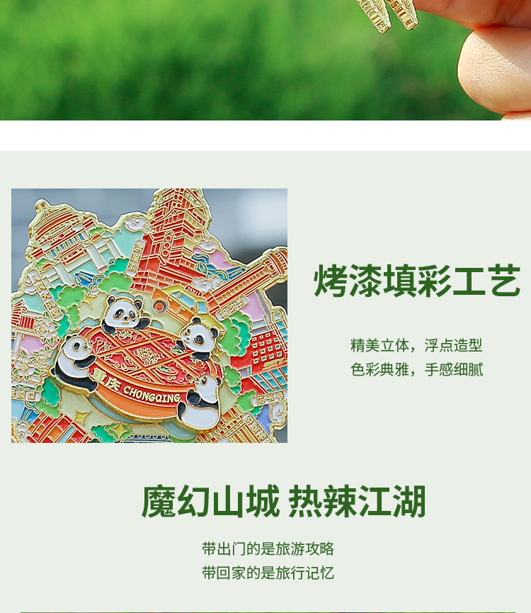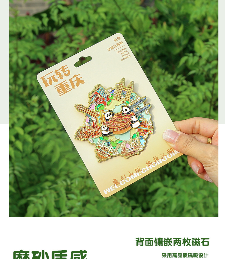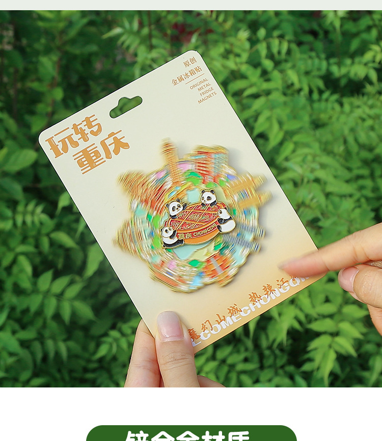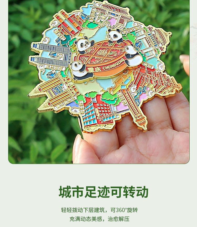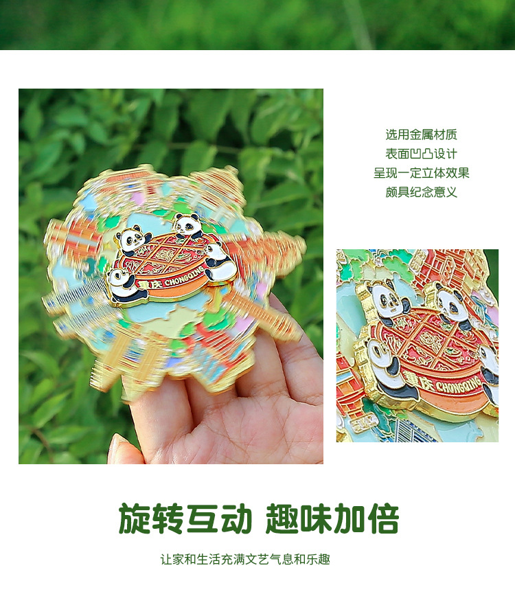 重庆熊猫旋转系列旅游城市磁吸冰箱贴 新创意可转动的金属冰箱贴