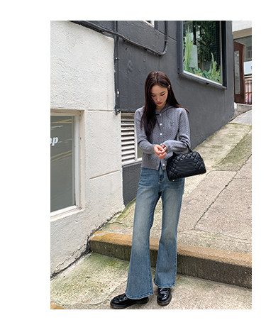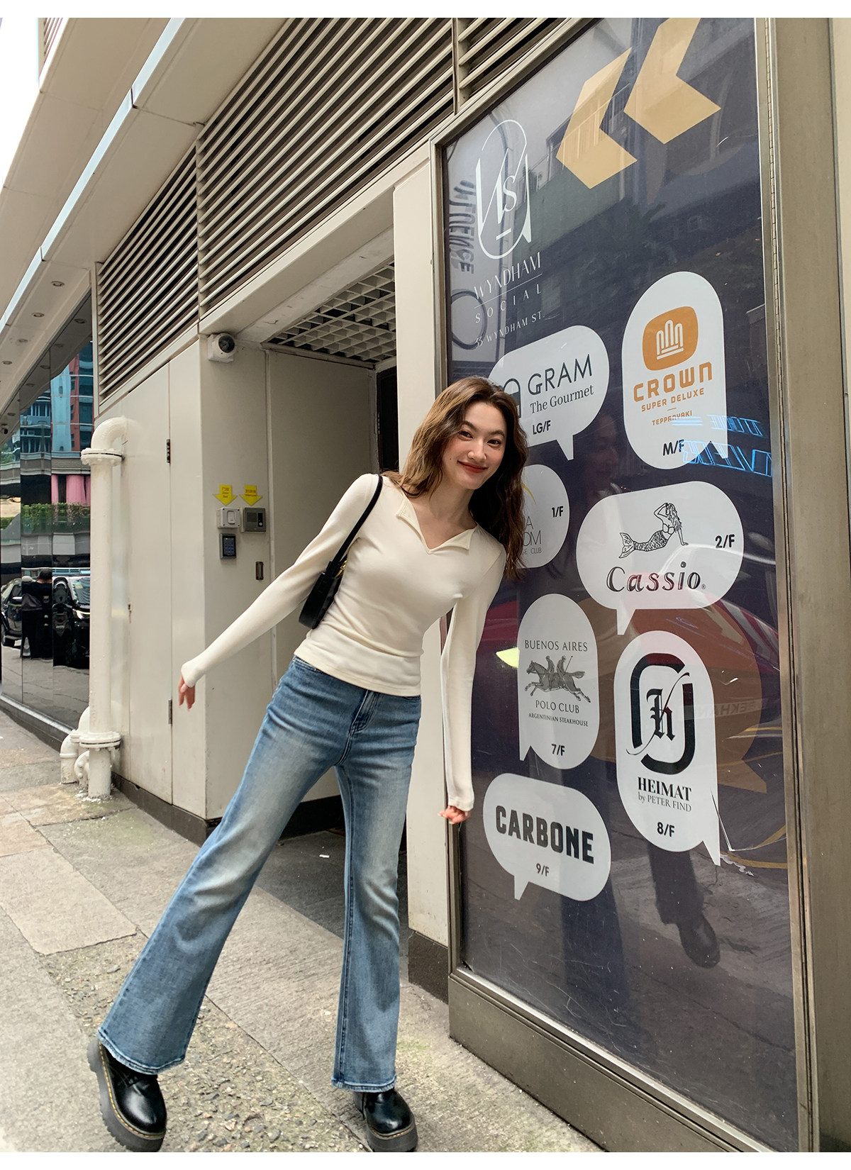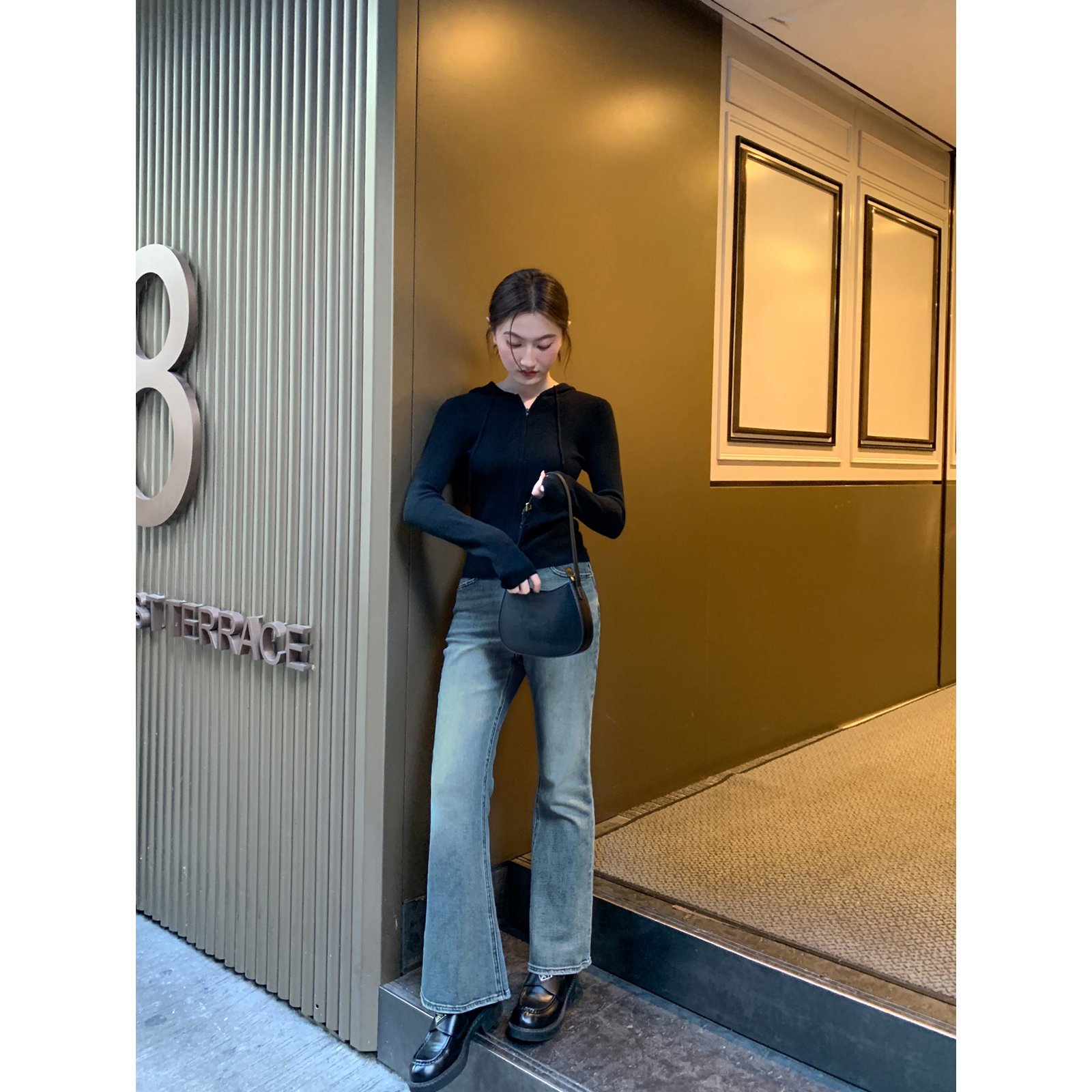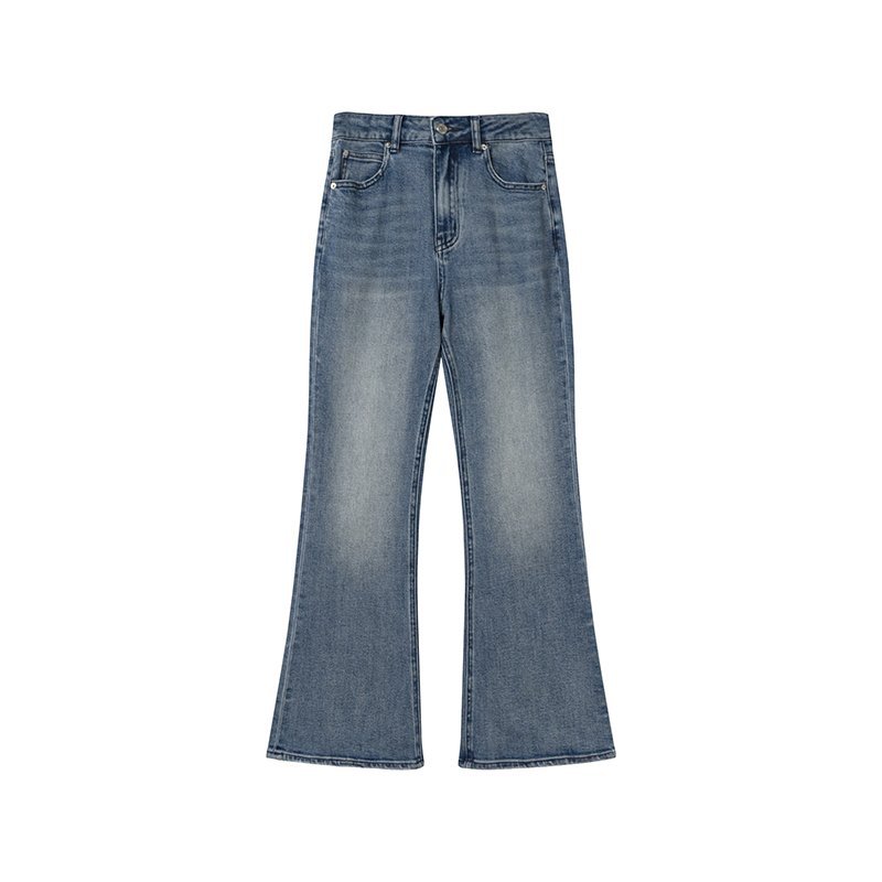 浅蓝色微弹微喇牛仔裤女春季新款高腰修身显瘦休闲裤子
