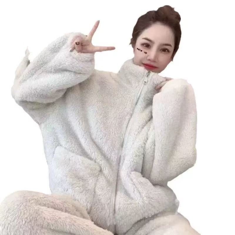 2025新款暖绒拉链套装双面加绒加厚立领舒棉绒保暖睡衣家居服大码