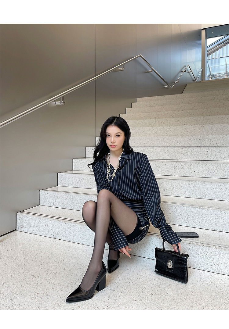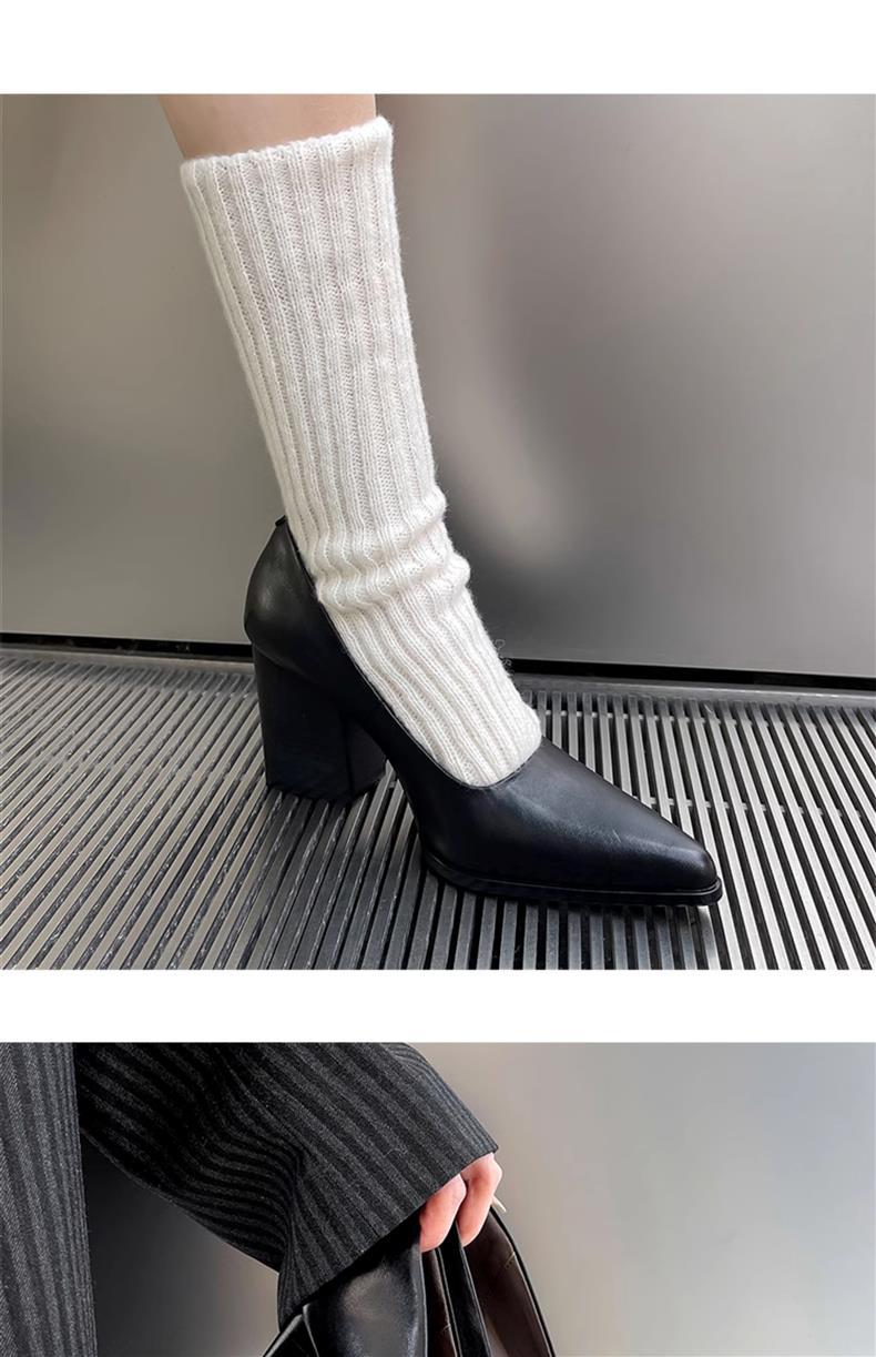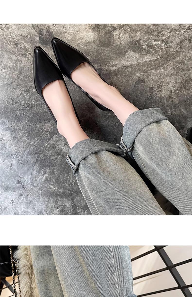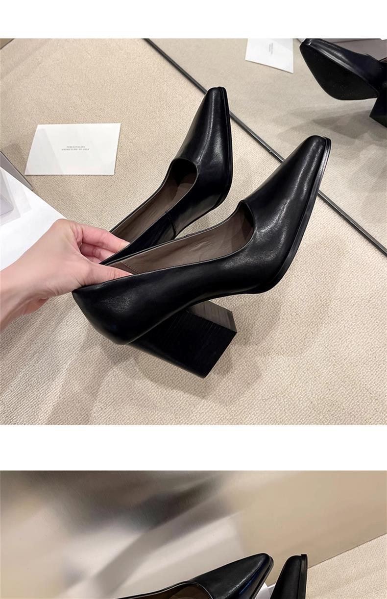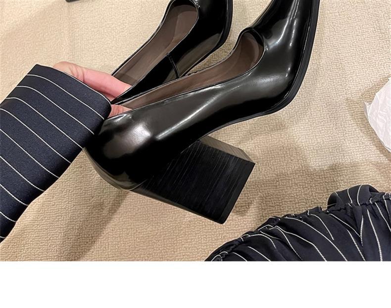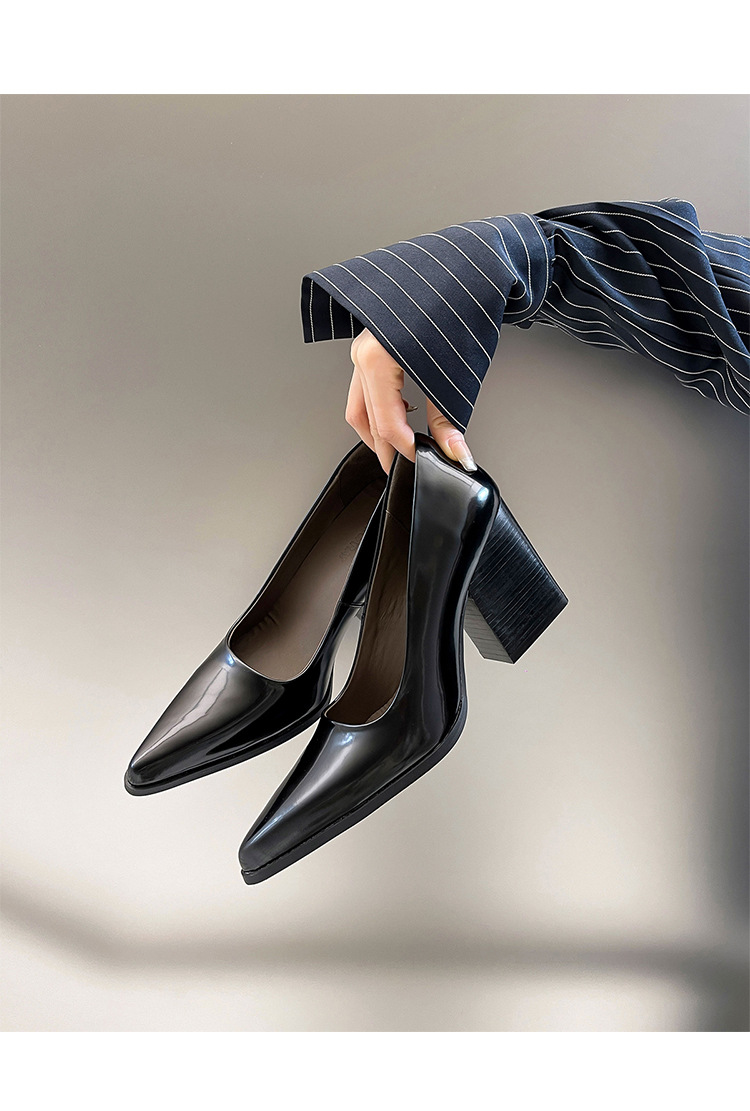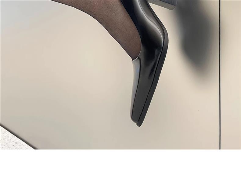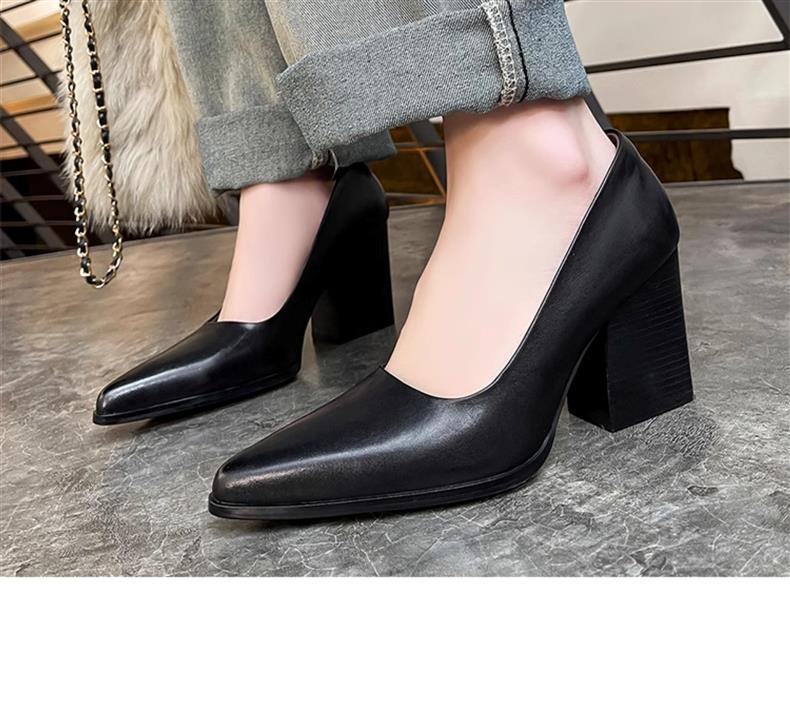一脚蹬~2025春季新款复古尖头浅口8cm粗跟高跟鞋女百搭通勤单鞋
