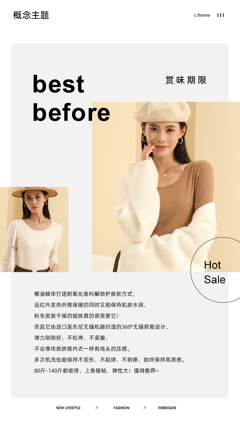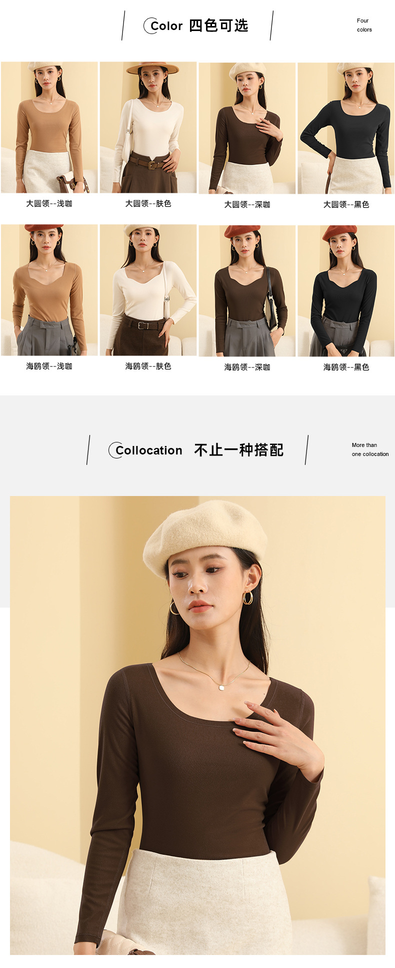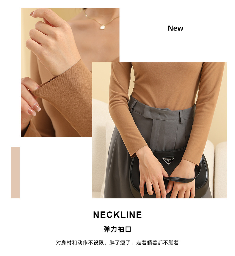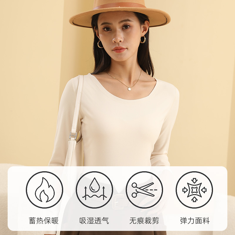 椰油打底衫女简约纯色亲肤百搭秋衣圆领显瘦上衣秋冬可外穿美肤衣