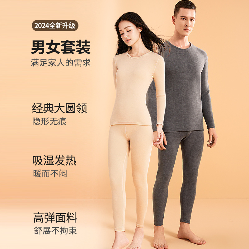 新款莱赛尔天丝保暖内衣女德绒蚕丝秋衣秋裤男士加绒保暖情侣