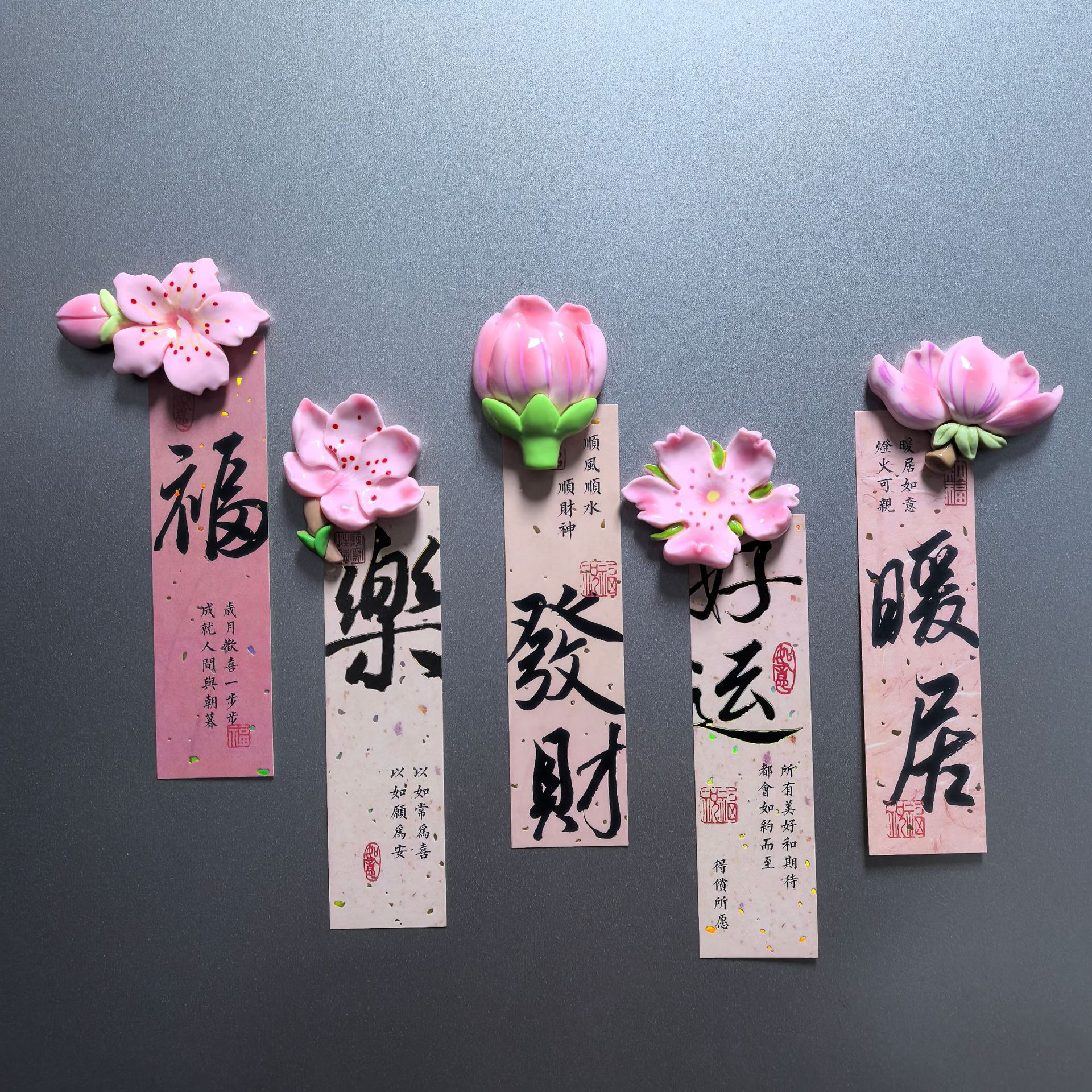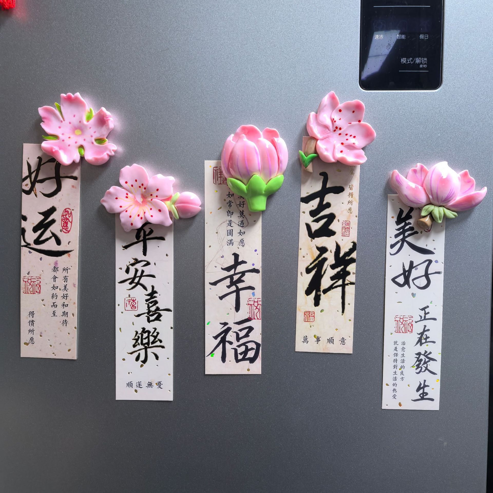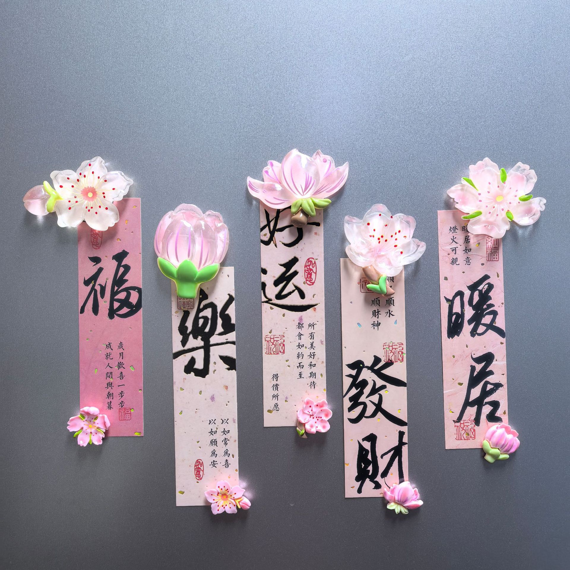 新款中国风花朵冰箱贴樱花磁铁夜光发光款创意高颜值装饰品国潮风