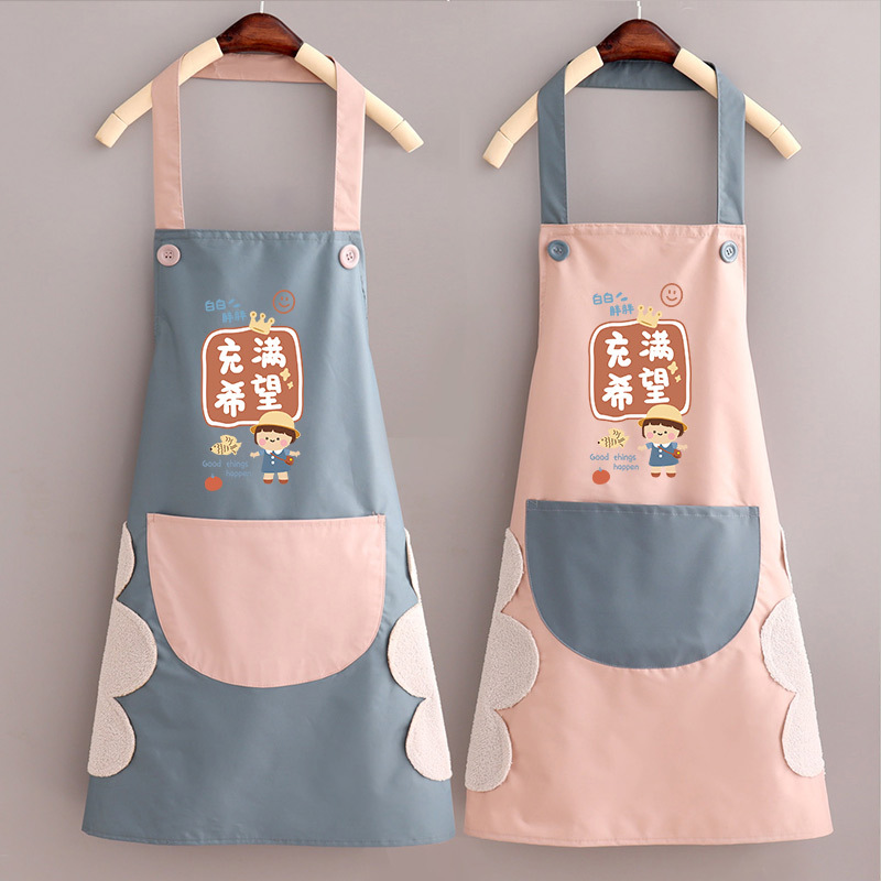 韩版时尚卡通围裙防水女厨房做饭围腰无袖罩衣上班工作男logo