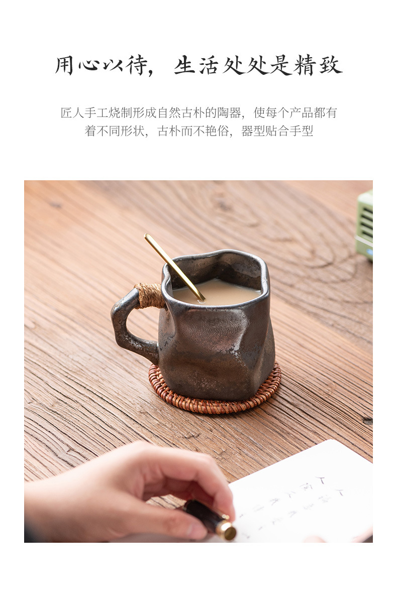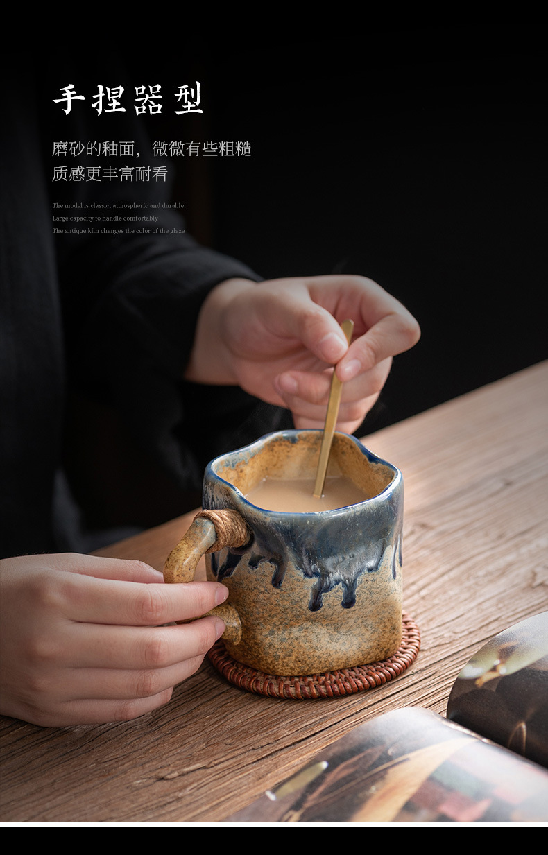 异形马克杯跨境专供复古陶瓷杯粗陶窑变咖啡杯高颜值杯子拿铁水杯