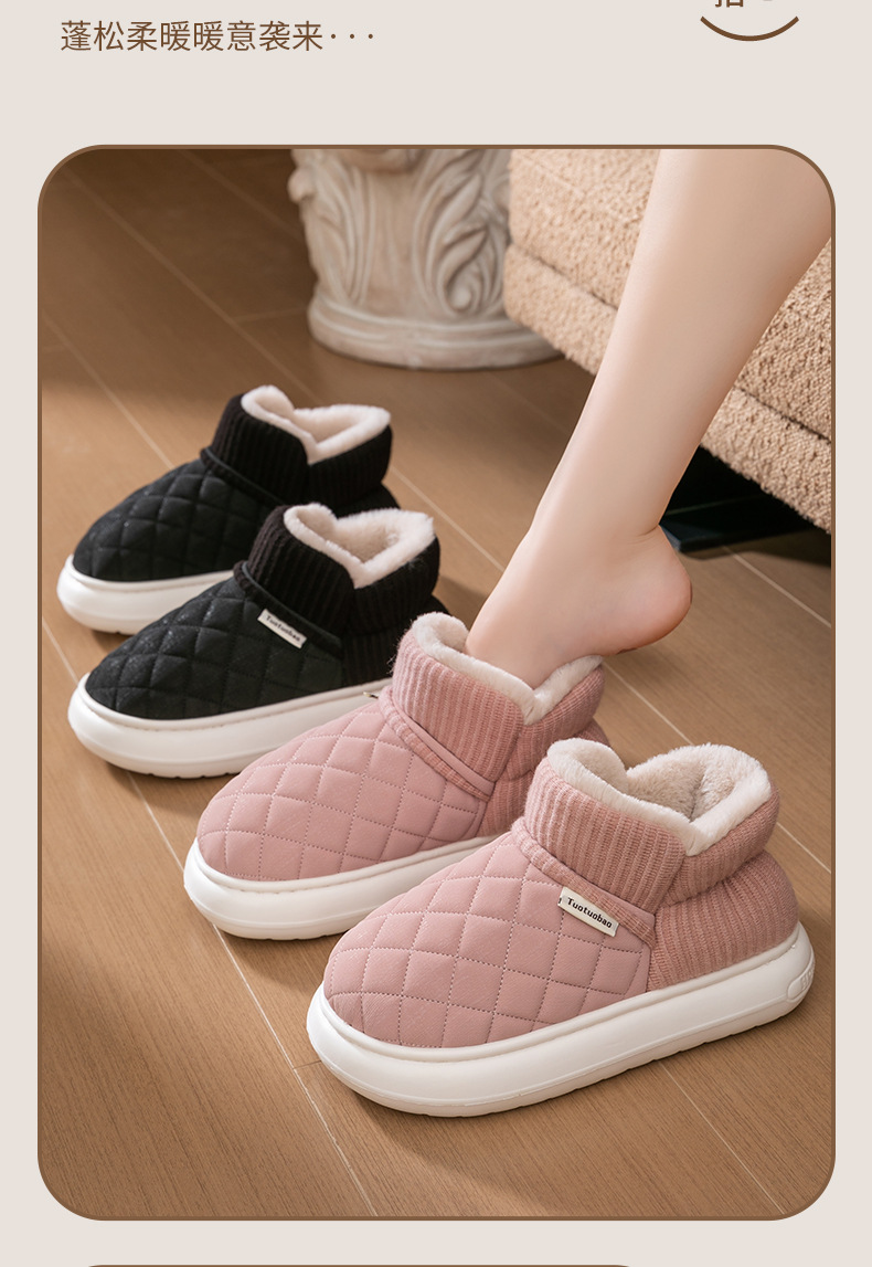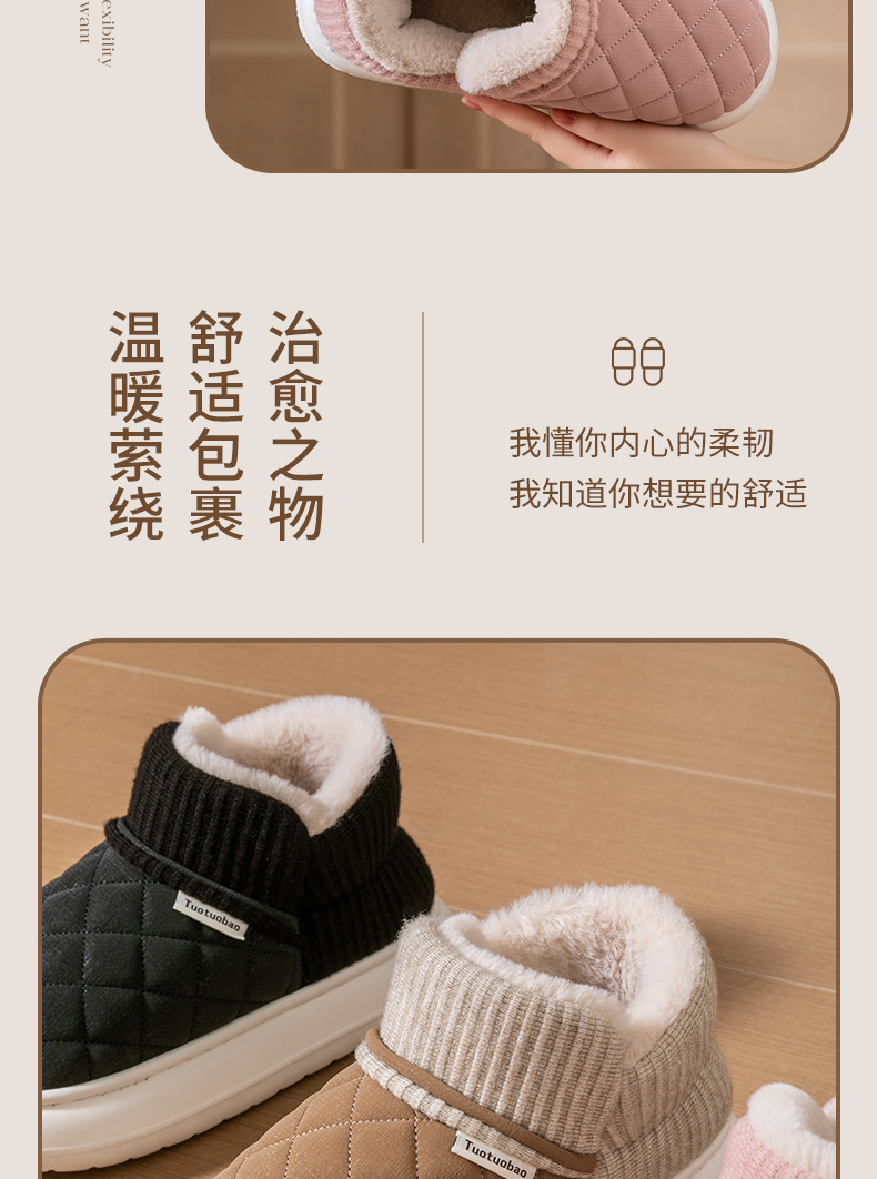 2025新款女士冬厚底防滑棉鞋耐磨居家保暖加绒包跟棉拖鞋外穿批发