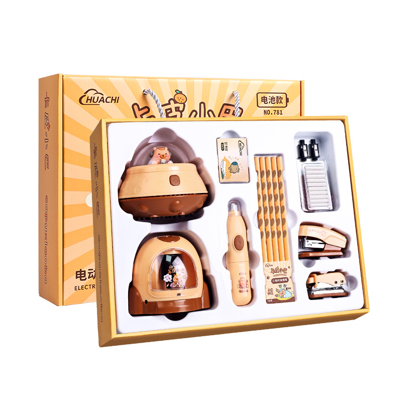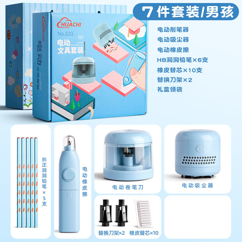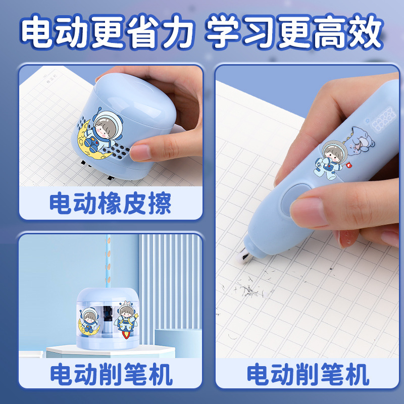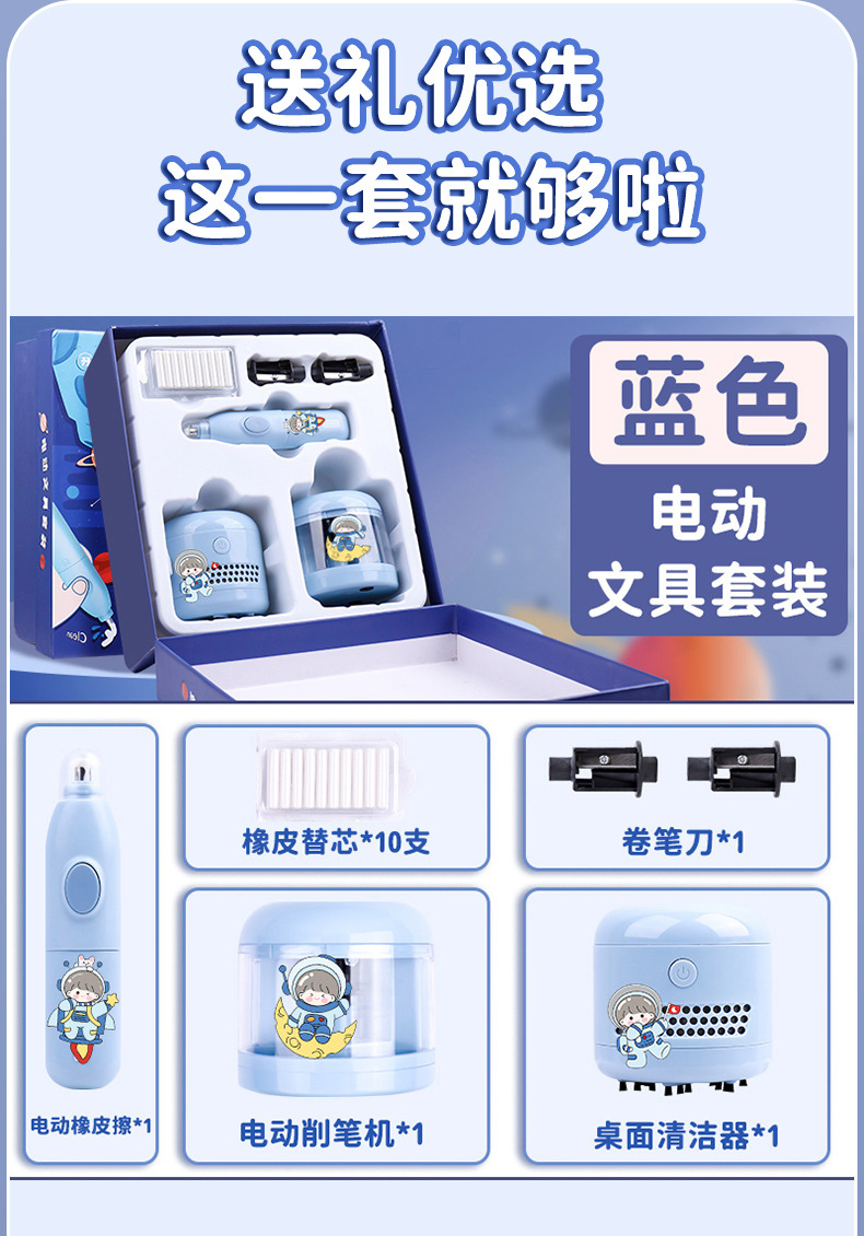 学生圣诞礼物宇航员自动卷笔刀6件礼盒学习用品卡通电动文具套装