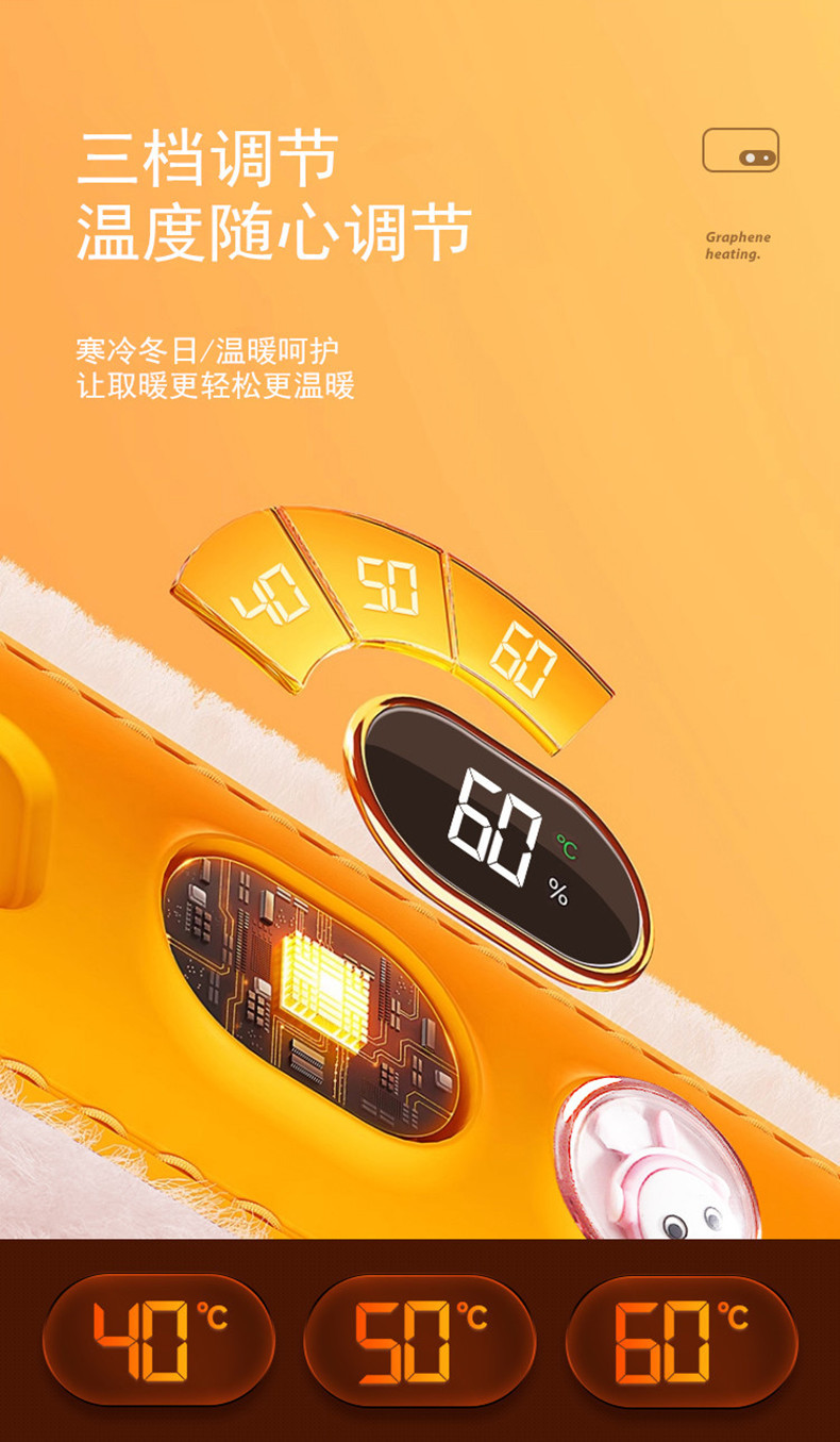 新款石墨烯暖手宝恒温加热usb充电暖宝数显无水便携暖手袋跨境代