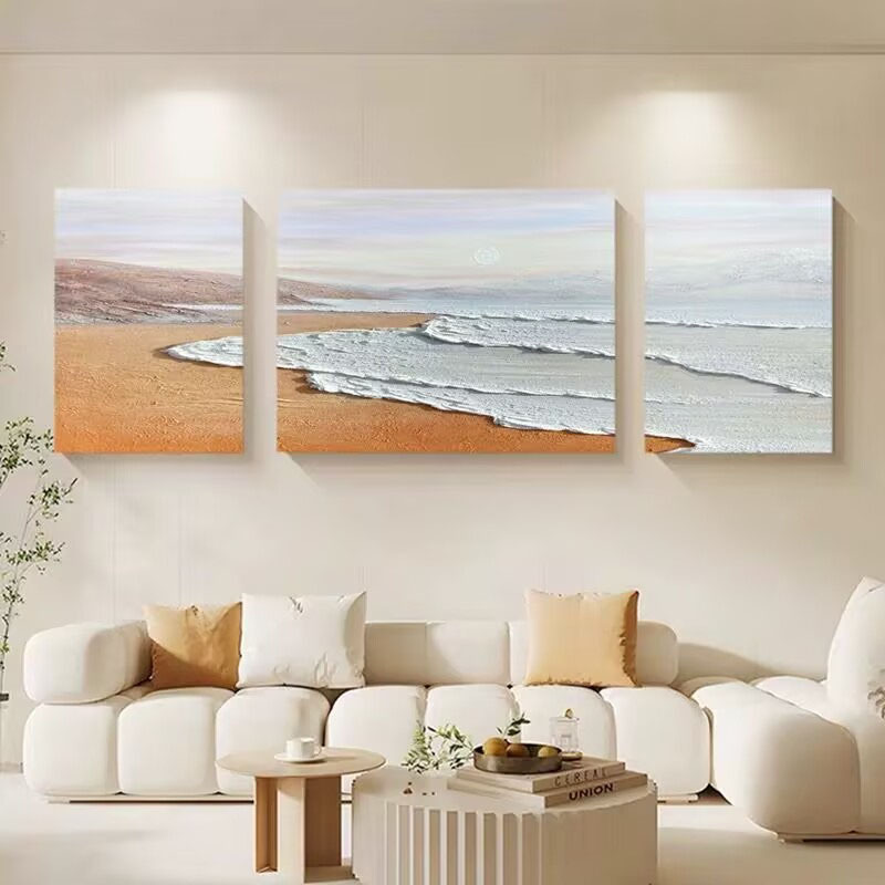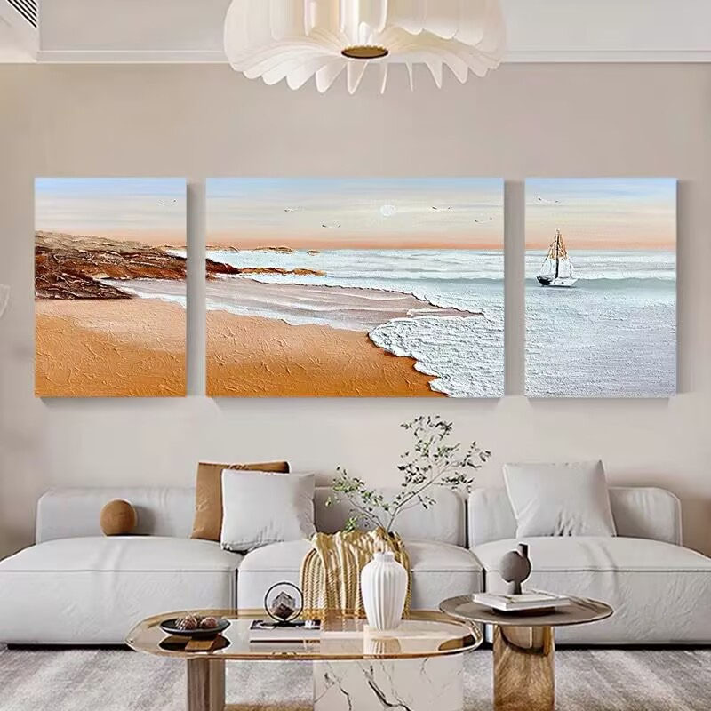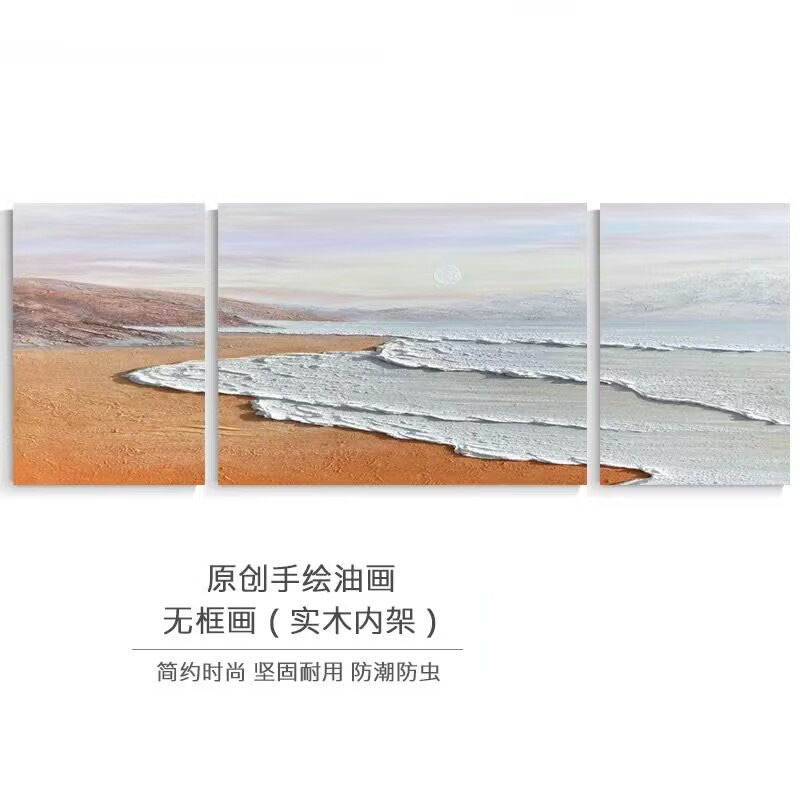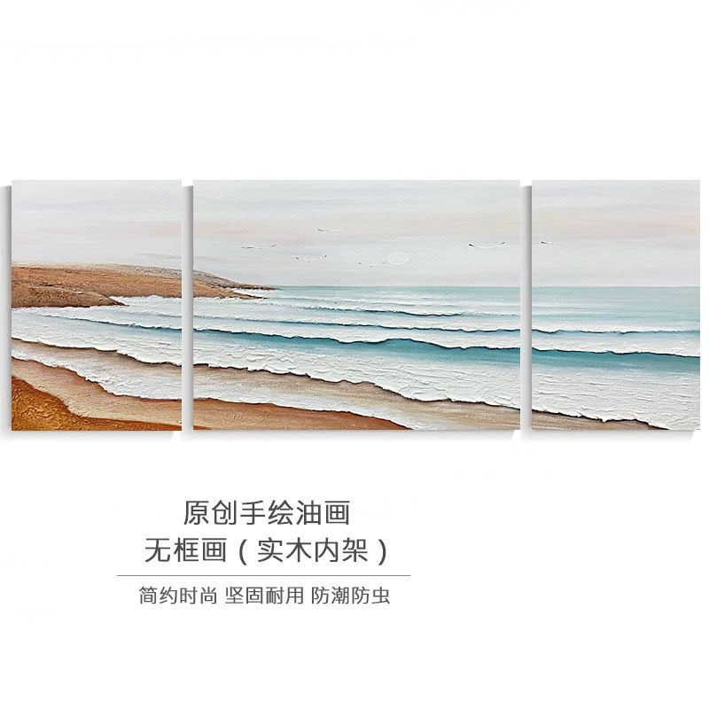 手绘油画现代客厅沙发背景墙装饰画砂岩立体肌理三联画奶油风套画