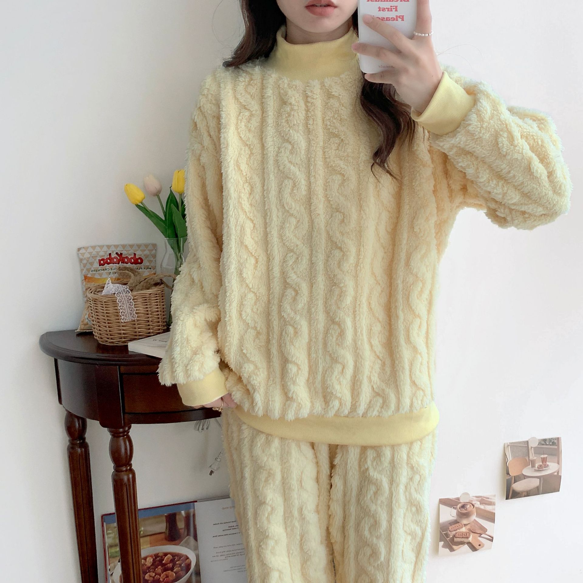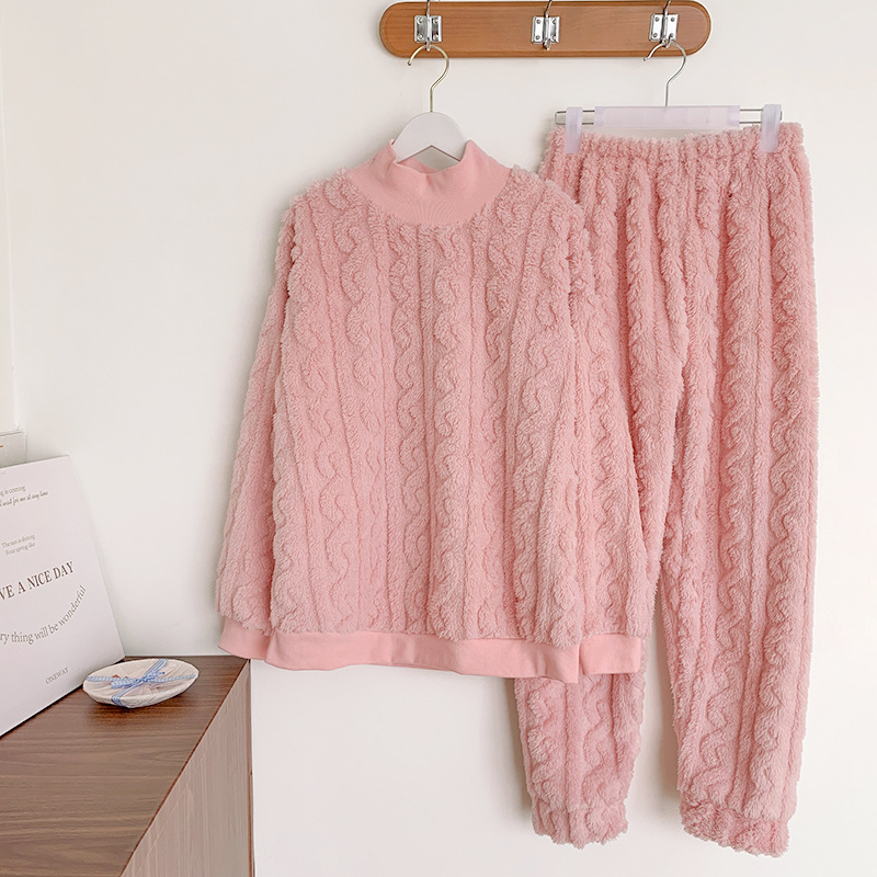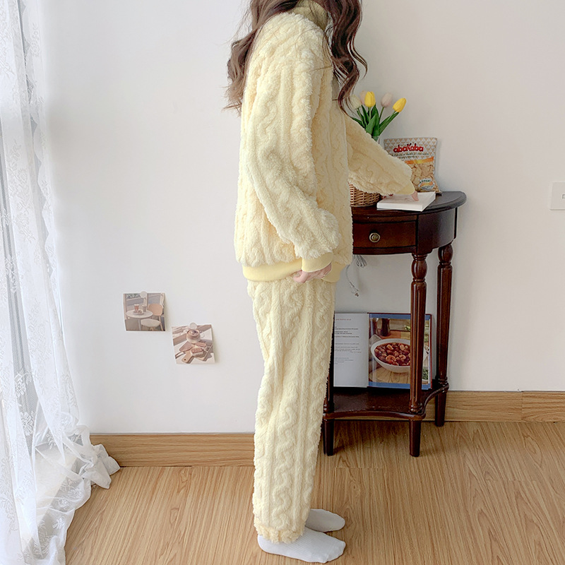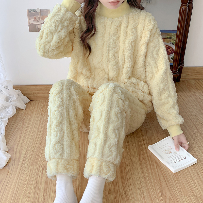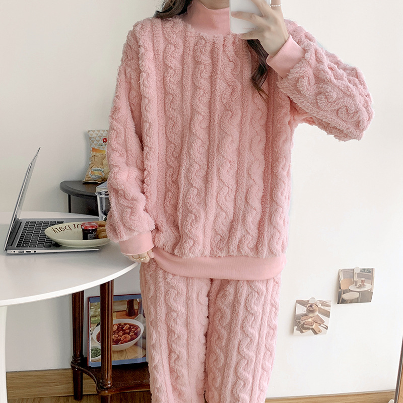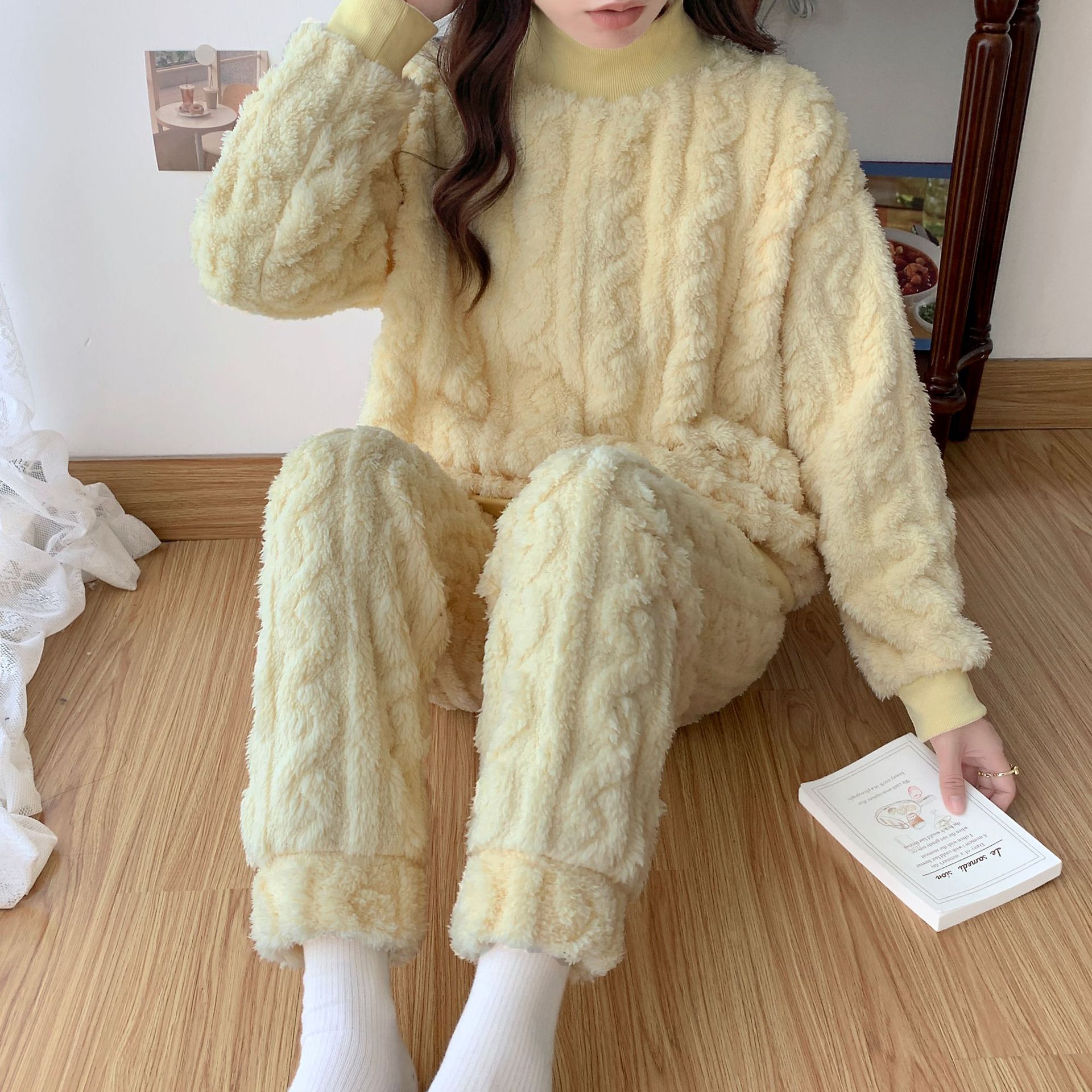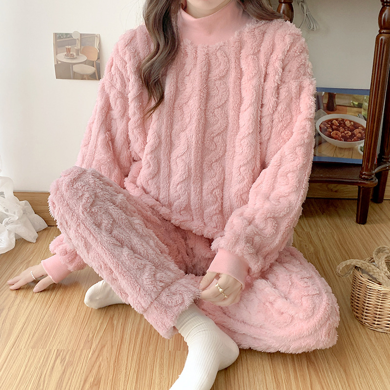 珊瑚绒睡衣女2024秋冬加绒加厚高领保暖可外穿冬天家居服两件套装