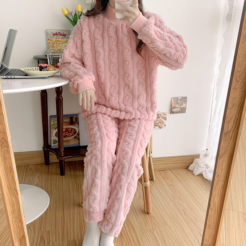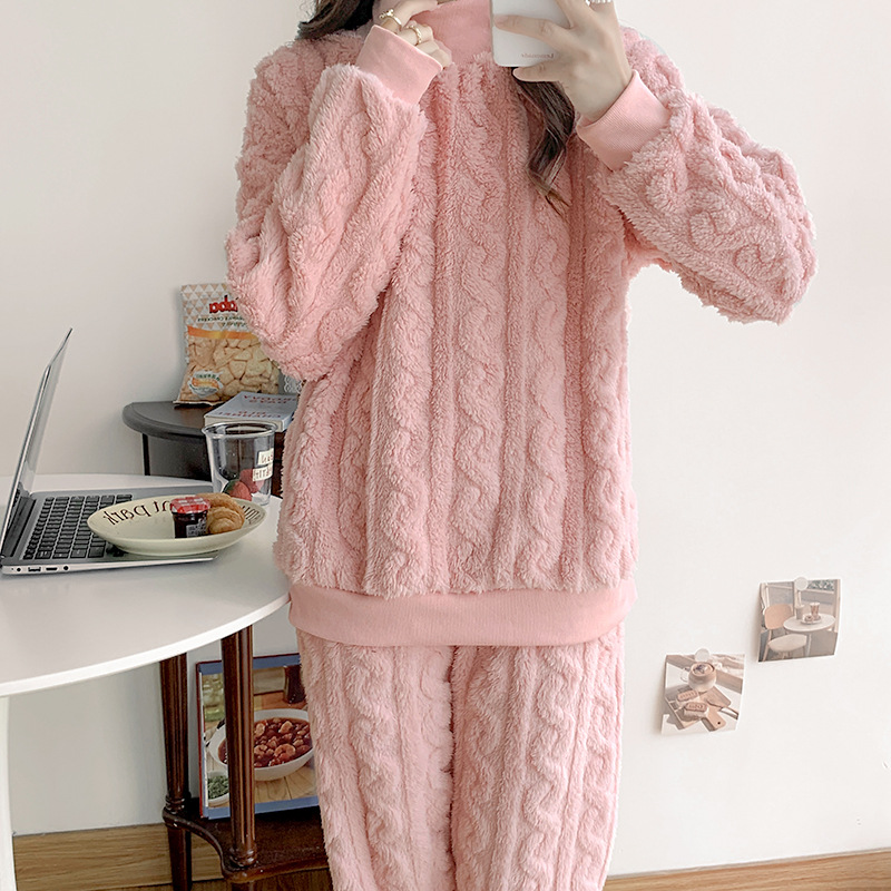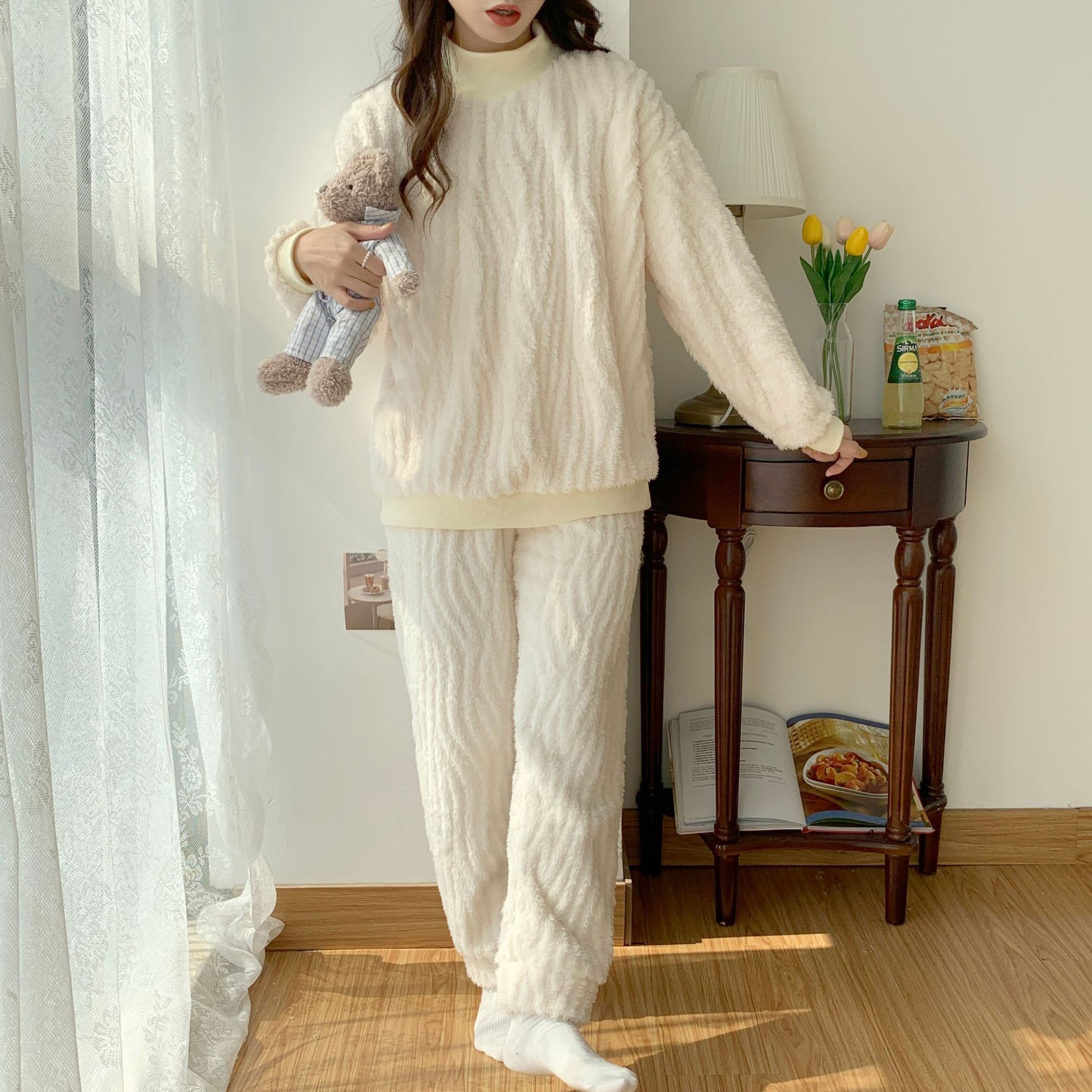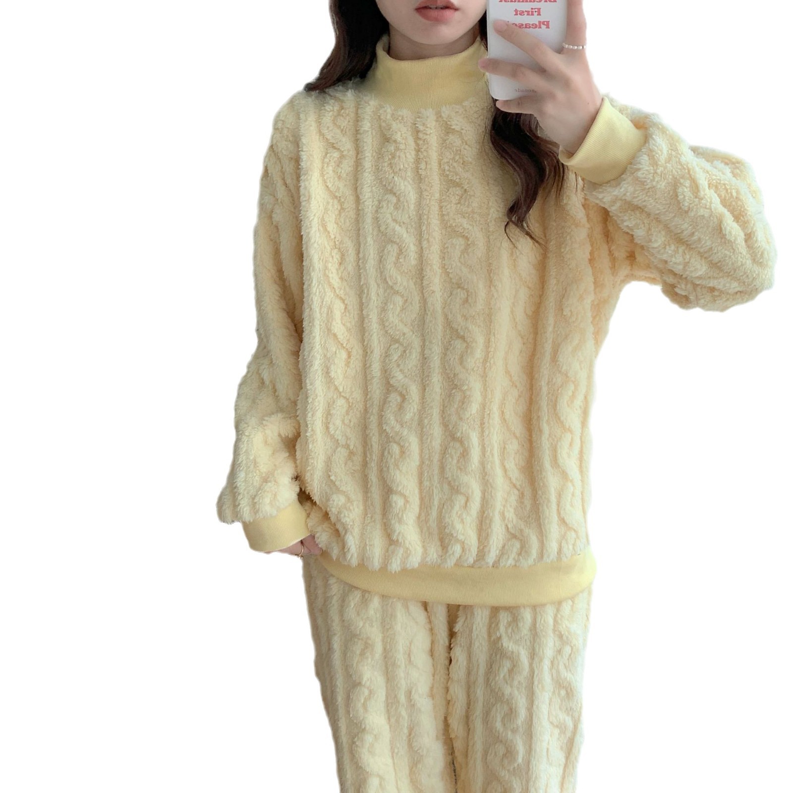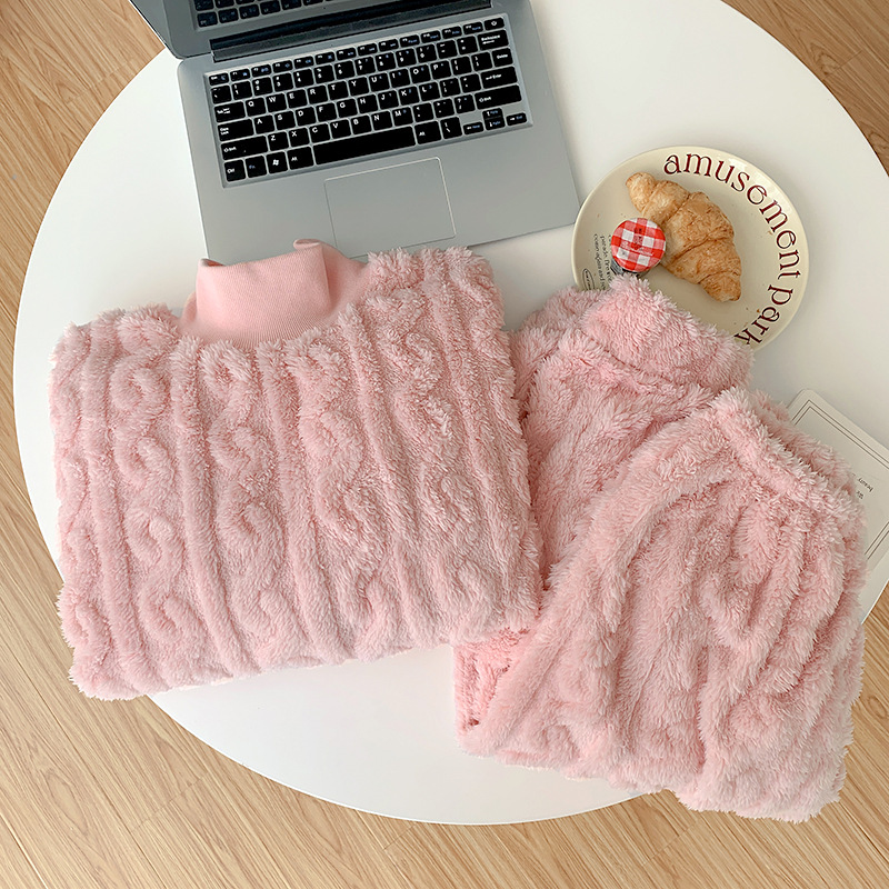 珊瑚绒睡衣女2024秋冬加绒加厚高领保暖可外穿冬天家居服两件套装