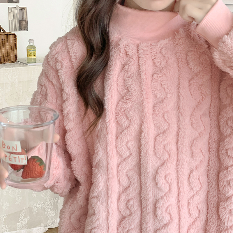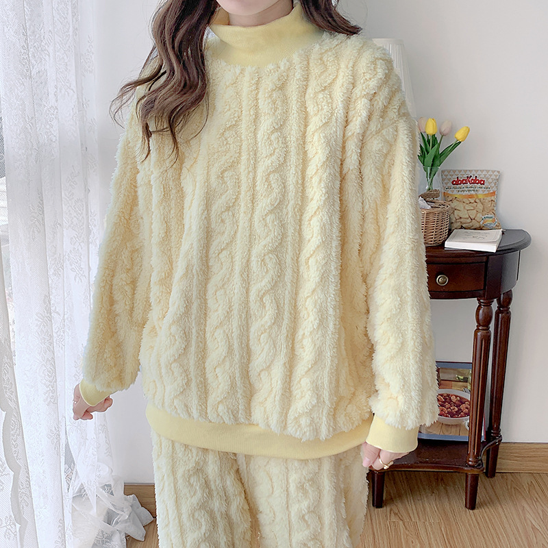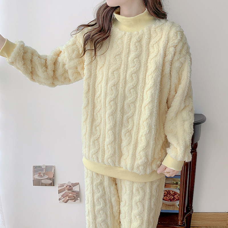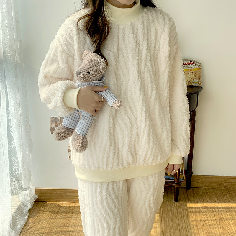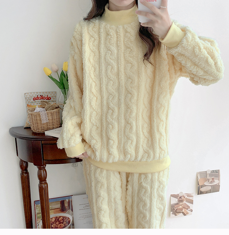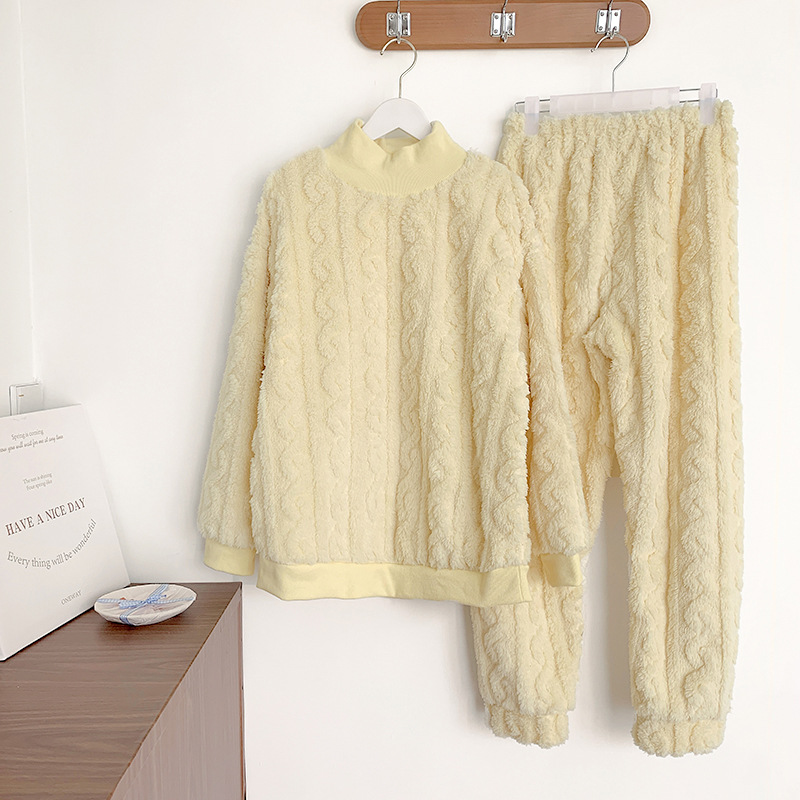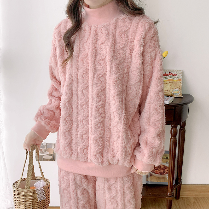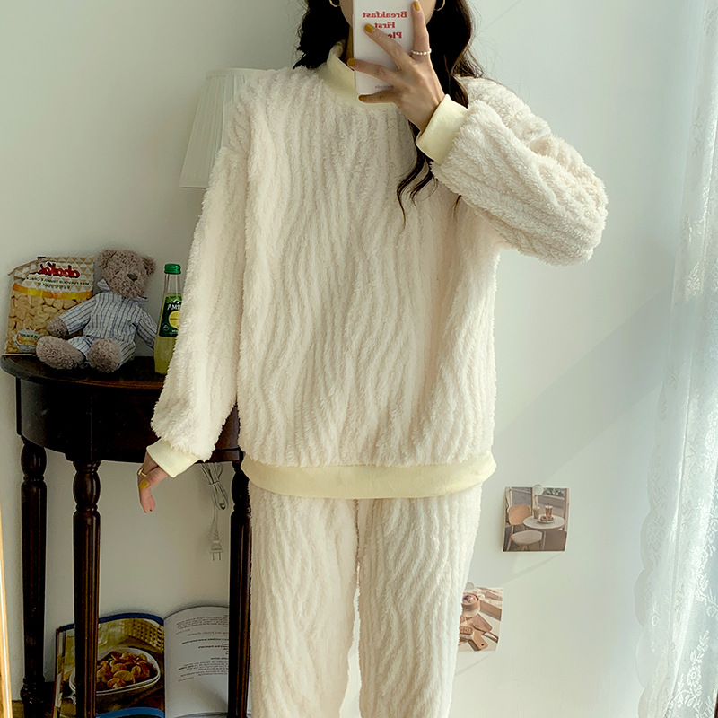 珊瑚绒睡衣女2024秋冬加绒加厚高领保暖可外穿冬天家居服两件套装