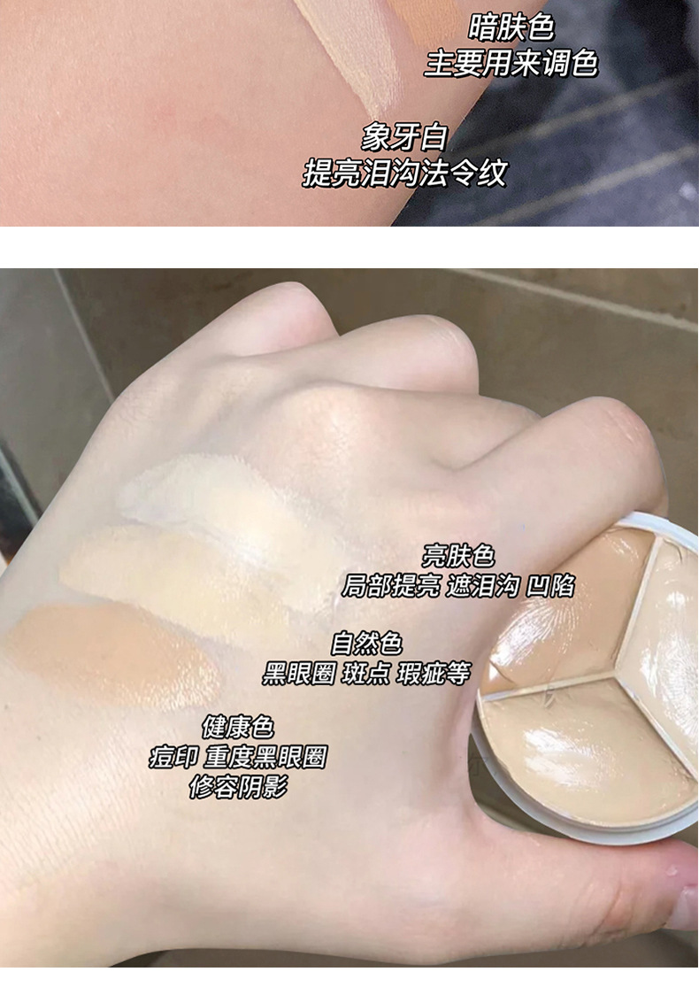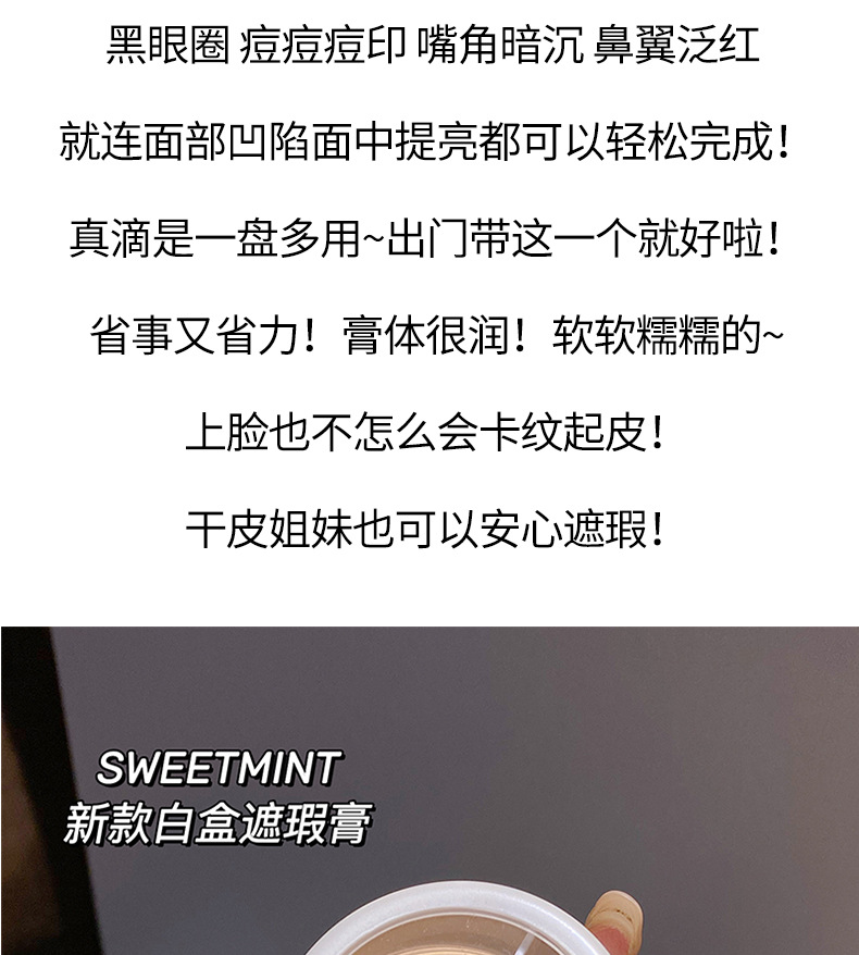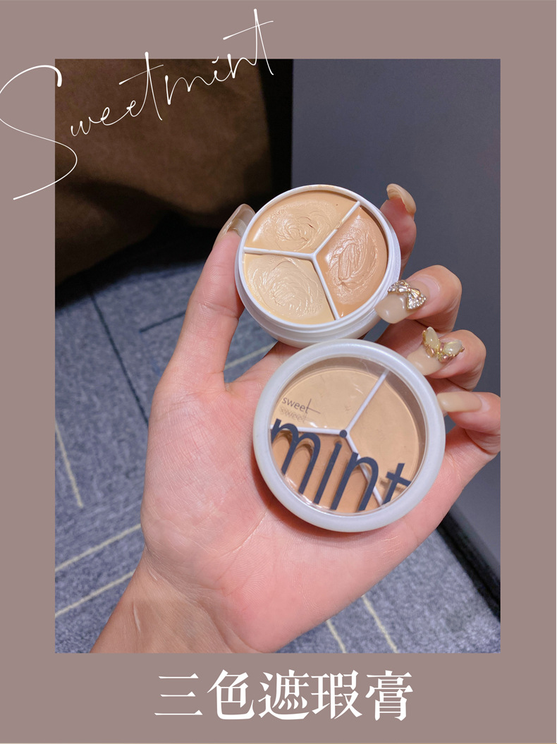 sweet mint三色遮瑕膏遮盖斑点痘痘印黑眼圈泪沟不脱妆修容粉底膏