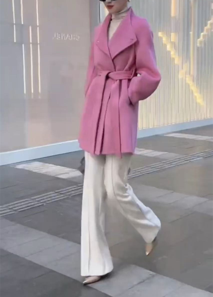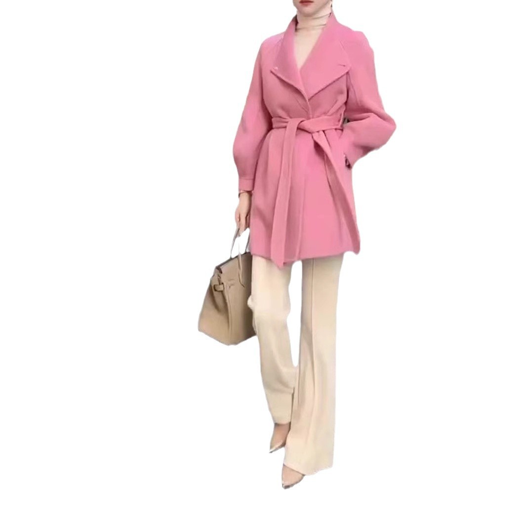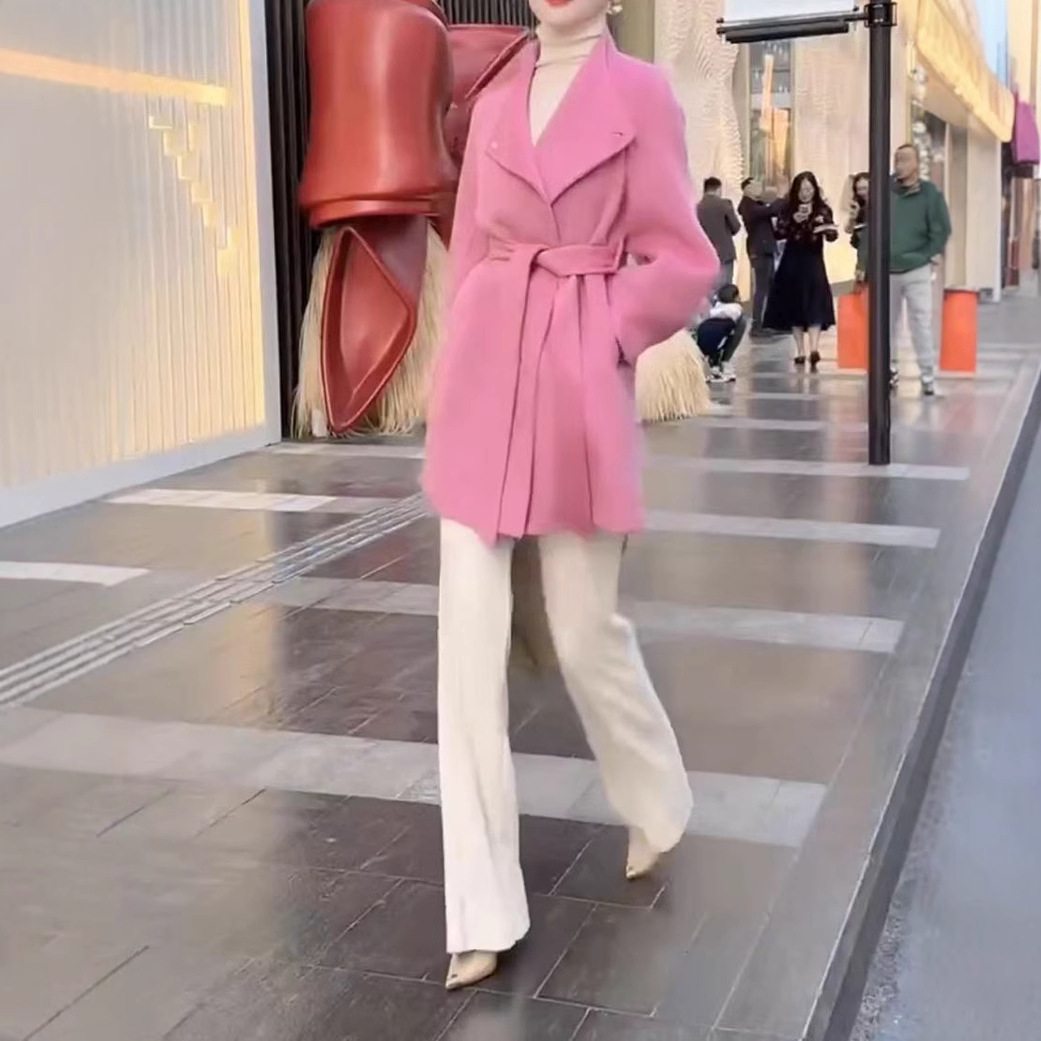 268227大爱美依缘2025秋冬新款减龄粉色中长款外套时尚微喇裤女装