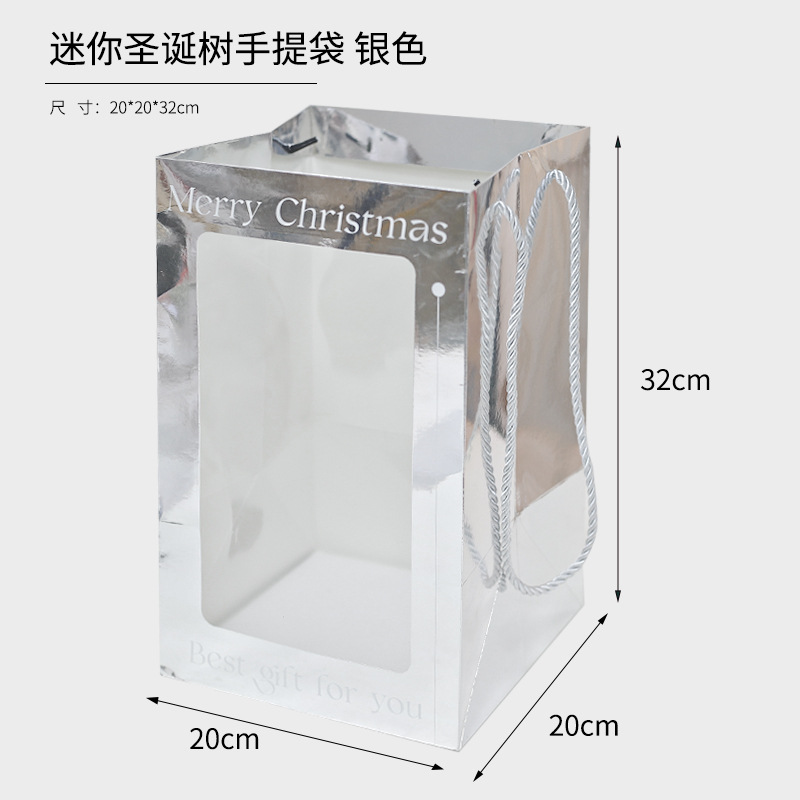 小号圣诞树手提袋圣诞节礼品袋开窗袋橱窗袋玩偶玩具精美创意批发