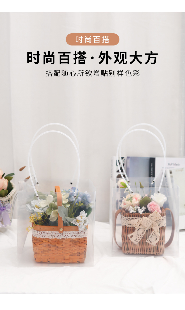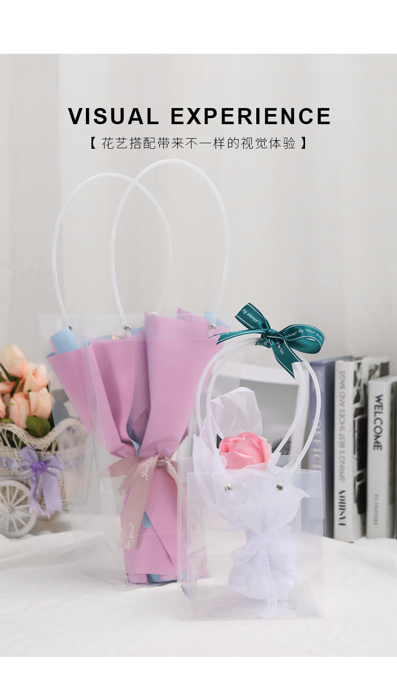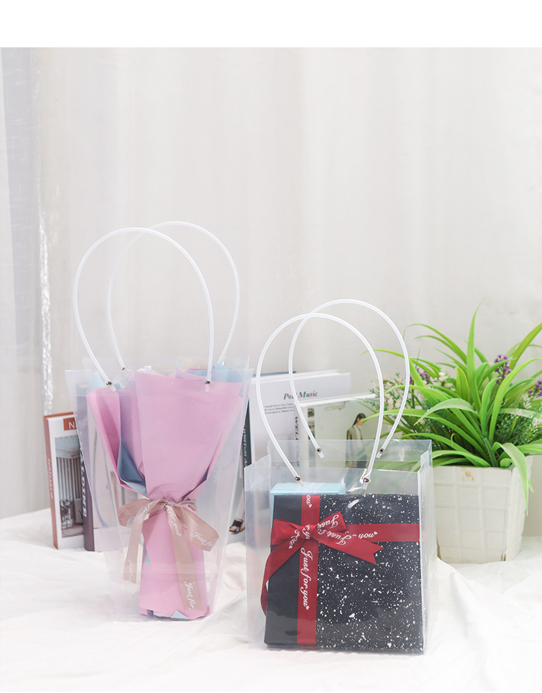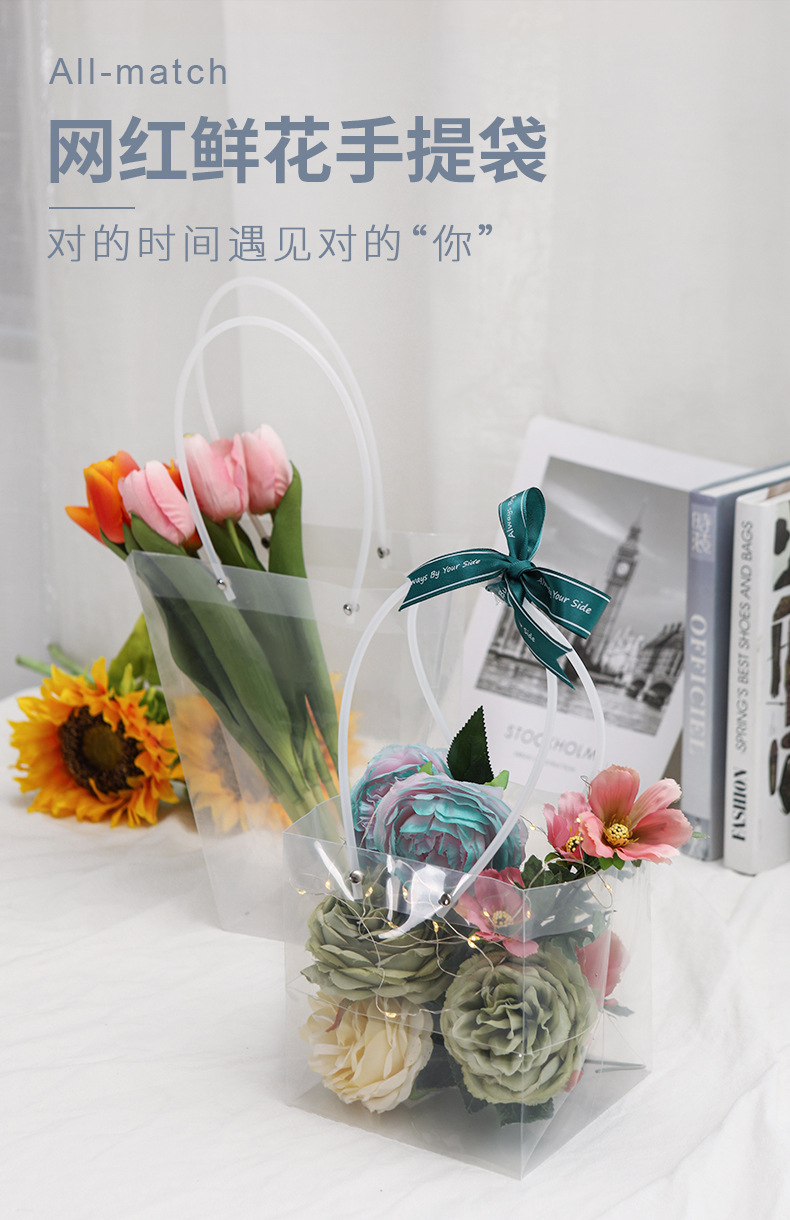 花店花艺插花袋批发透明pvc花束手提袋防水手拎花盒diy鲜花包装袋