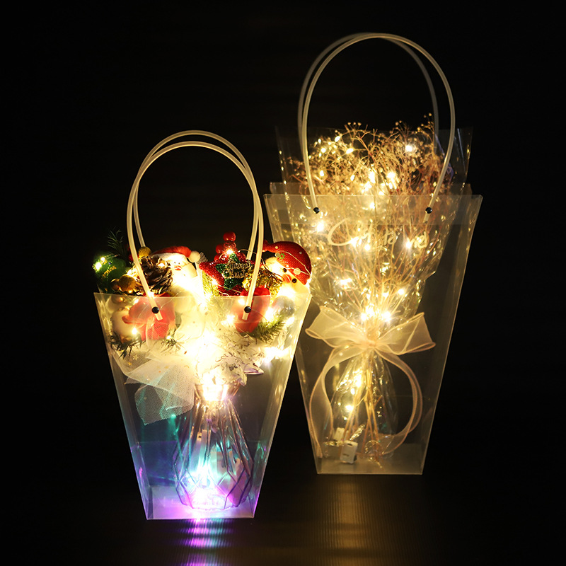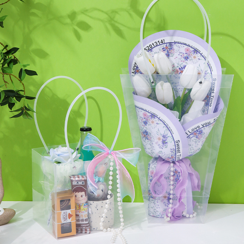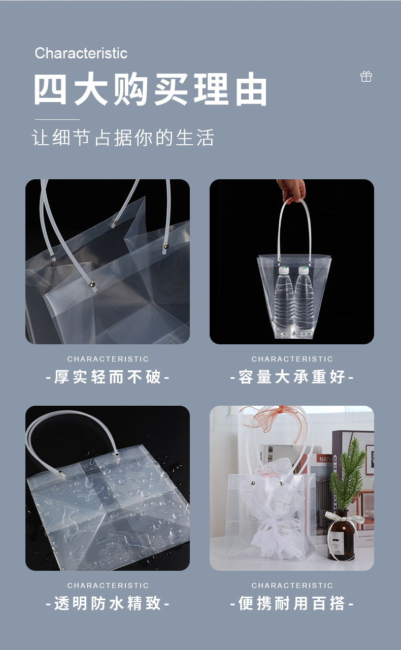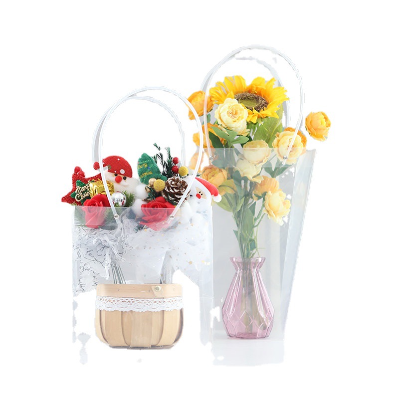 花店花艺插花袋批发透明pvc花束手提袋防水手拎花盒diy鲜花包装袋