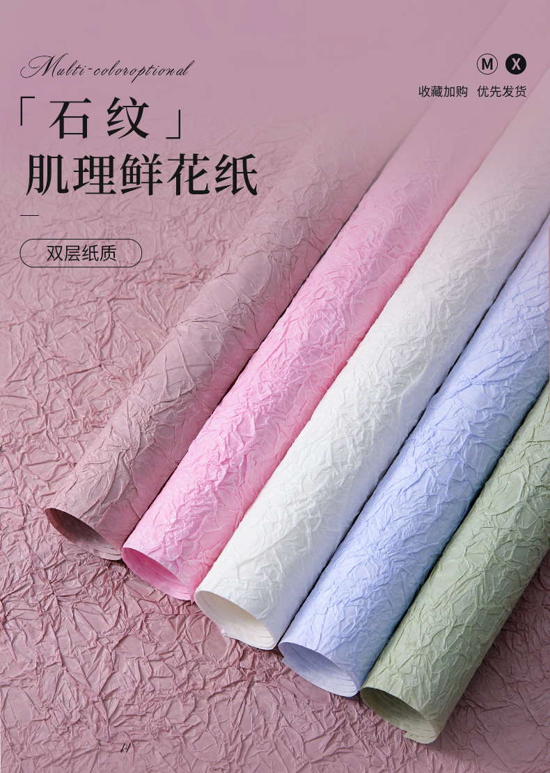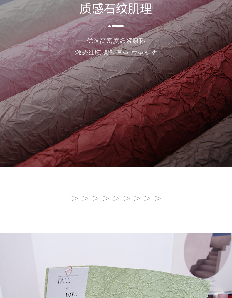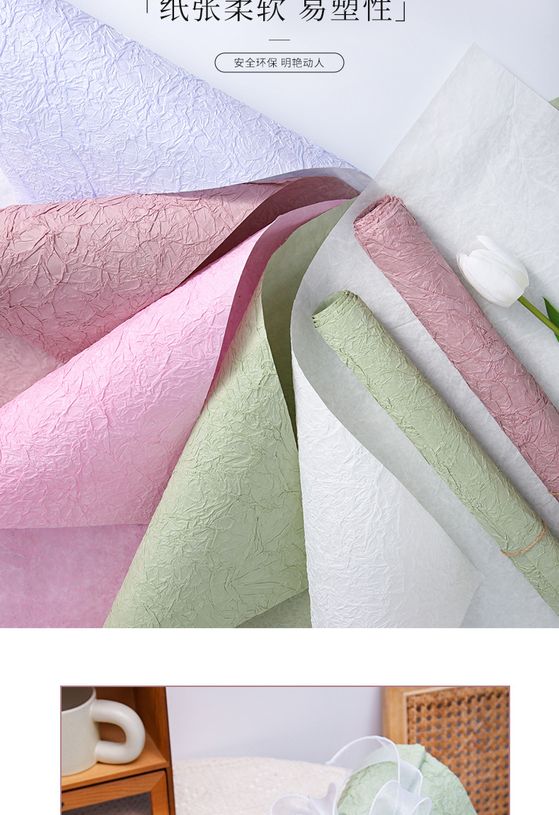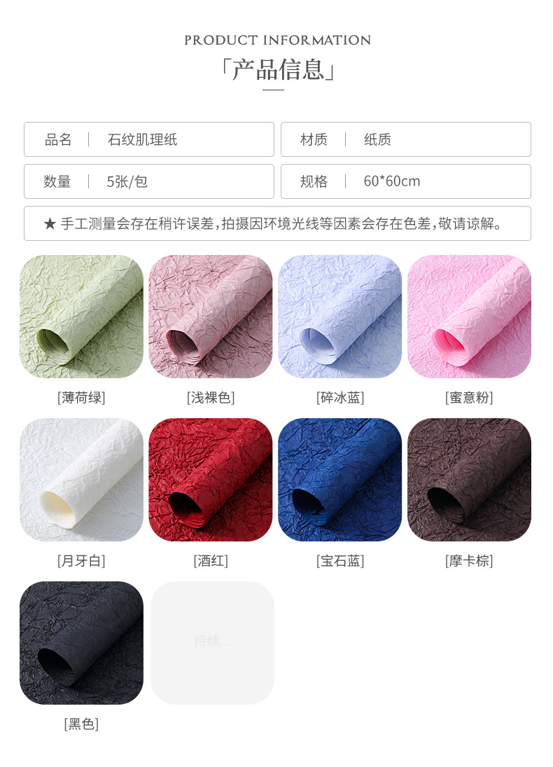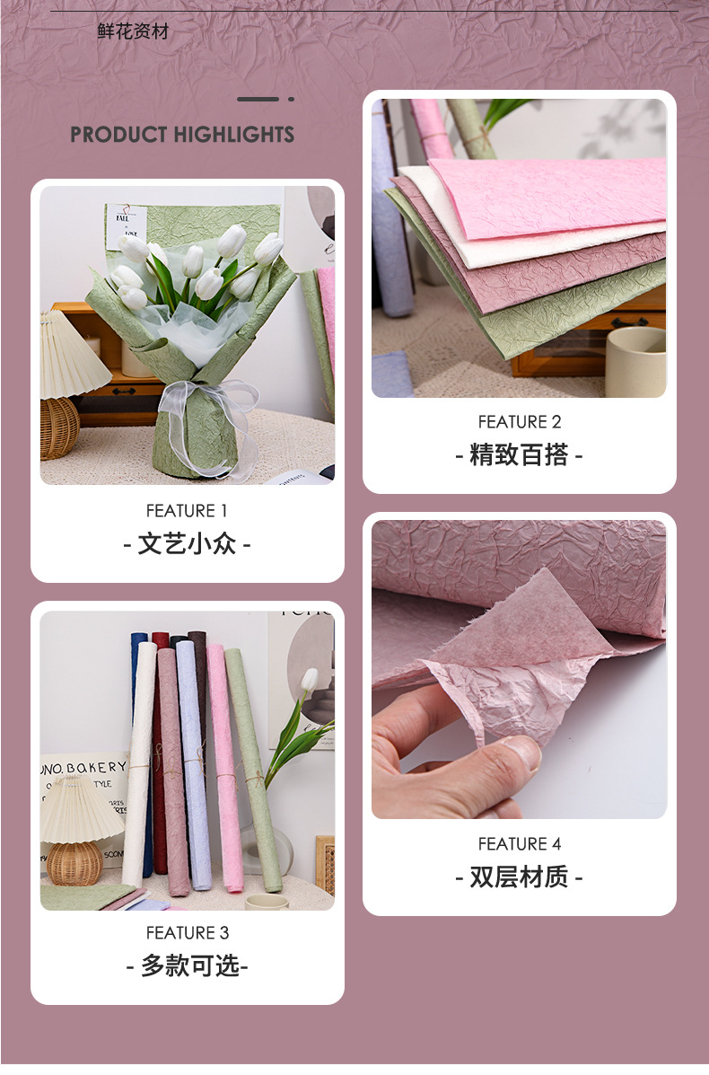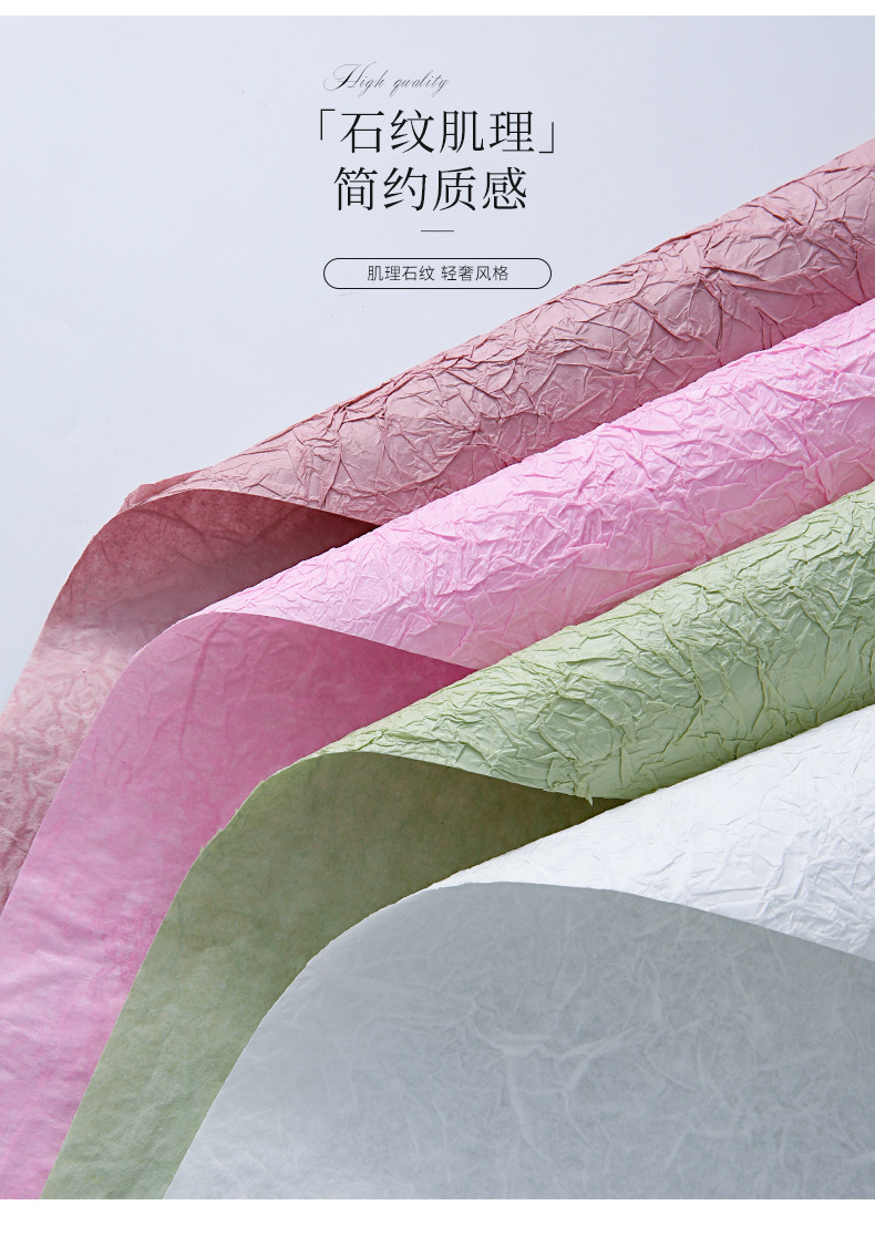 手工石纹纸鲜花包装材料肌理纸双层褶皱纹理纸花店花艺资材包花纸